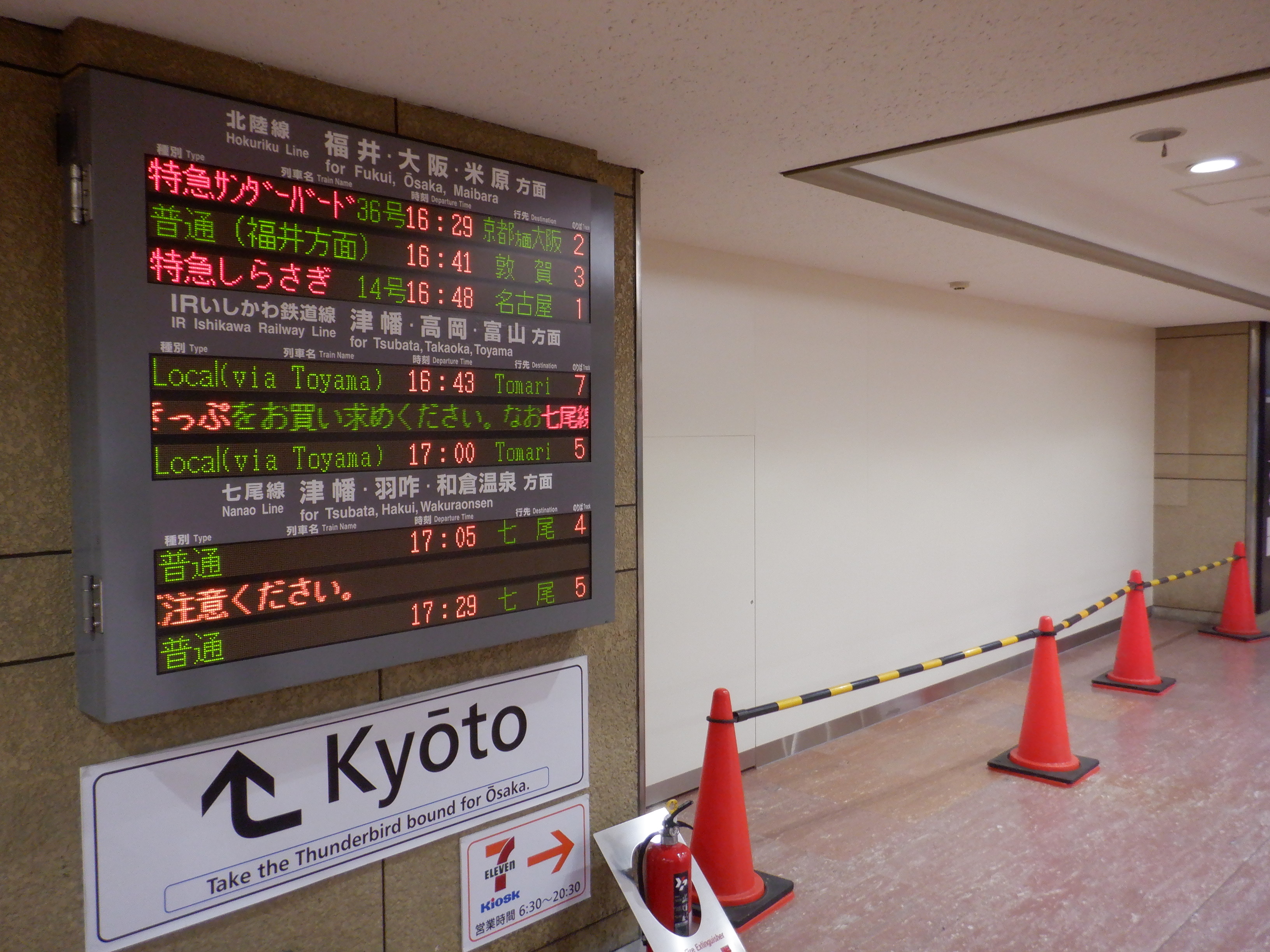 7番のりばのサンダーバード17号和倉温泉行きの案内も撤去されていました。