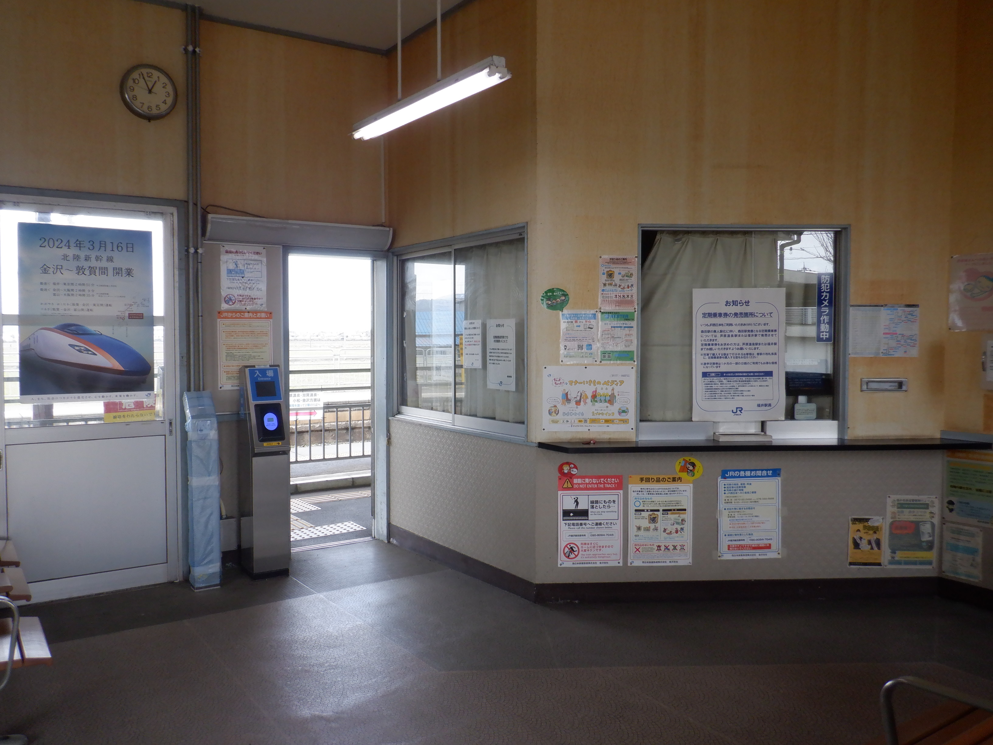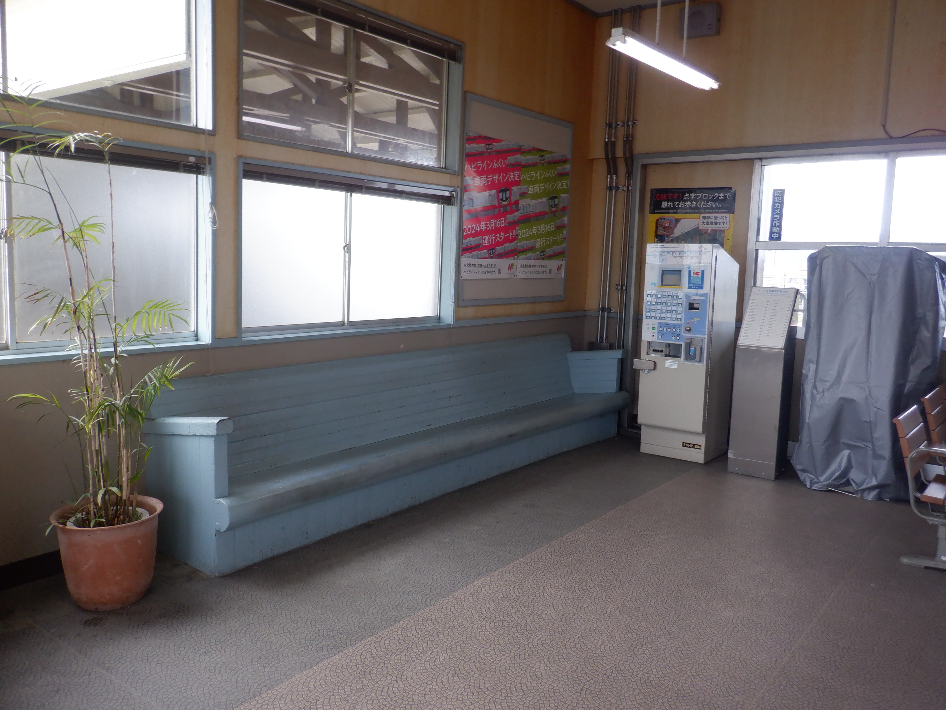 2024年2月としてはこの1回で、この時点で新しいインターフォンと券売機が設置されていました。駅名標はこの時点で変更はなさそうです。