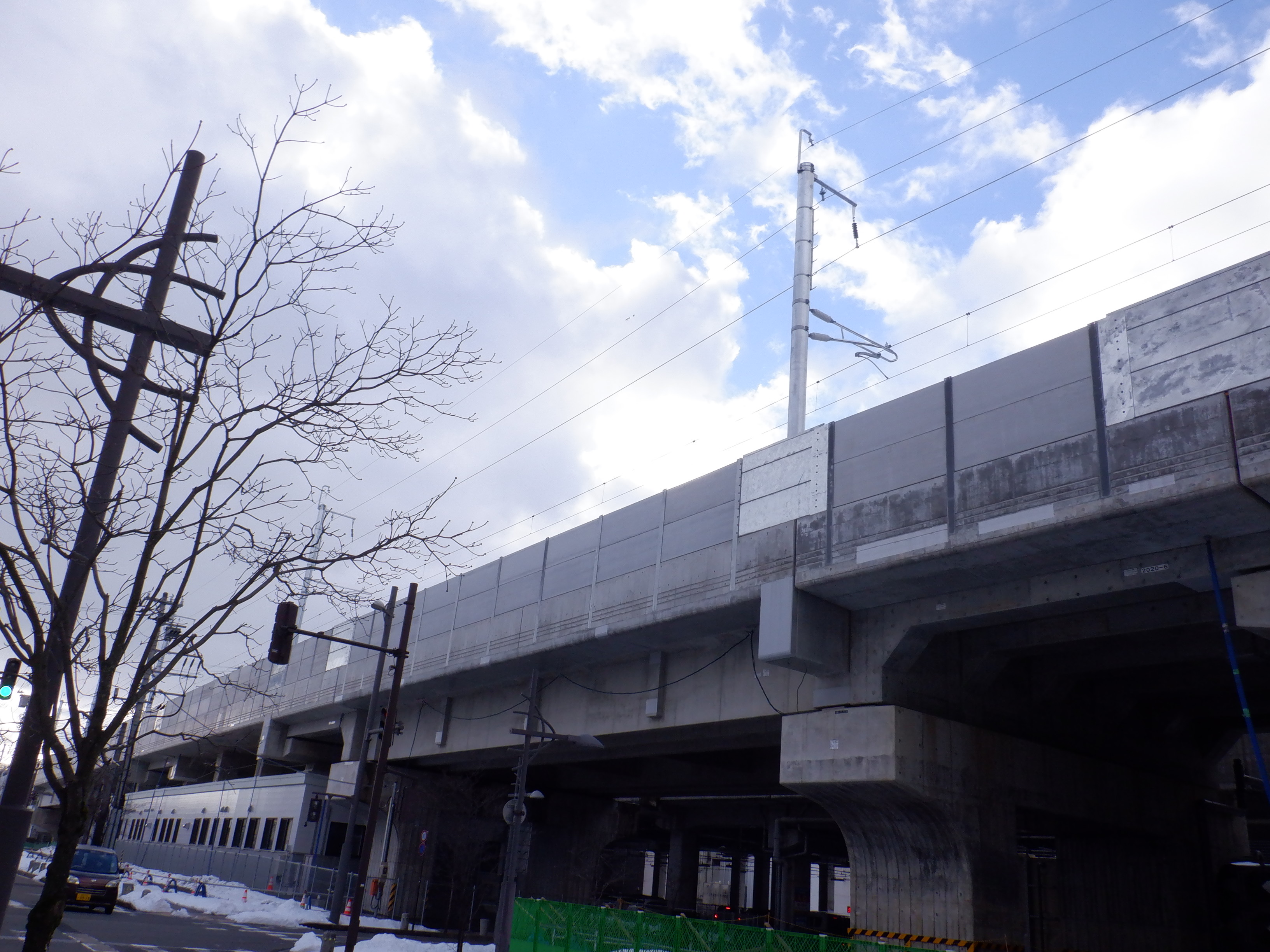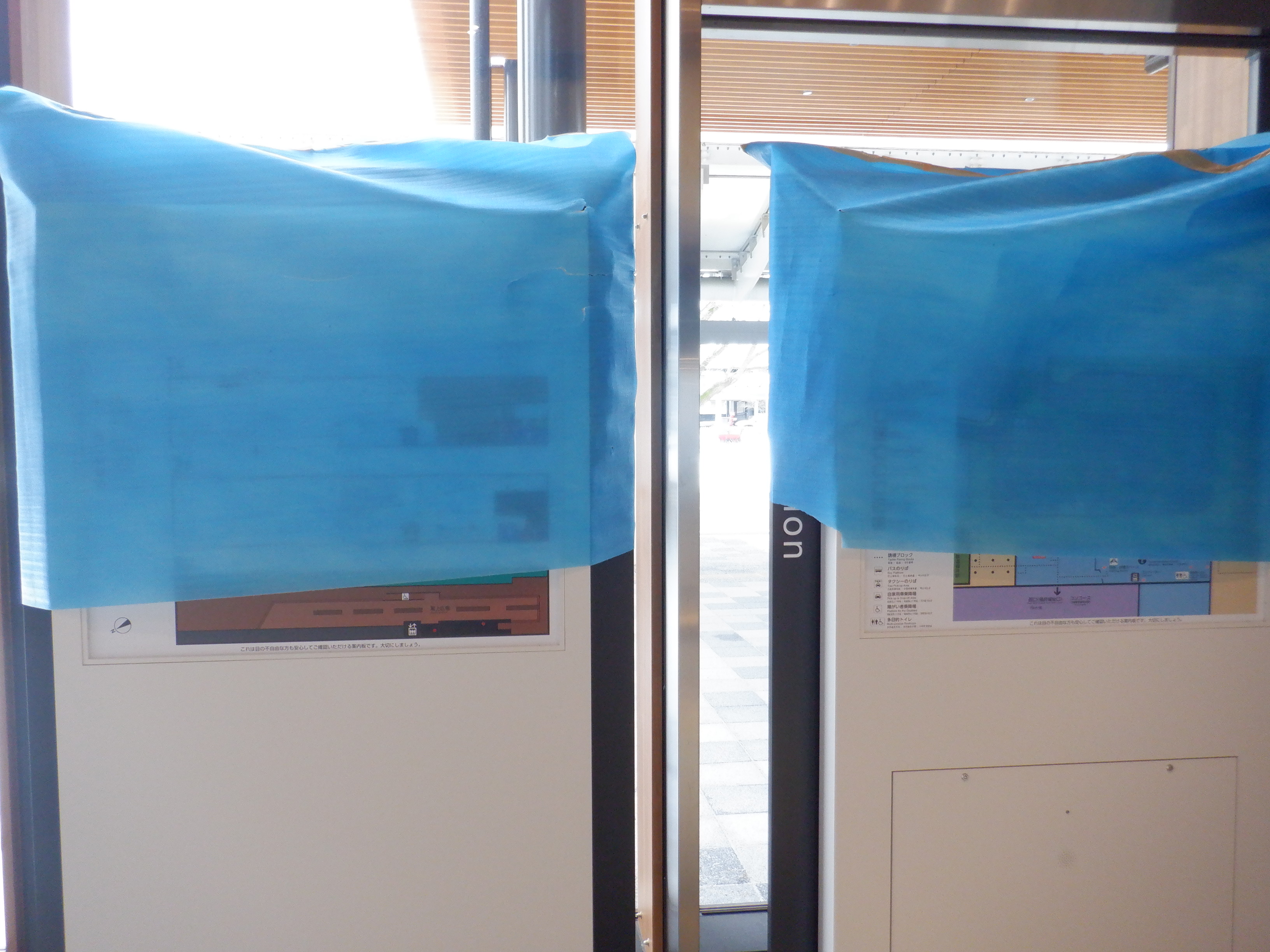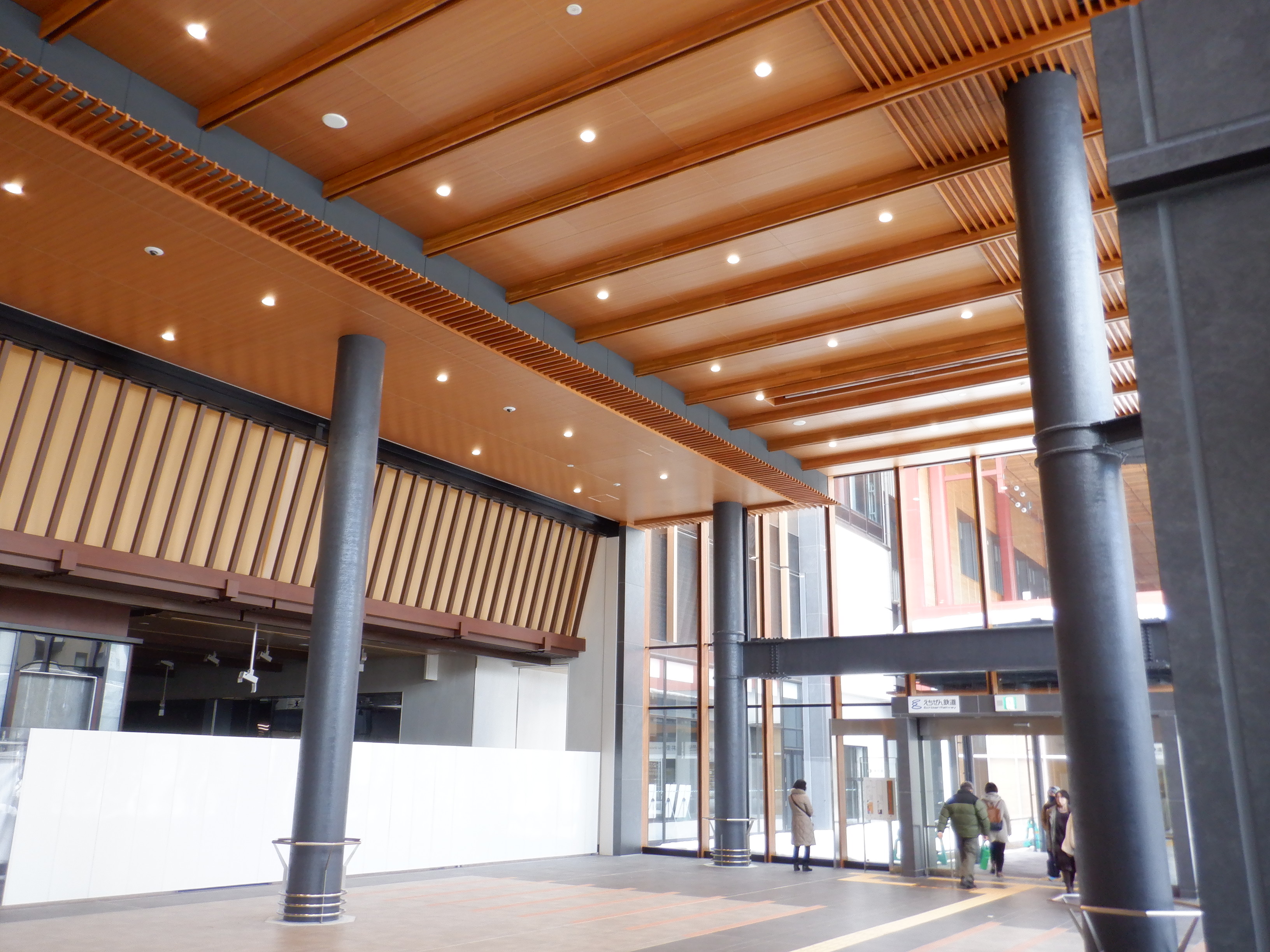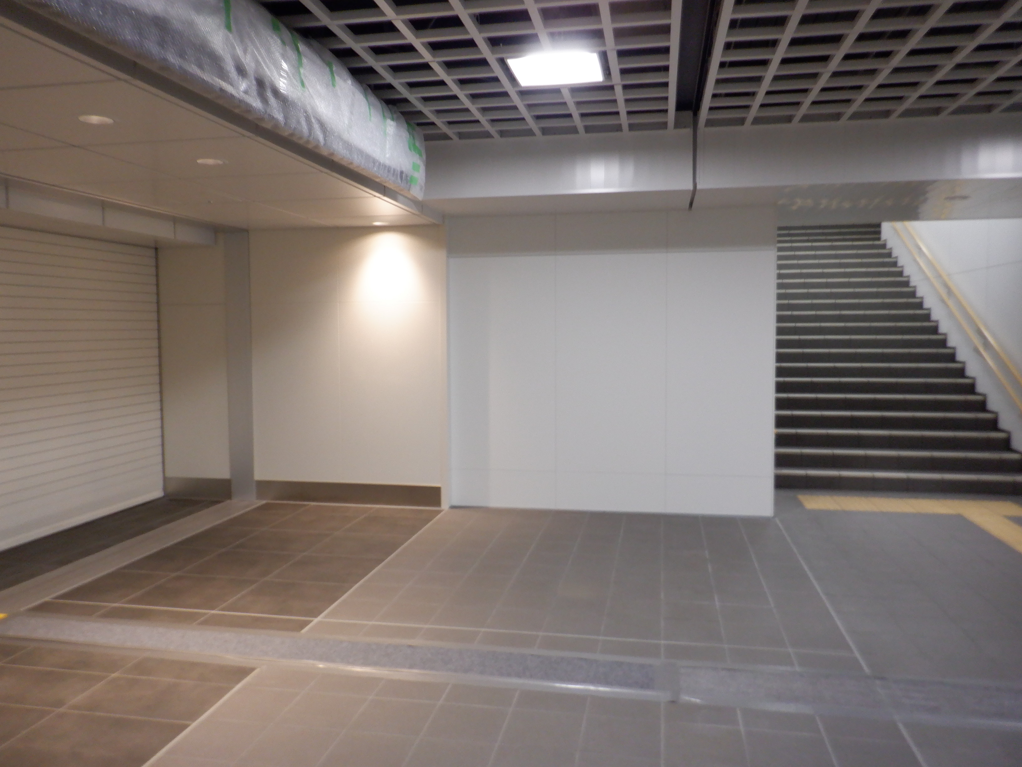 拡張施設周辺の工事が進んでいます。また、乗換改札口になるところに看板らしきものが取り付けられました。