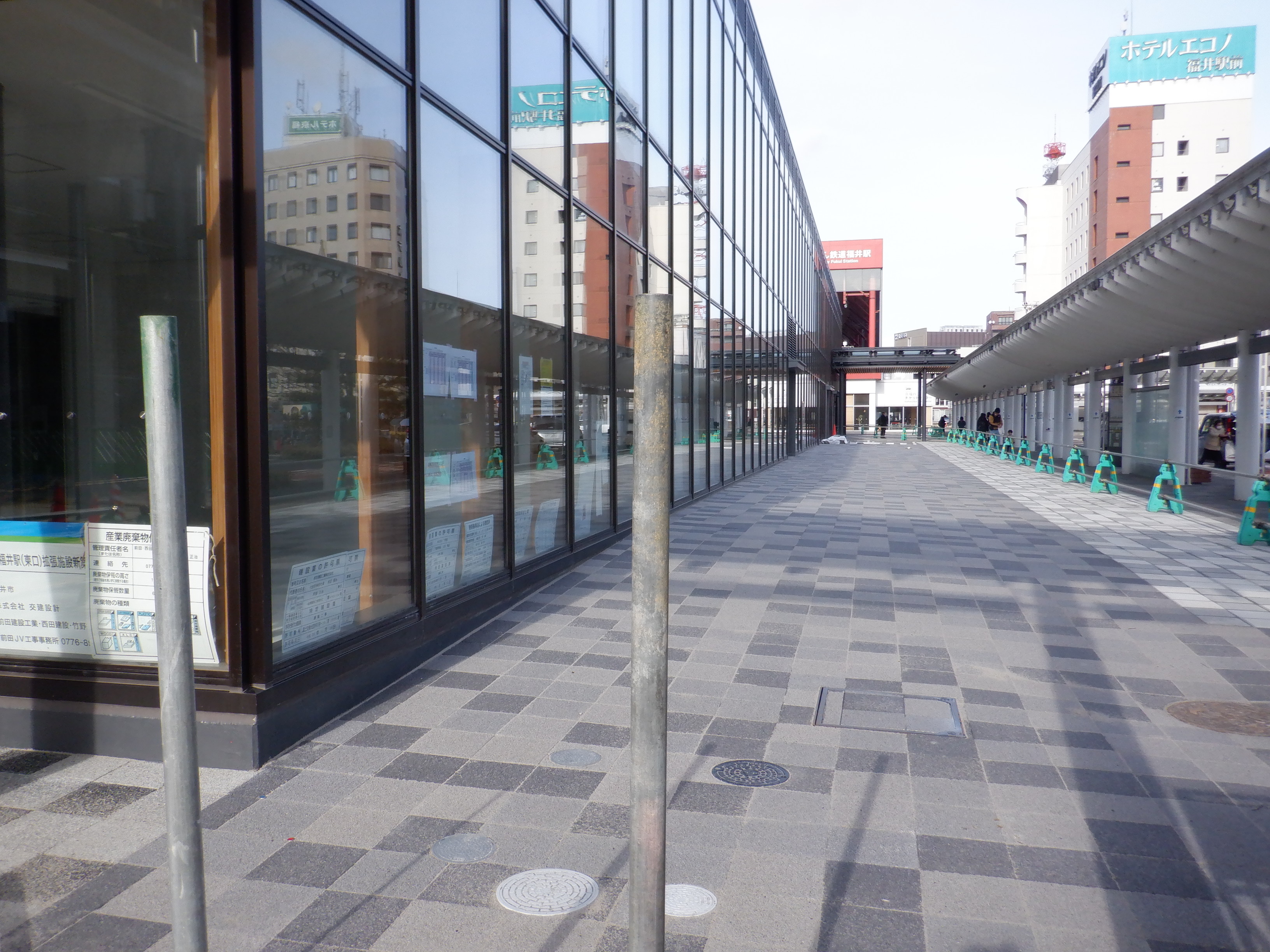 拡張施設〜えちぜん鉄道福井駅の通路の横の整地がされたところ。