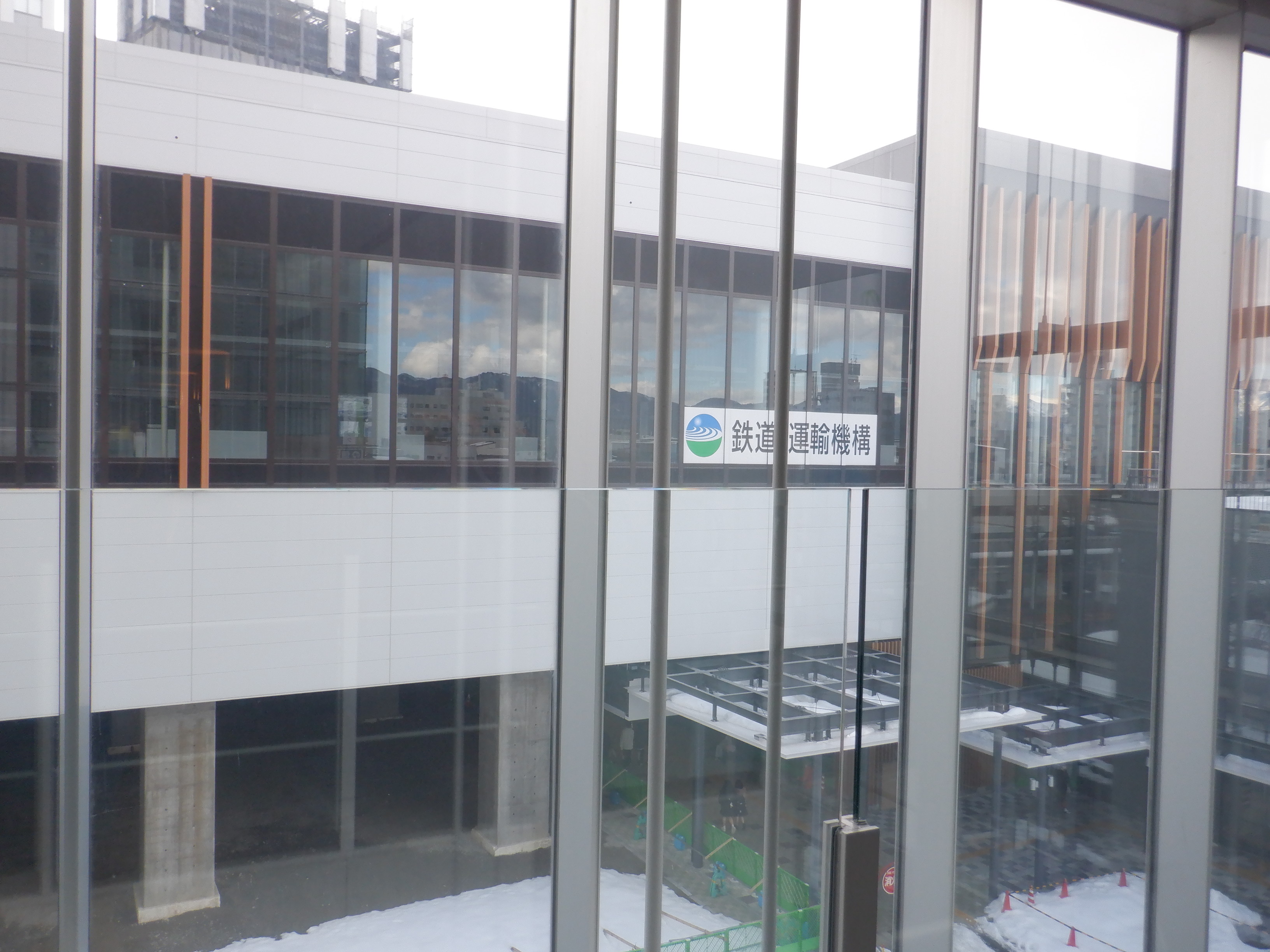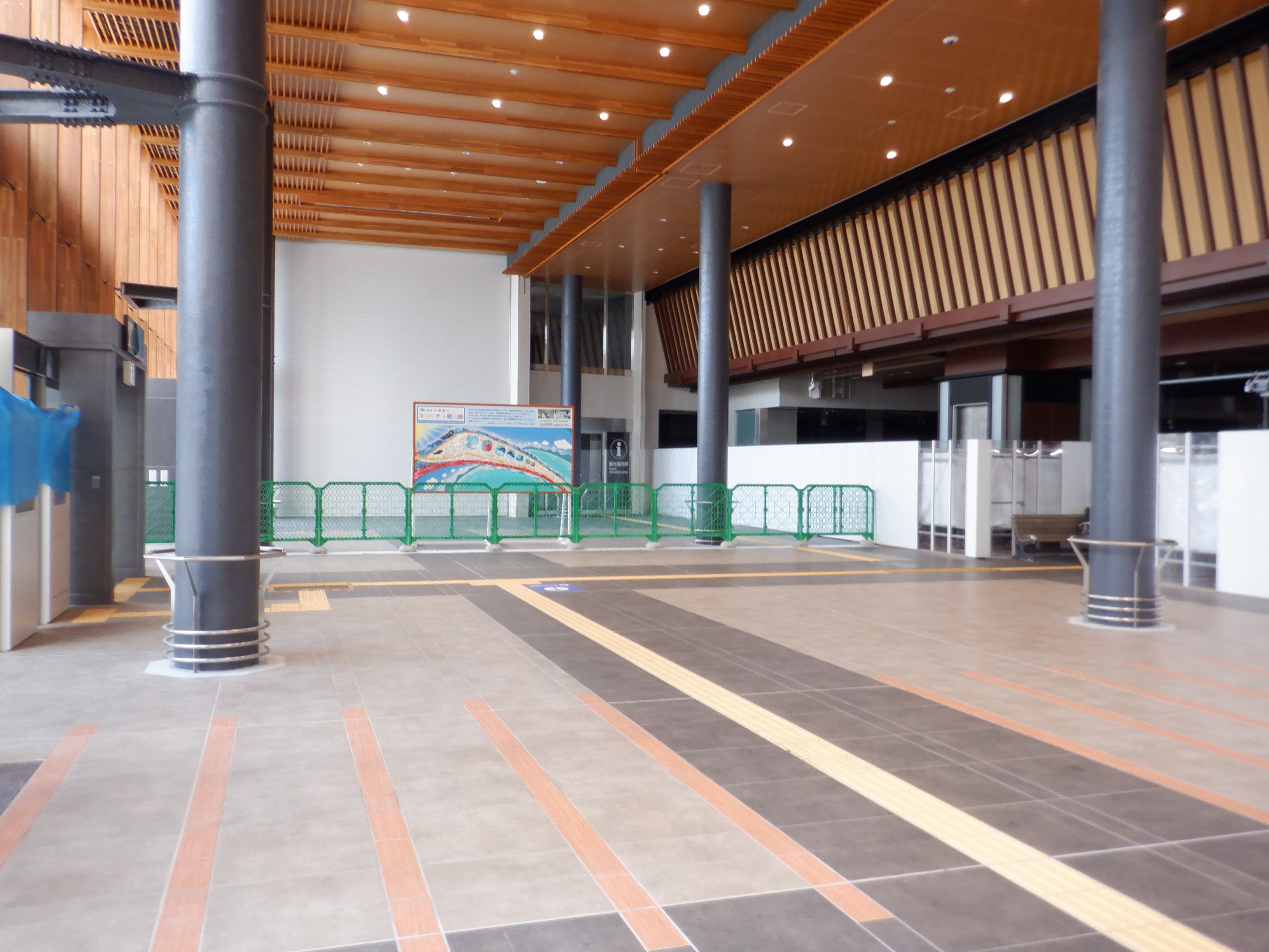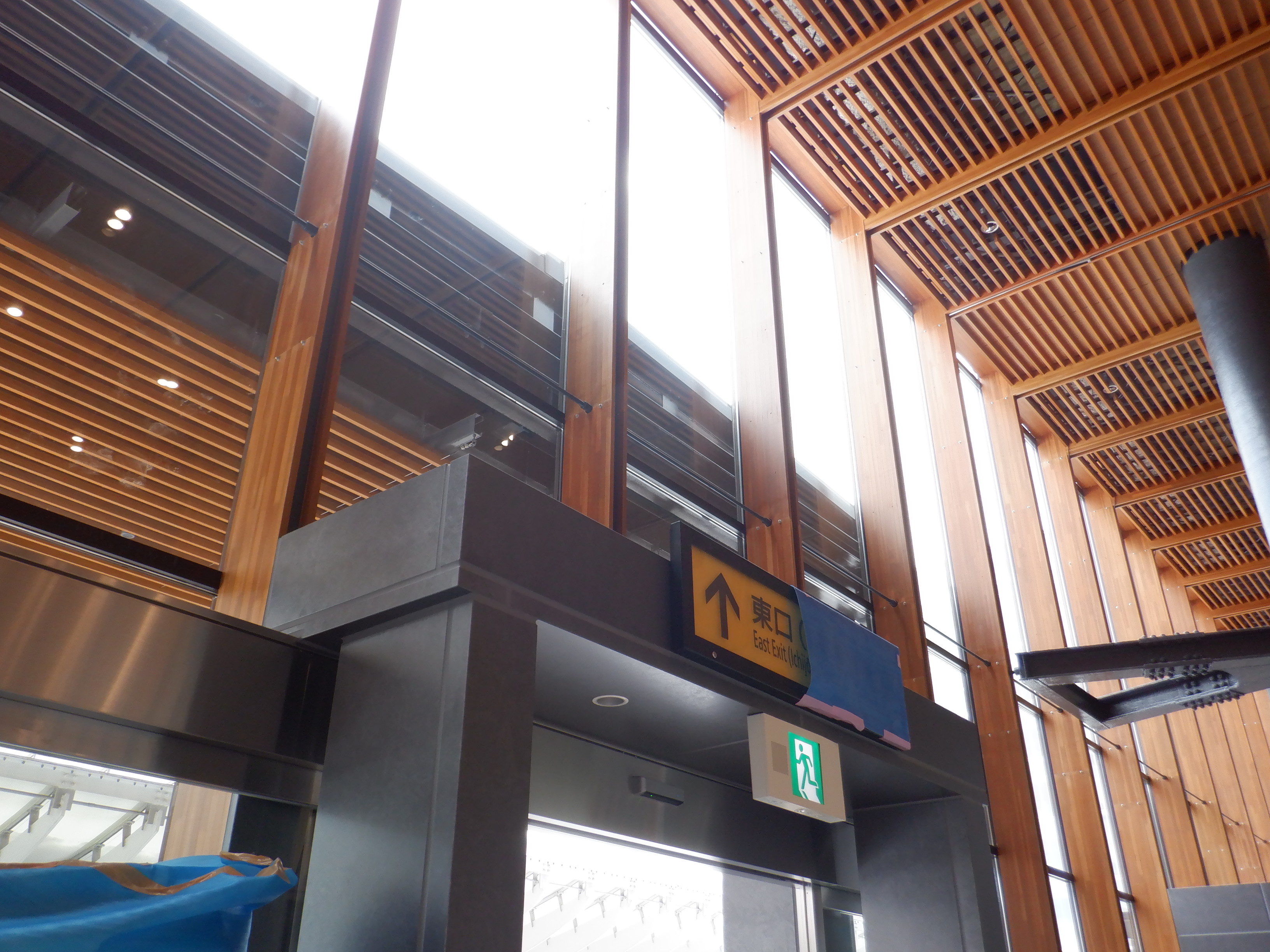 中二階の新幹線乗換改札口になるところ。看板が付けられました。