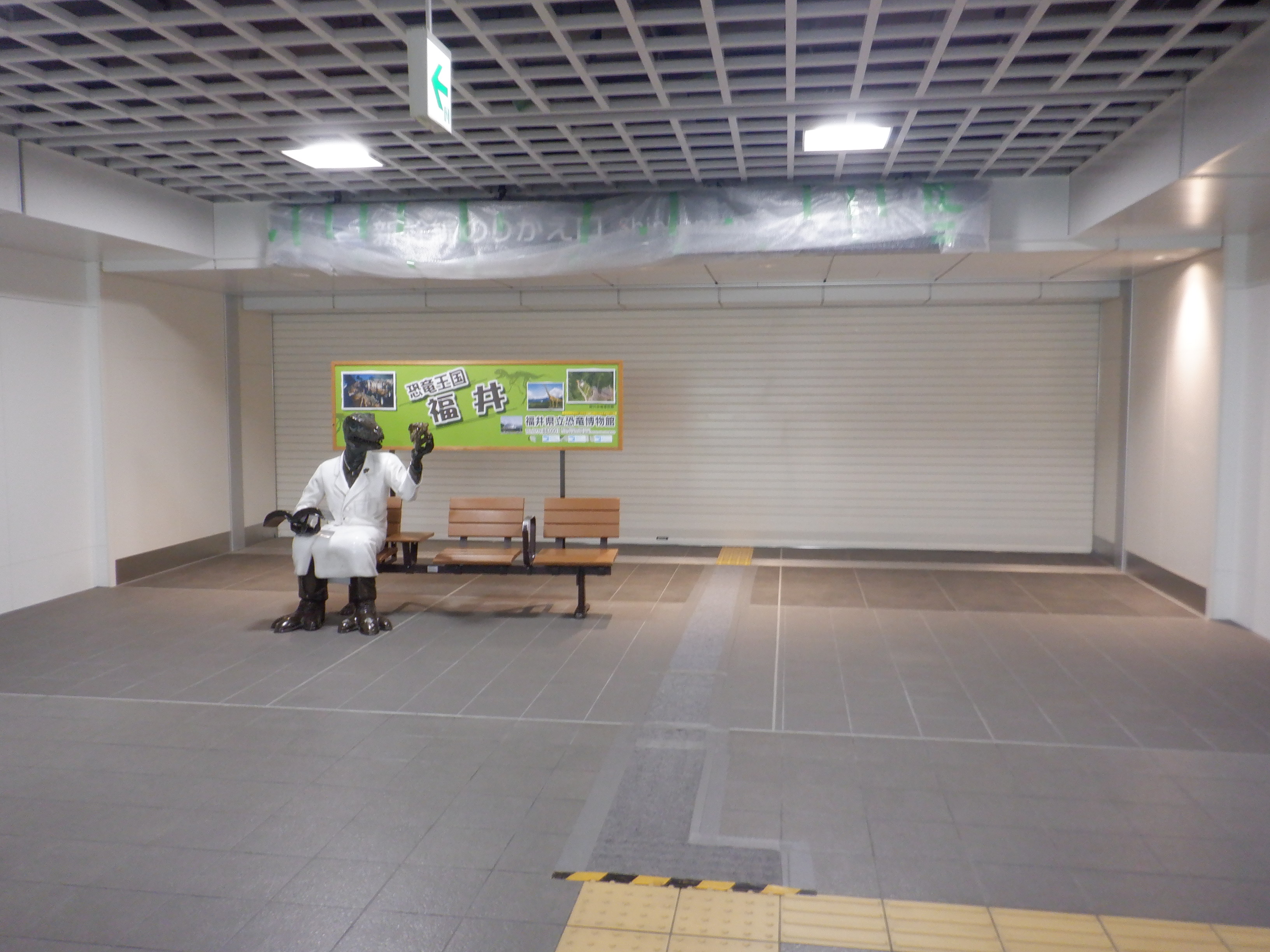 拡張施設とえちぜん鉄道福井駅の間の通路。新幹線易者に接した部分は舗装されました。