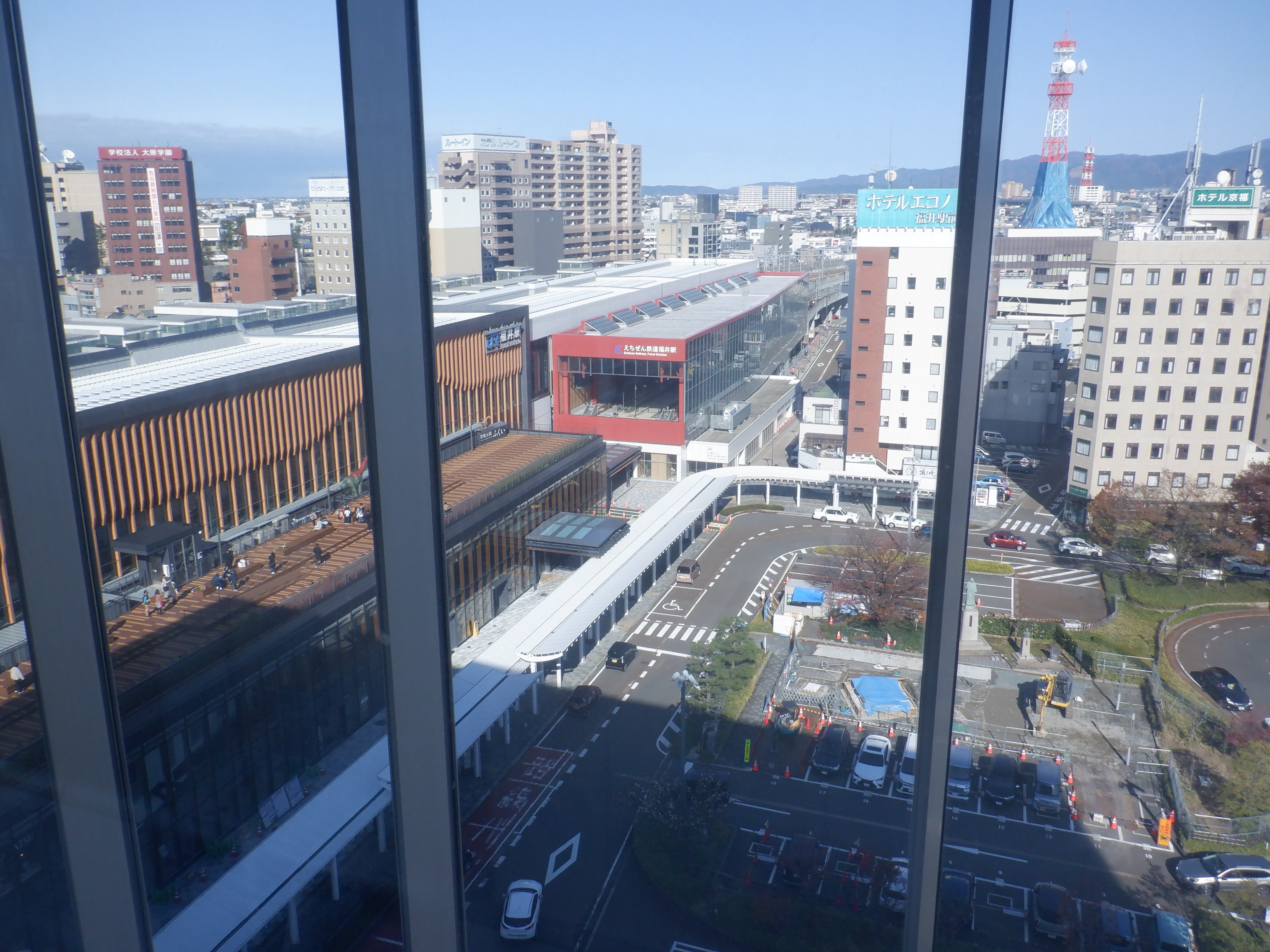 アオッサ7階・8階、そこから見おろした恐竜設備建設中のところ。
