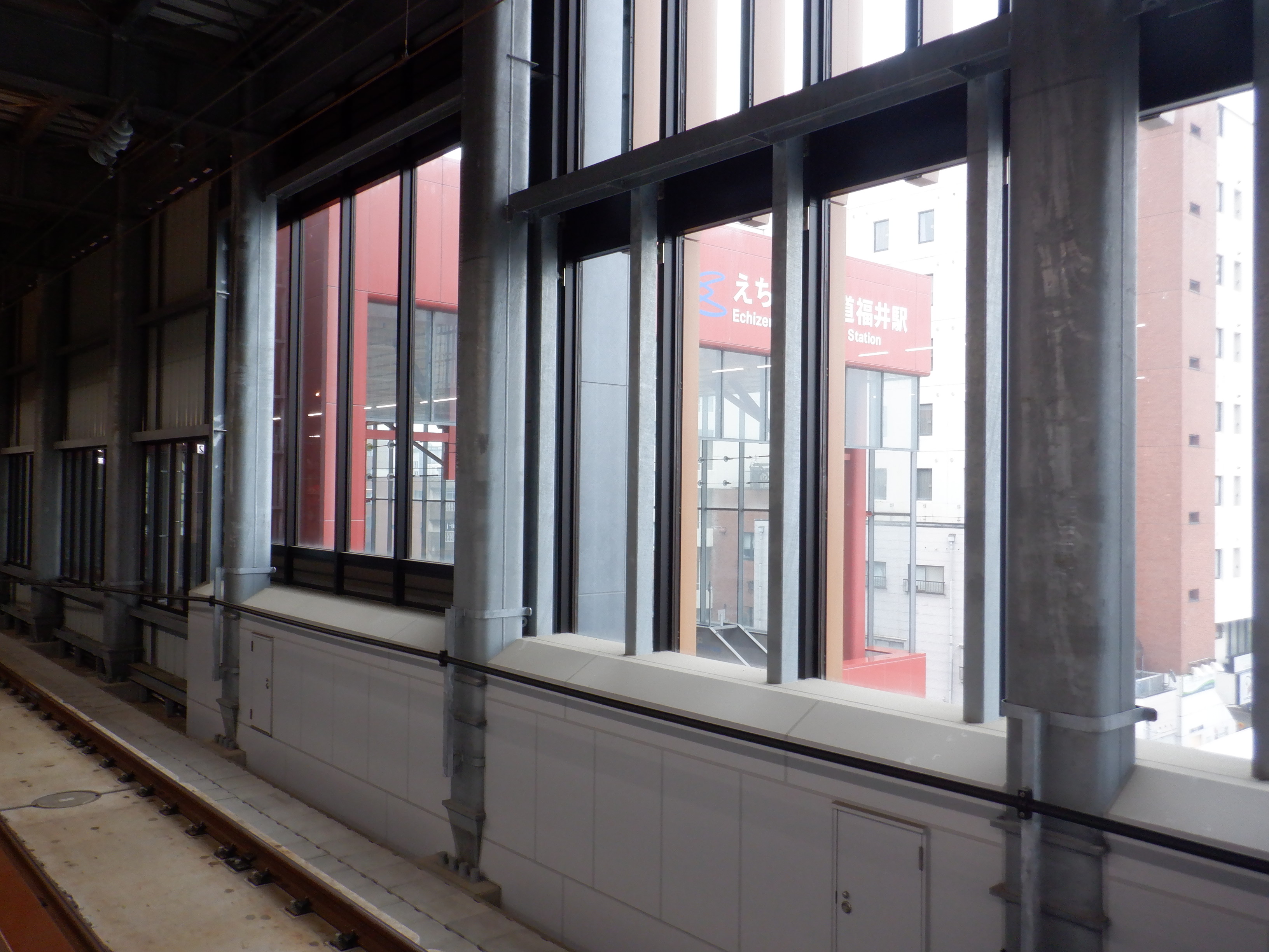 新感線ホームから見たえちぜん鉄道駅舎。