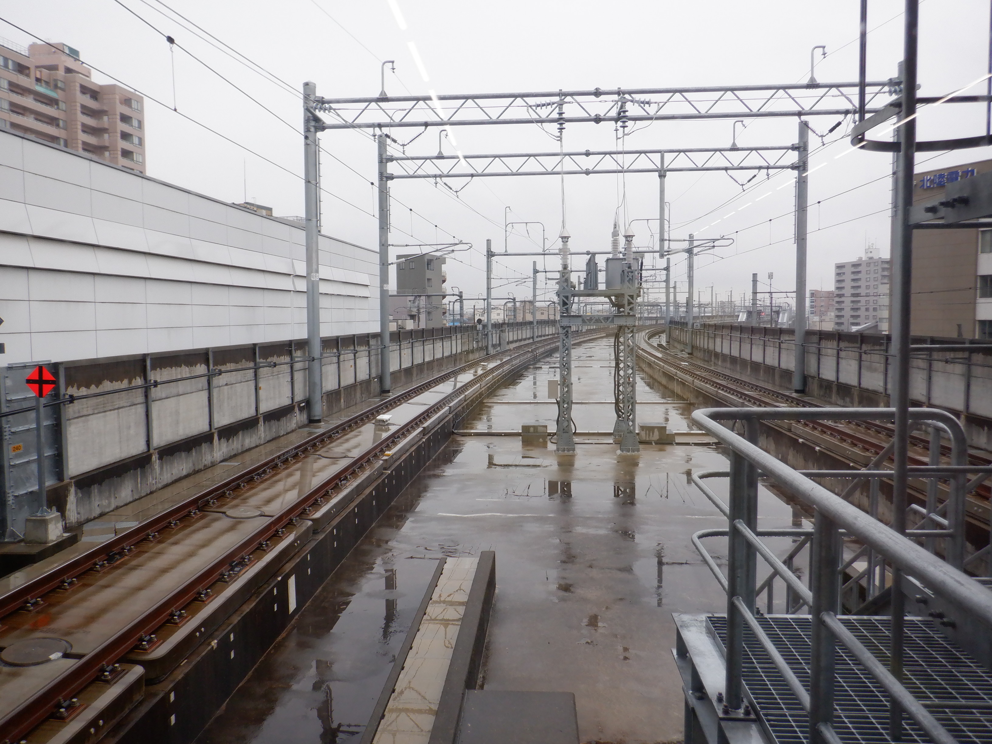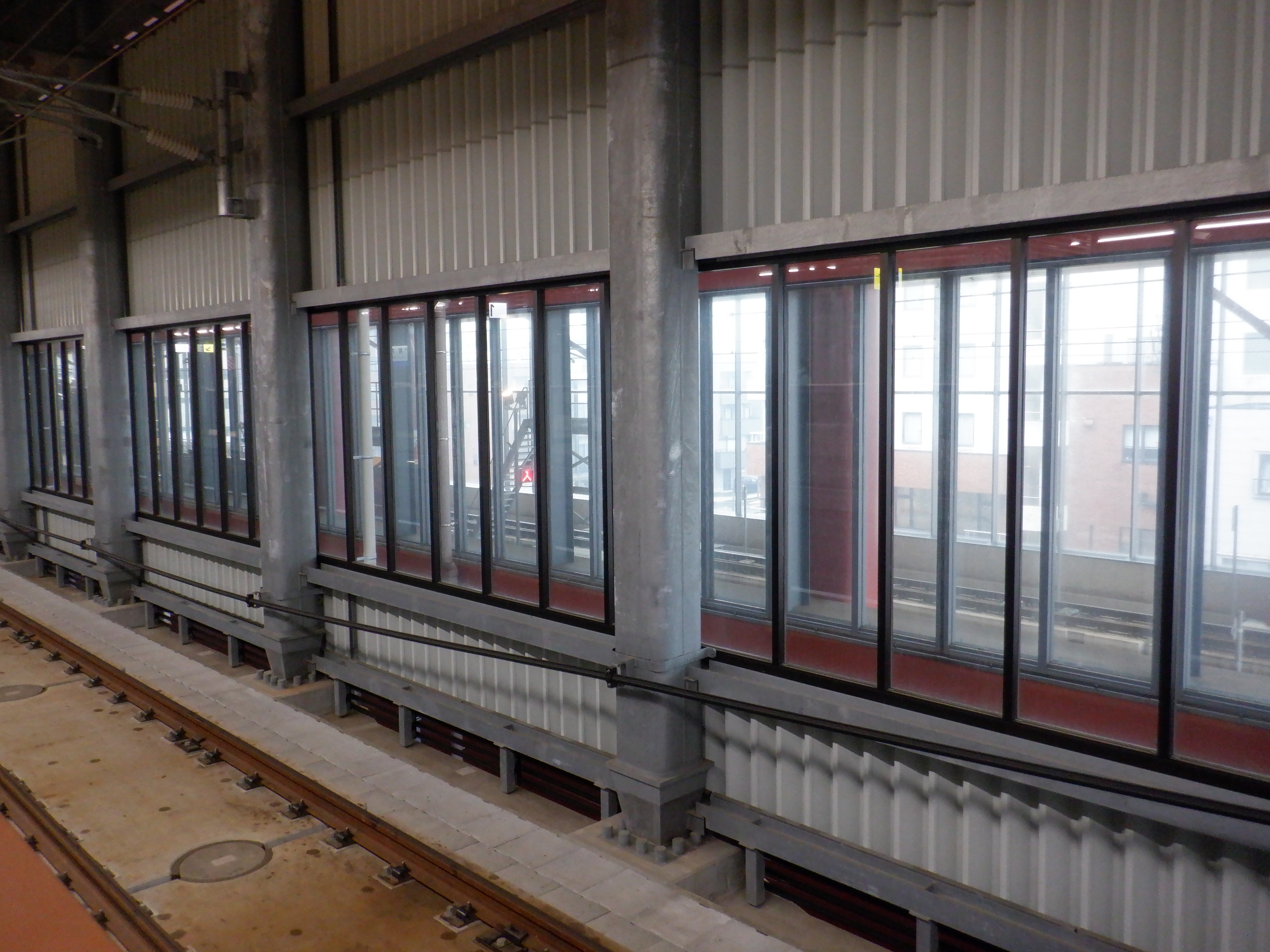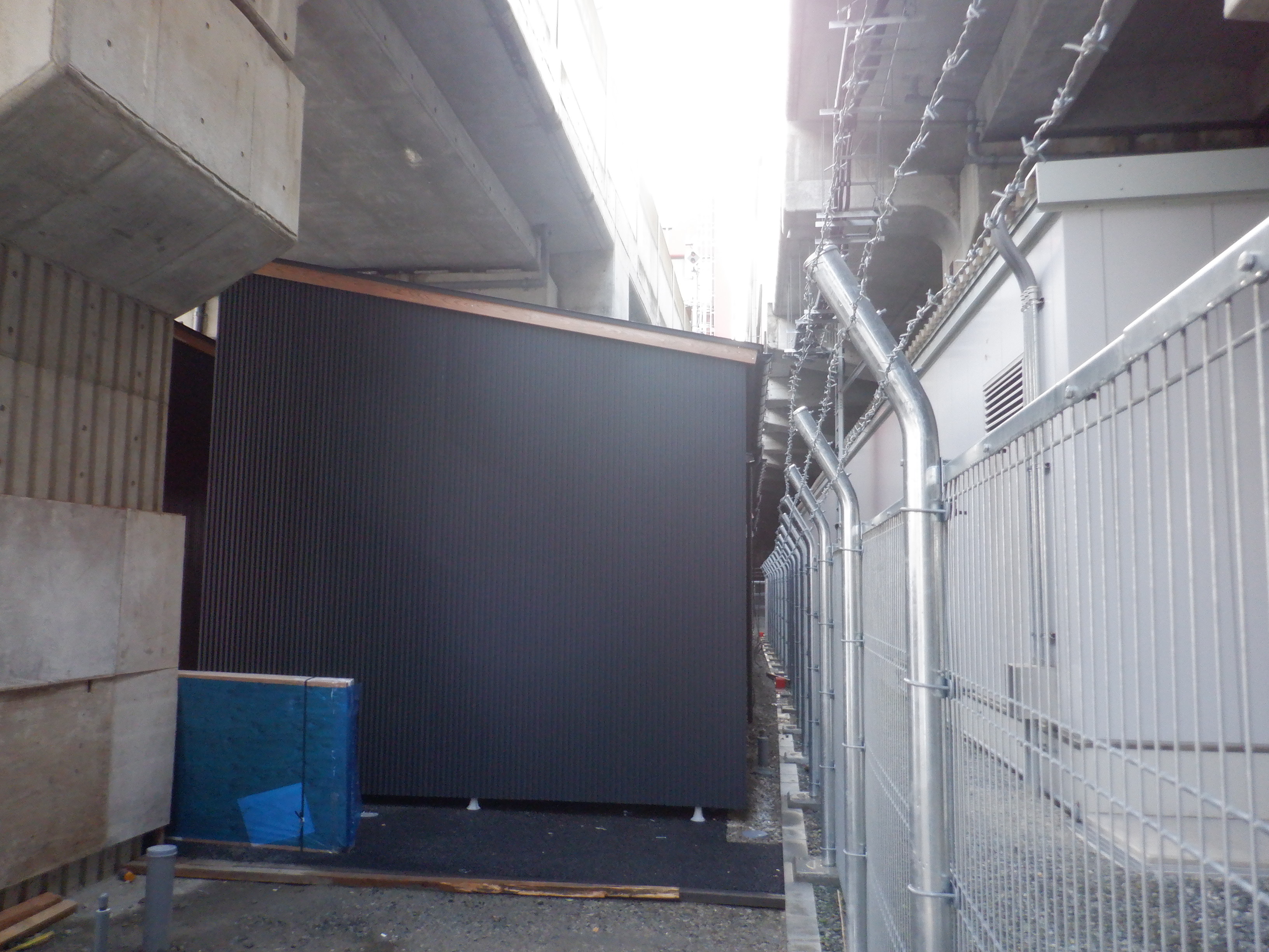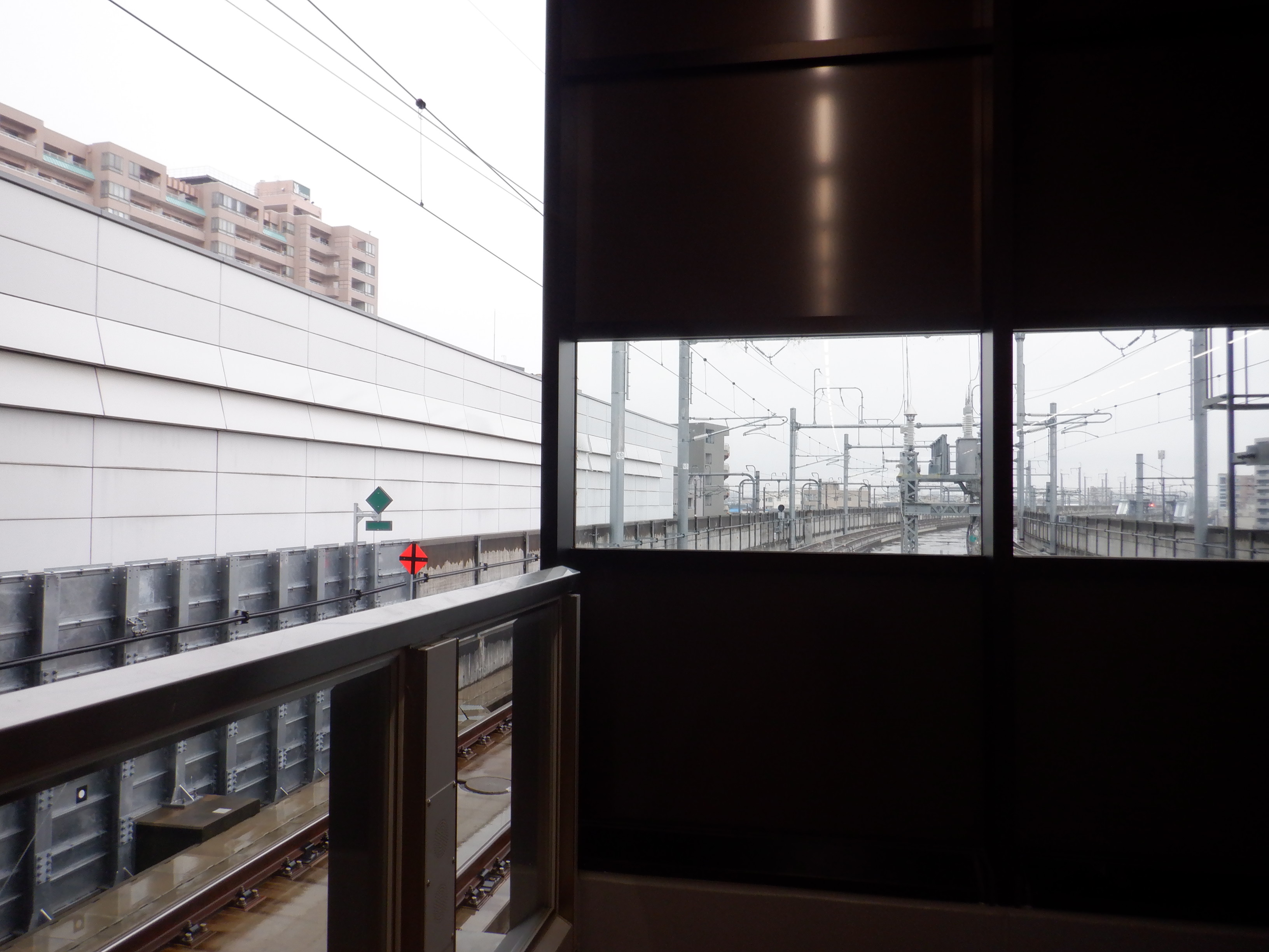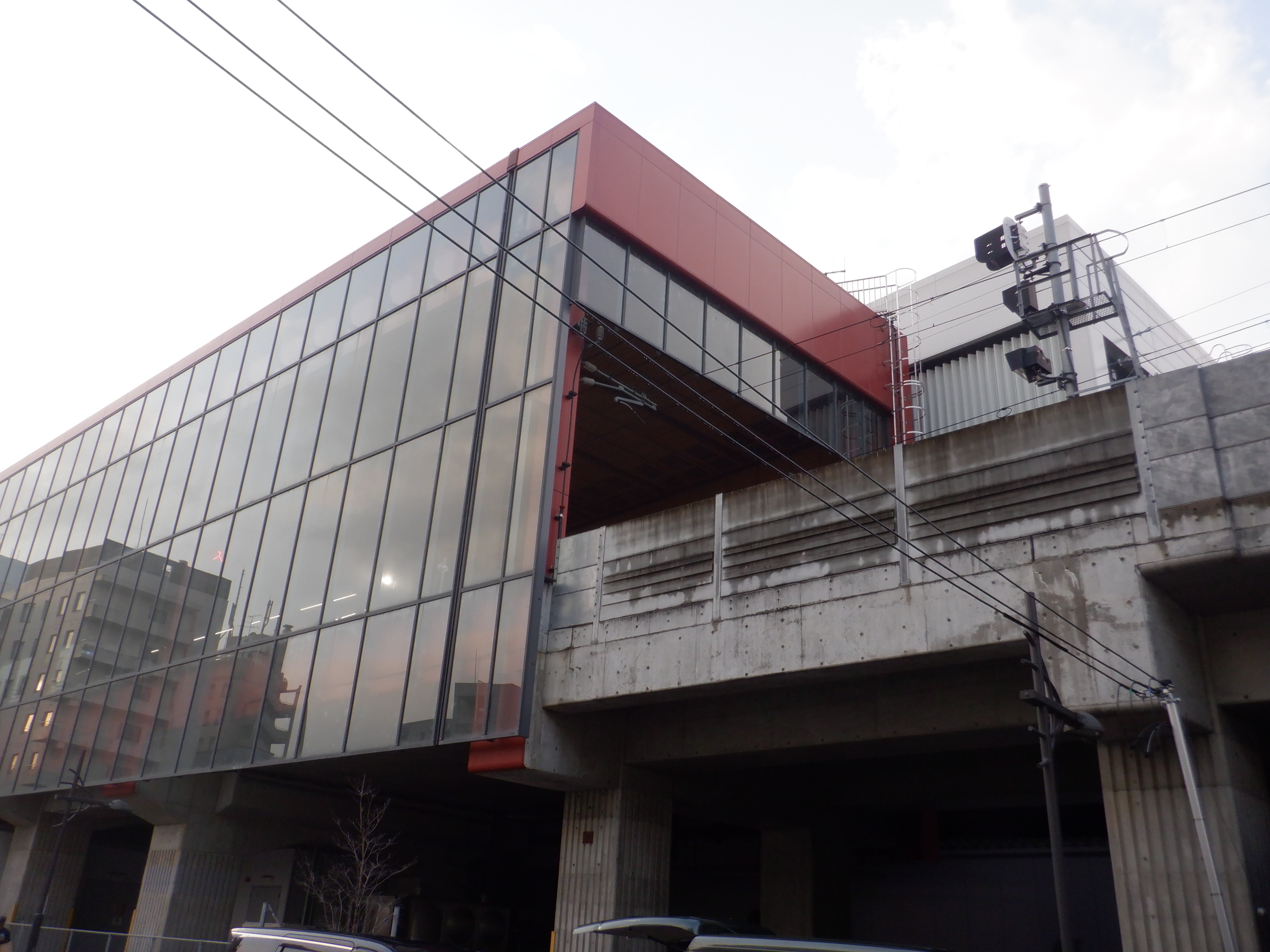 新感線ホームから見た拡張施設の屋上。