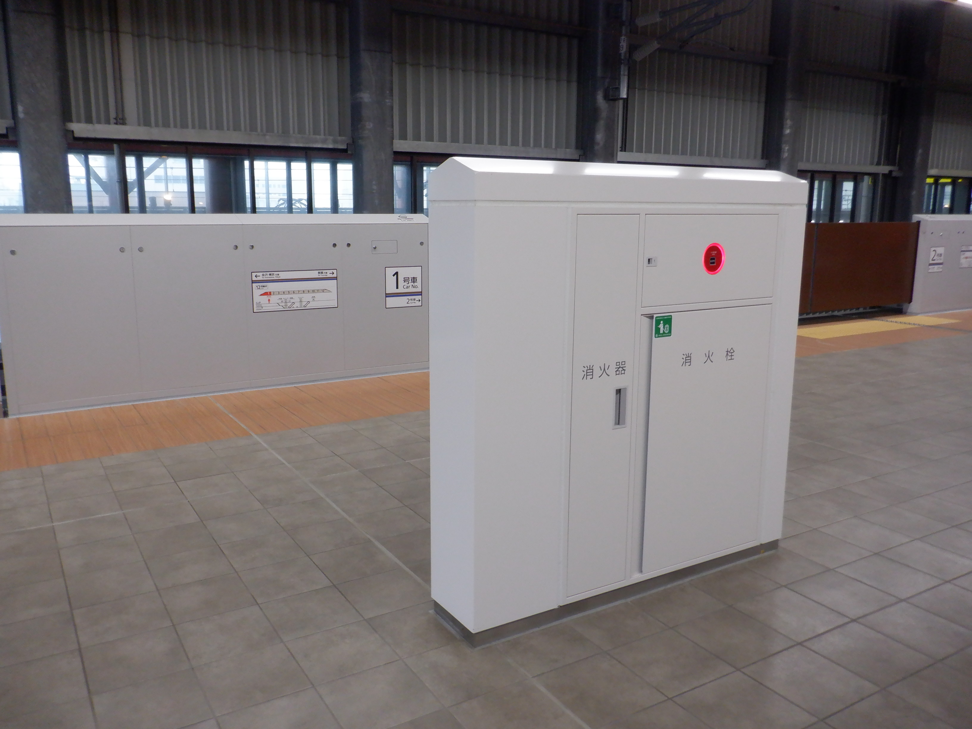 ホームのまん中にある消火栓。