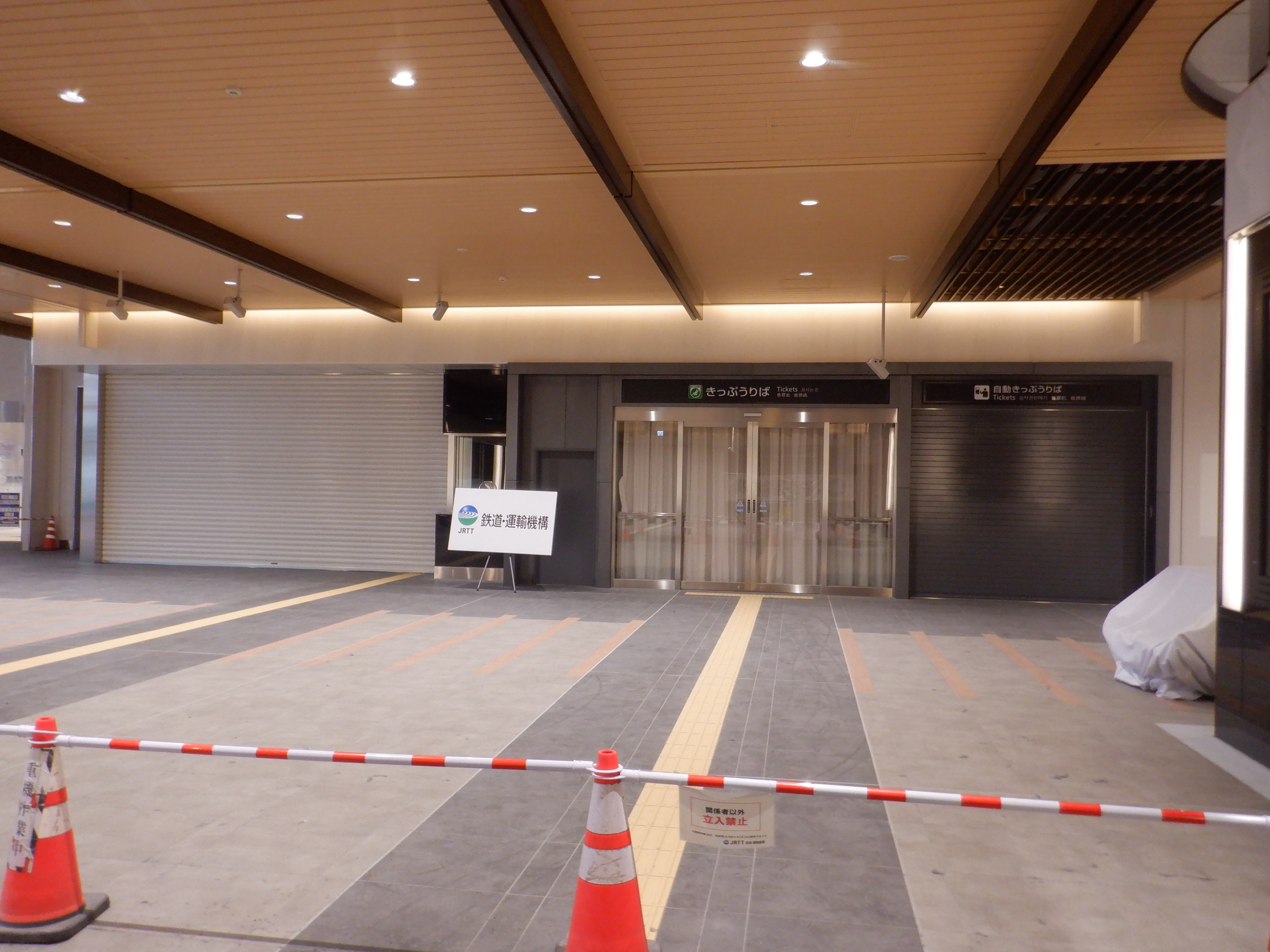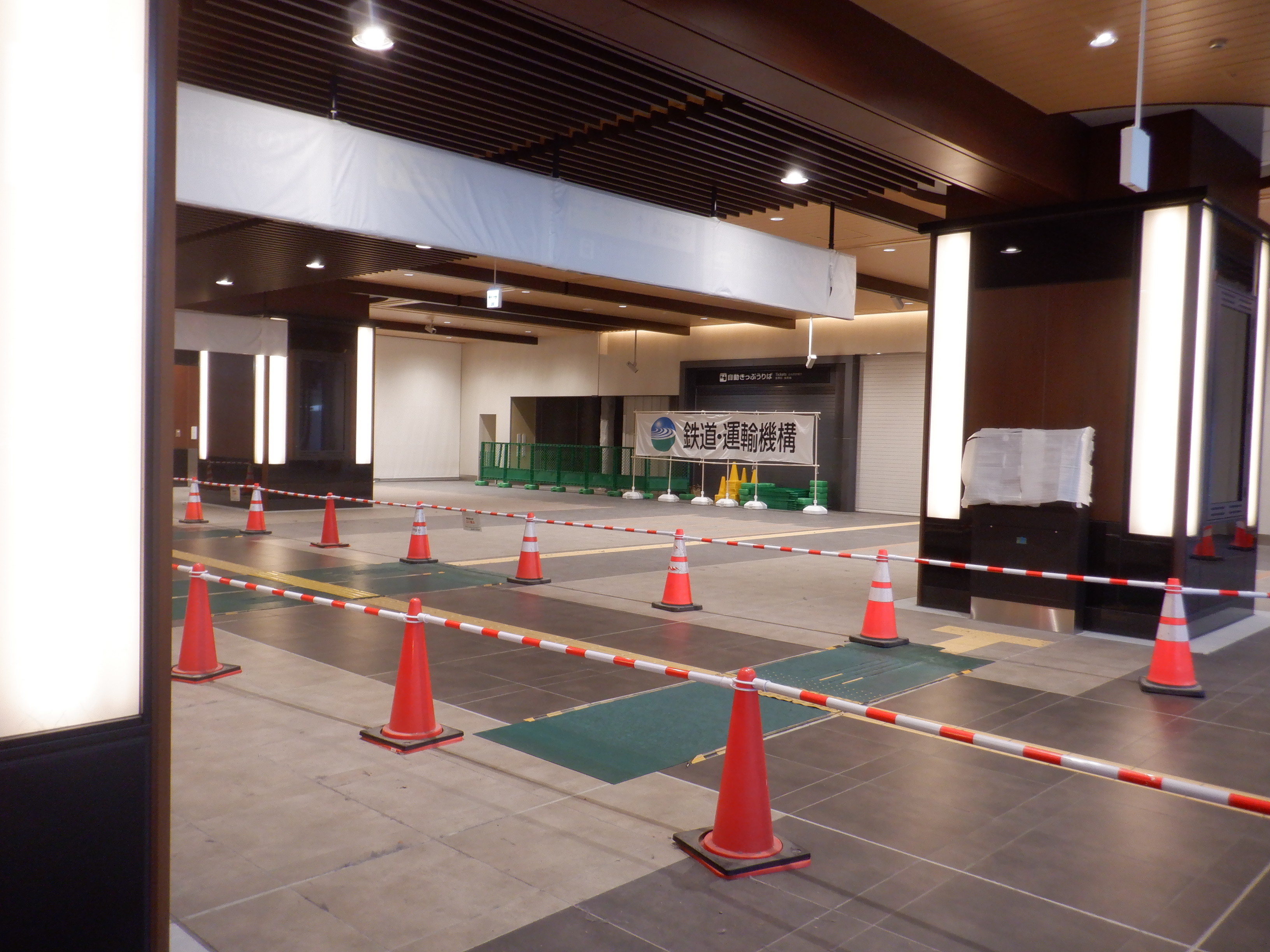 改札口から入ったところの飲食店等建設中のところ。