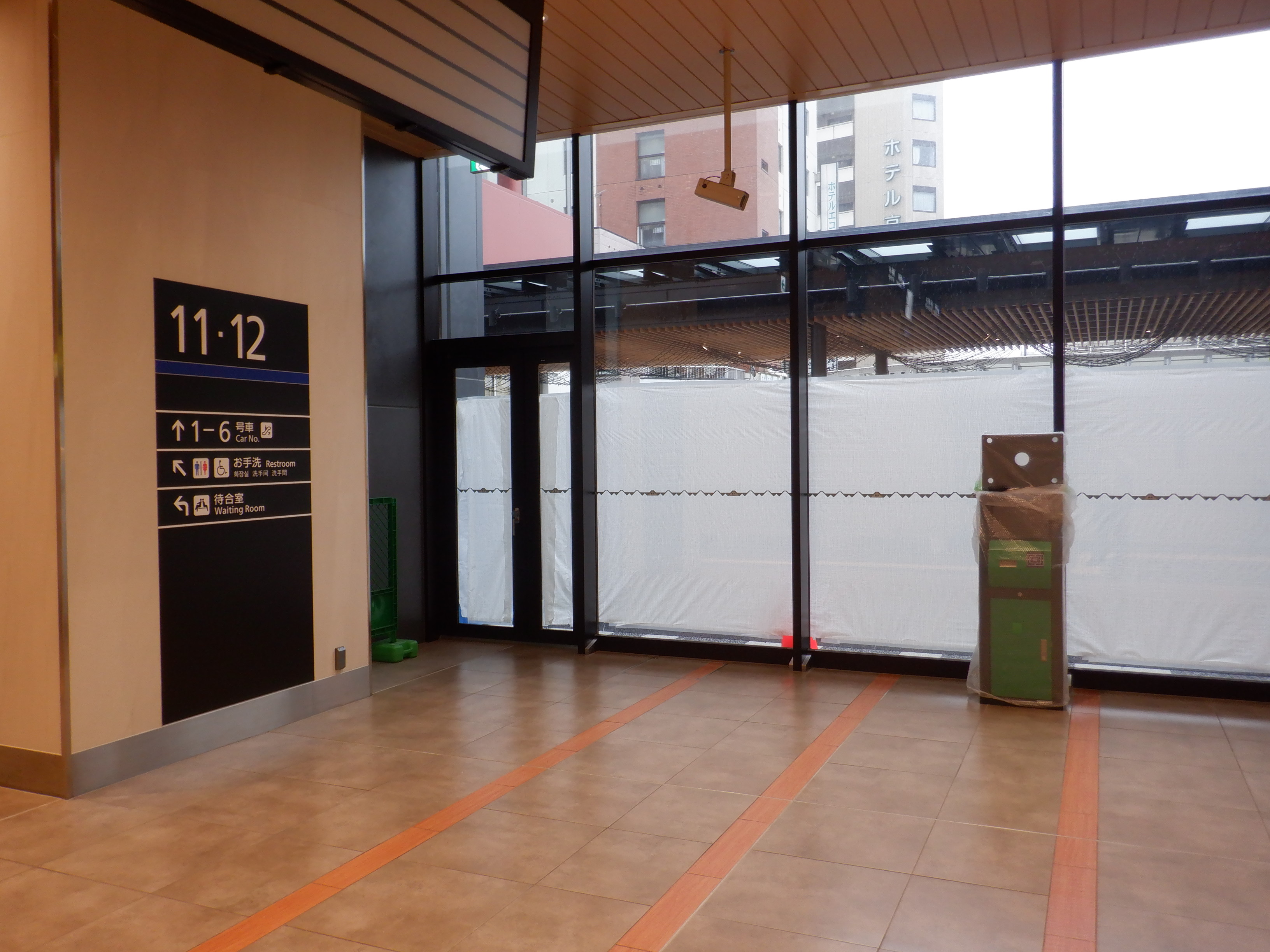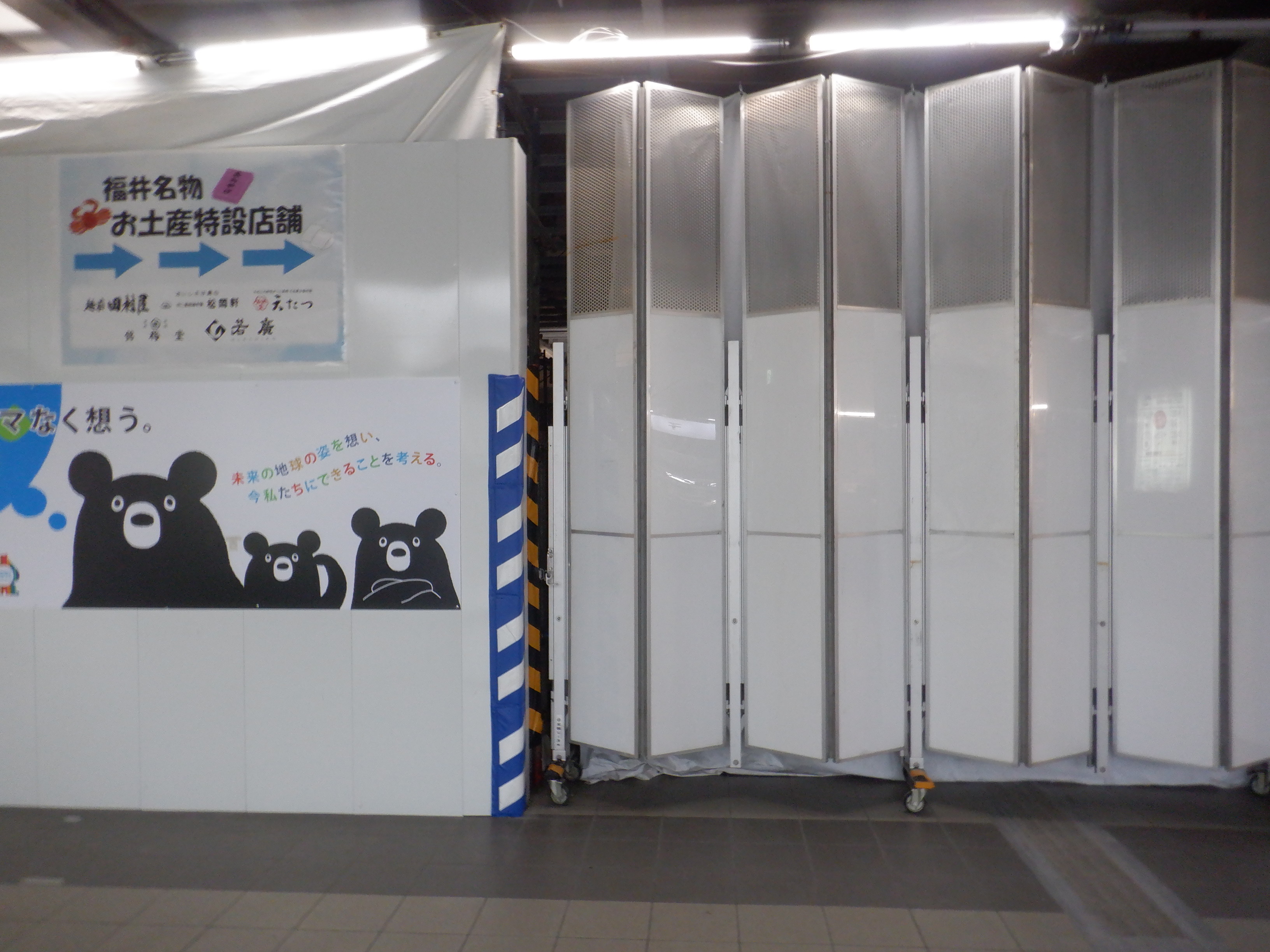 東口への仮設通路となっている新幹線のりばコンコースとなるところ。