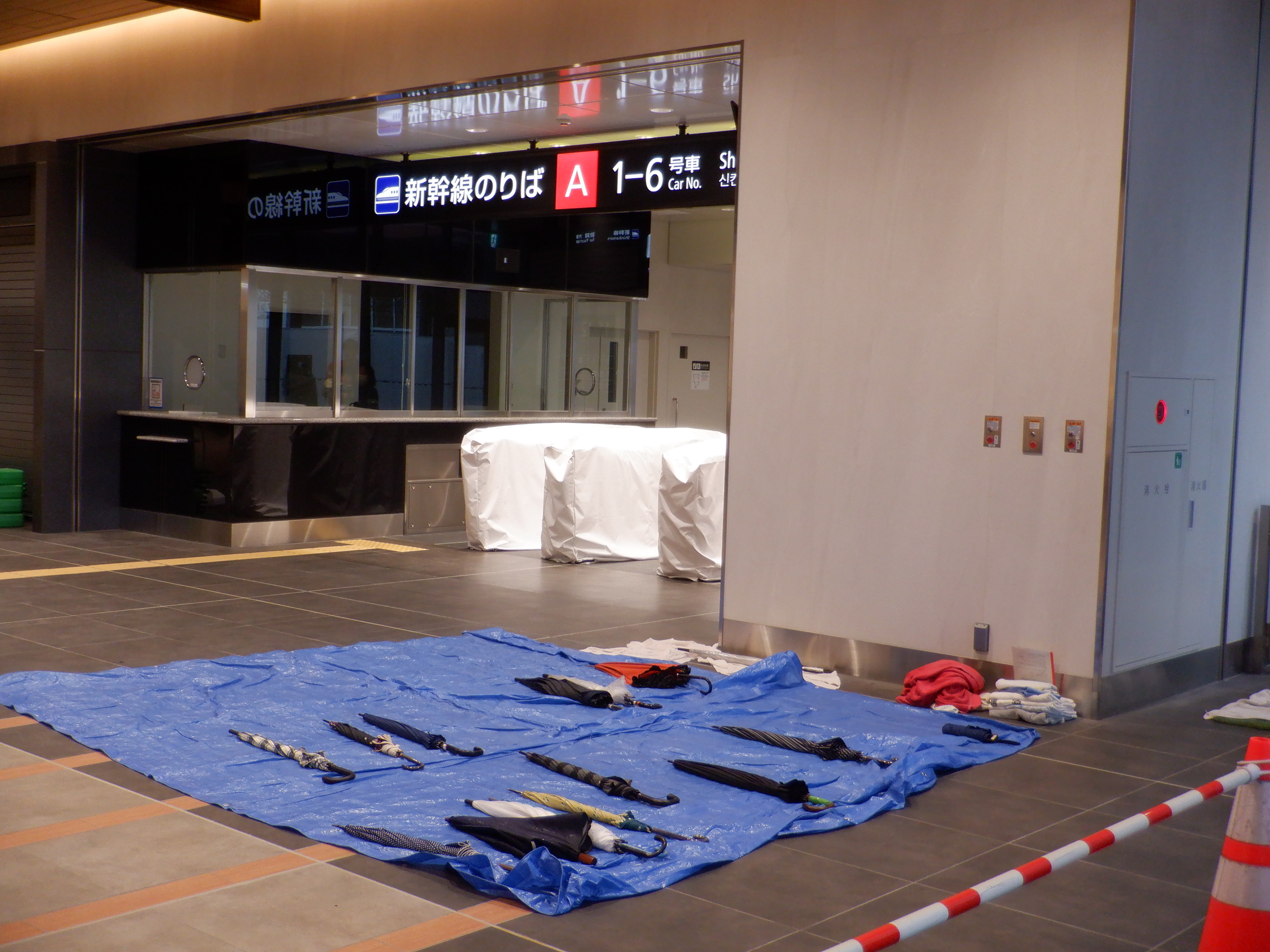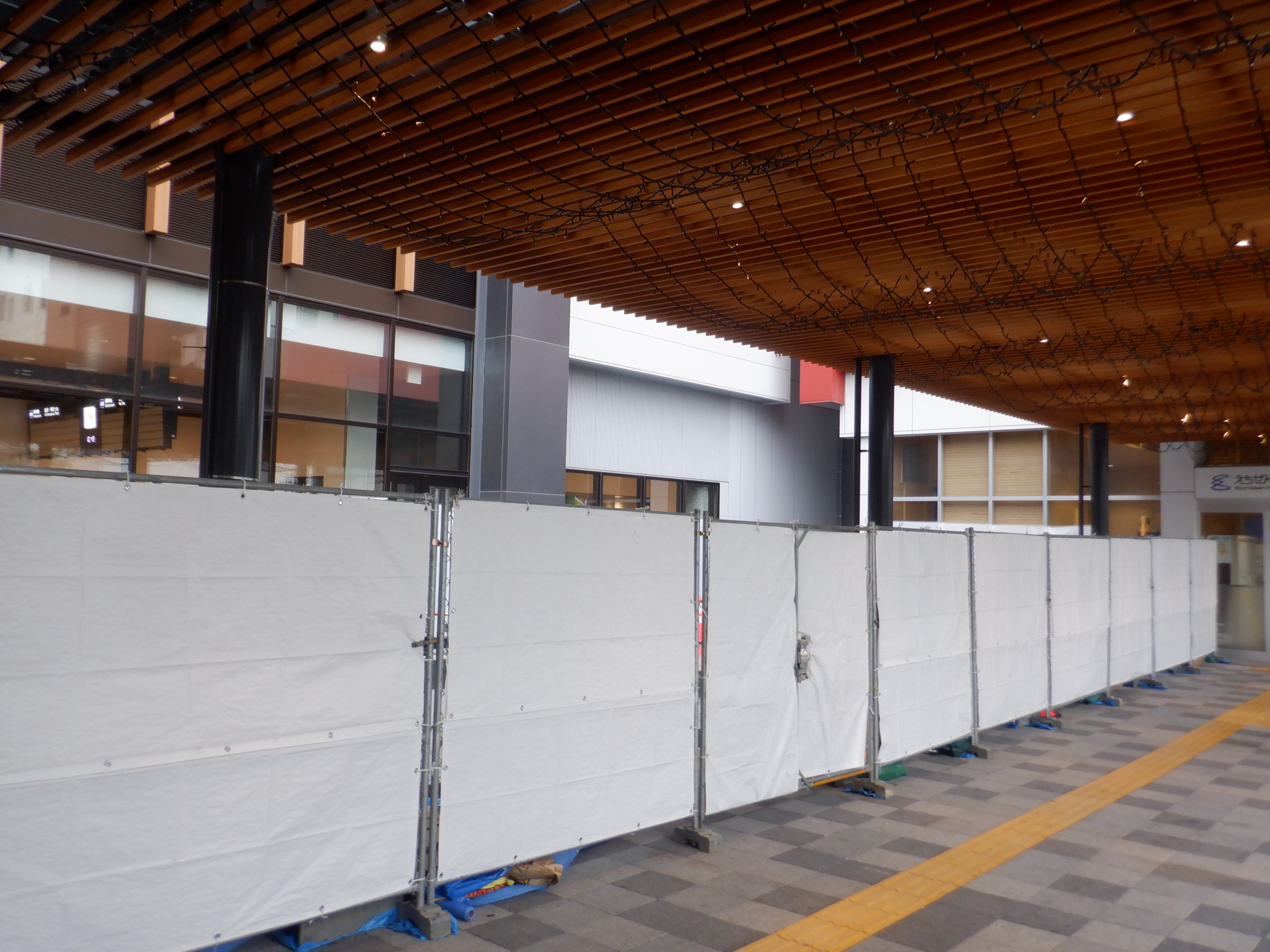 在来線改札口の前の工事中のところ。