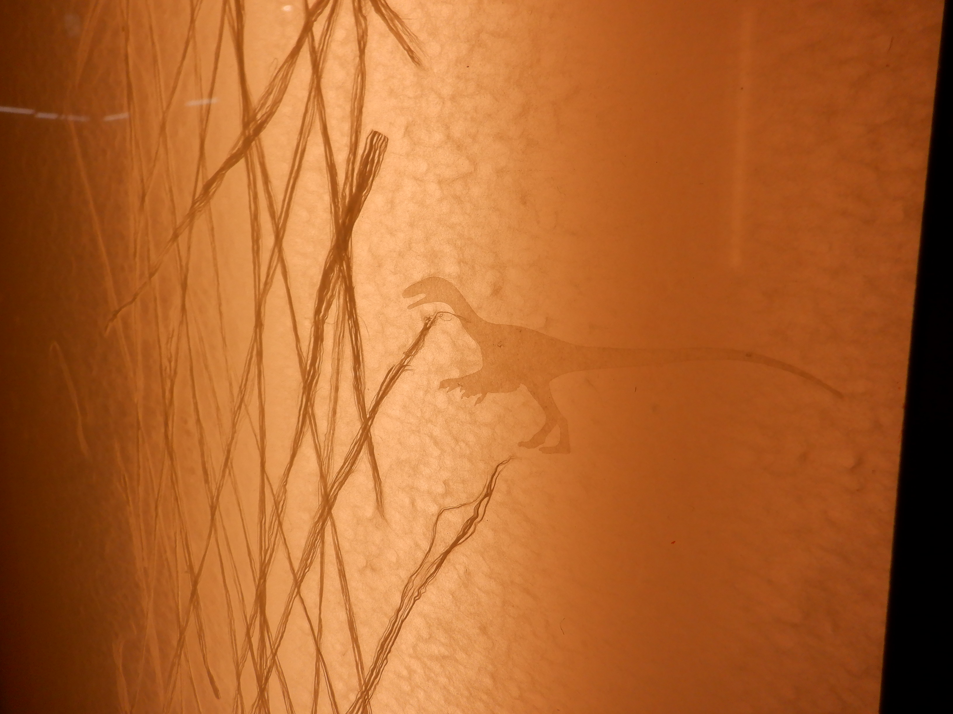 柱の行灯には恐竜の絵が浮かび上がります。