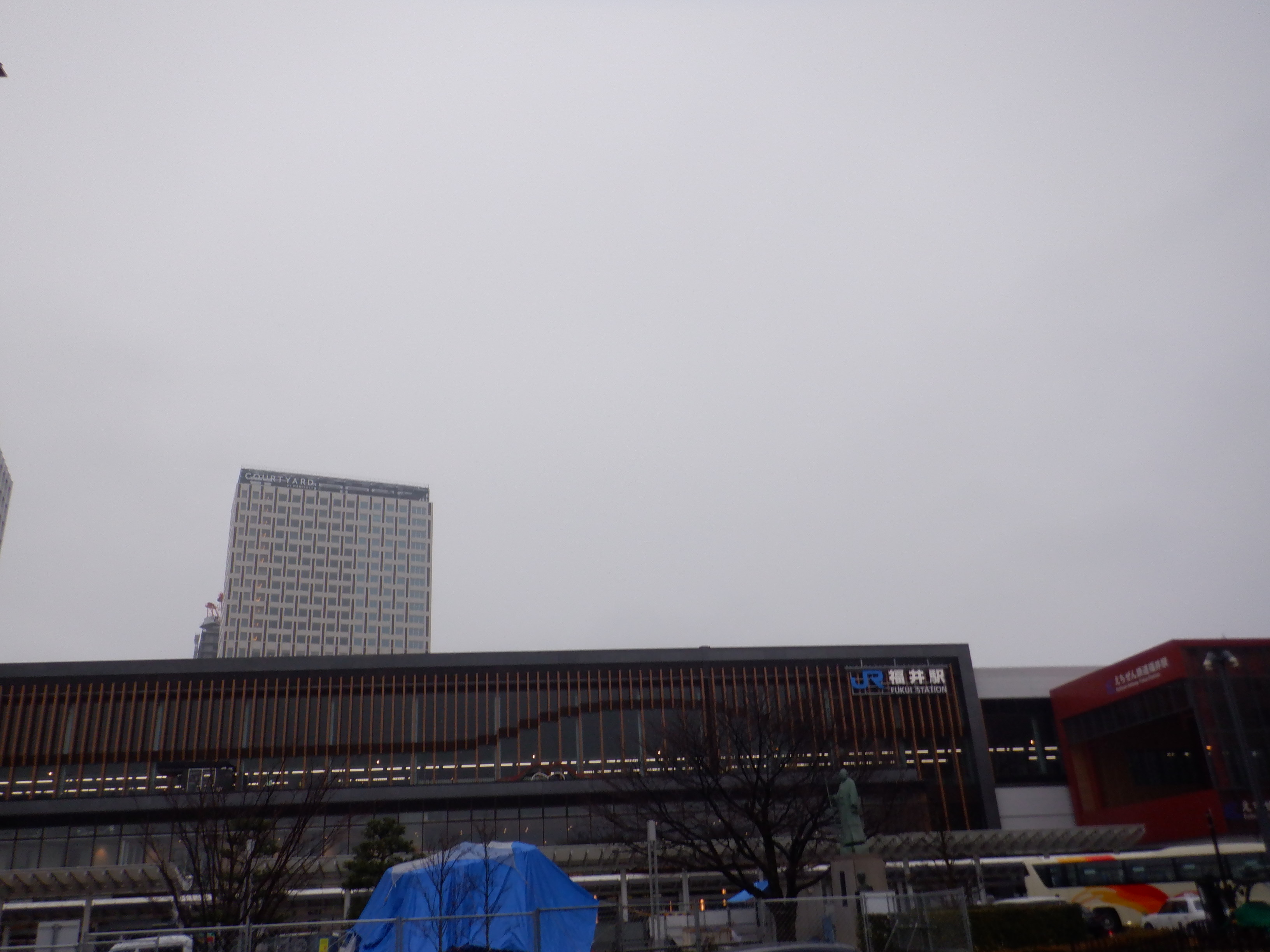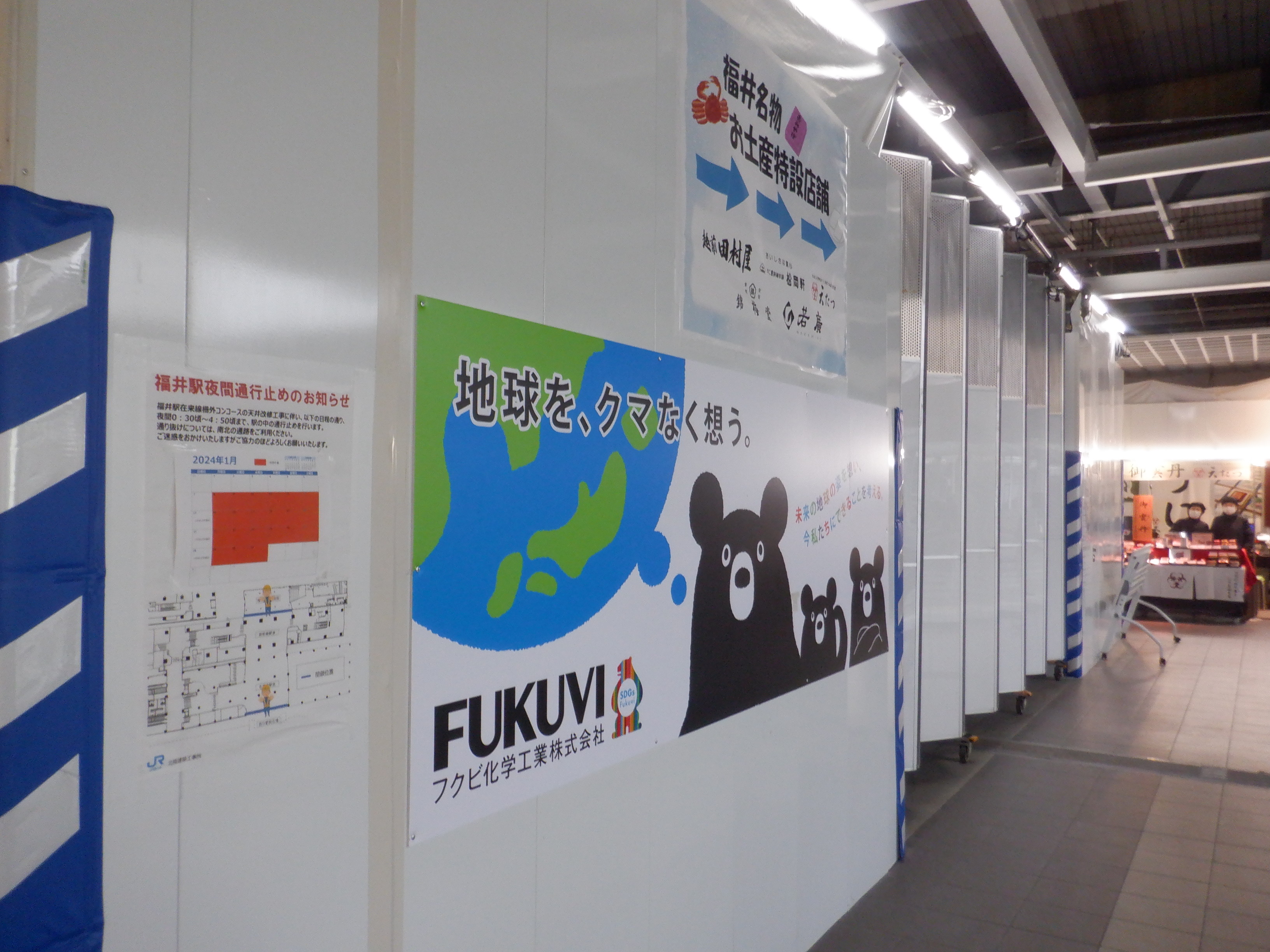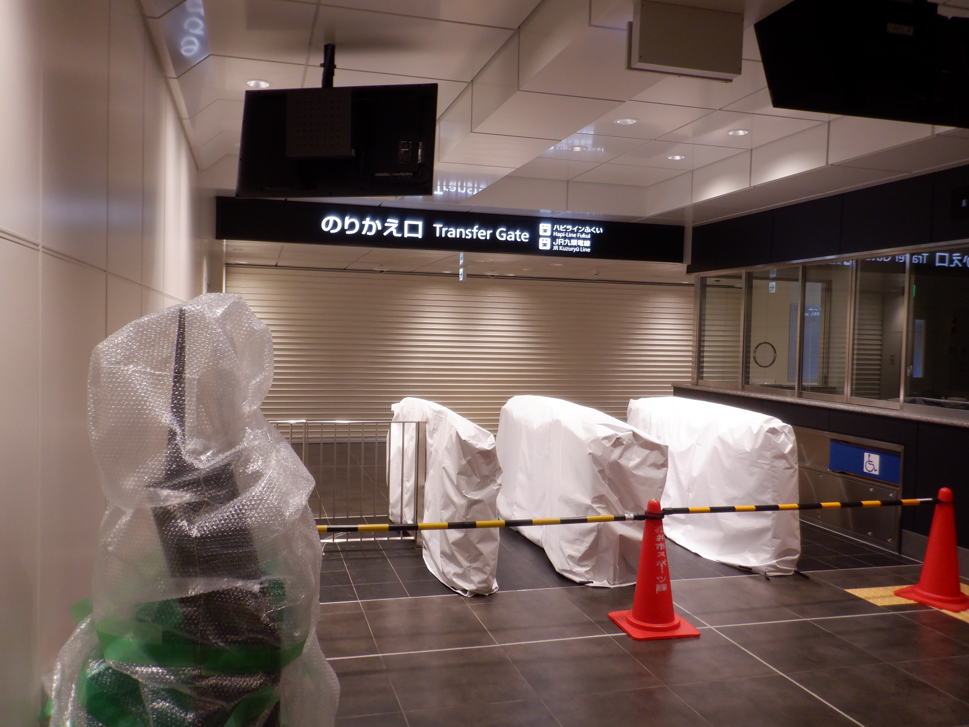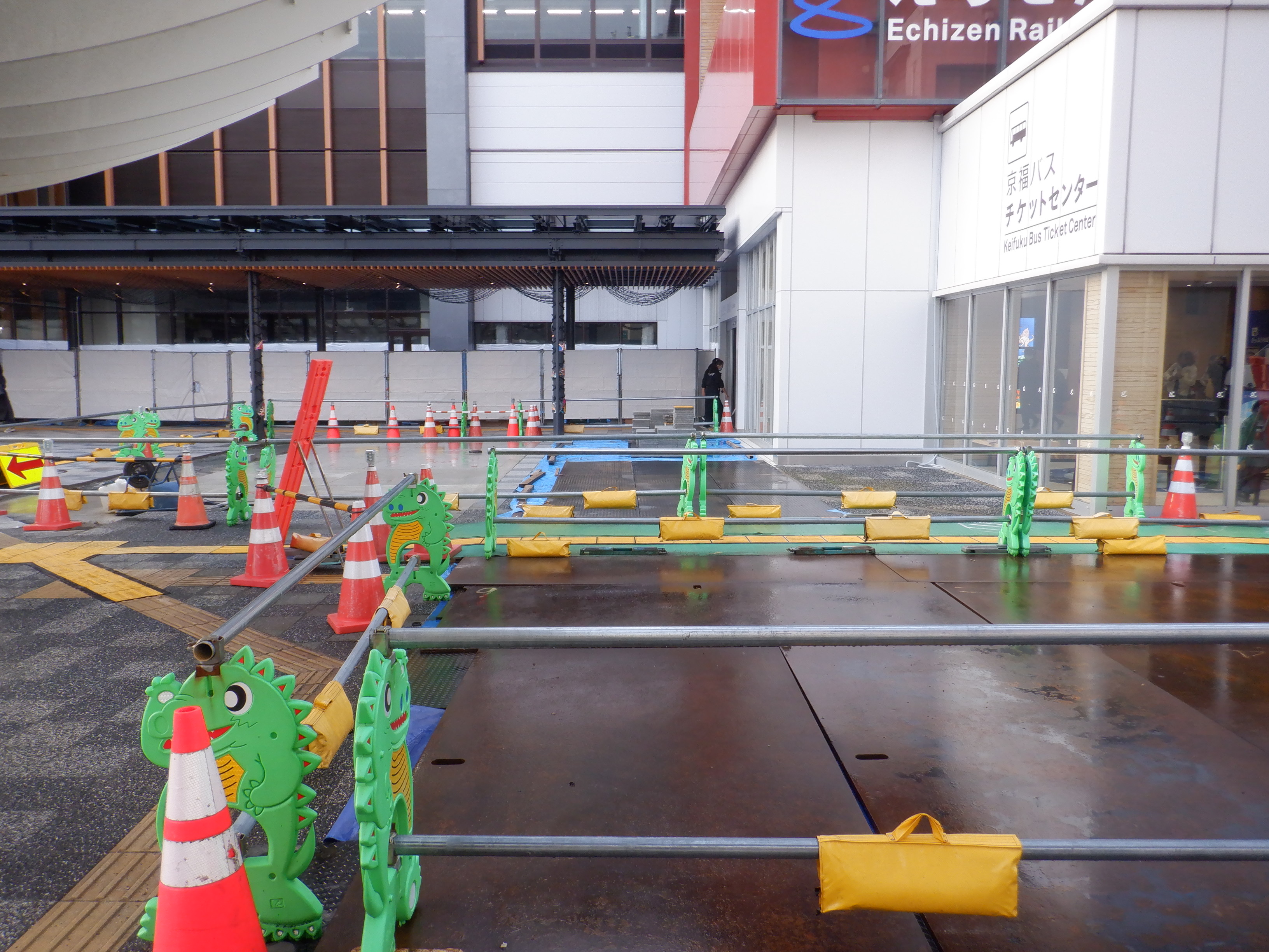 改札口付近から見たえちぜん鉄道福井駅との間の工事中のところ。