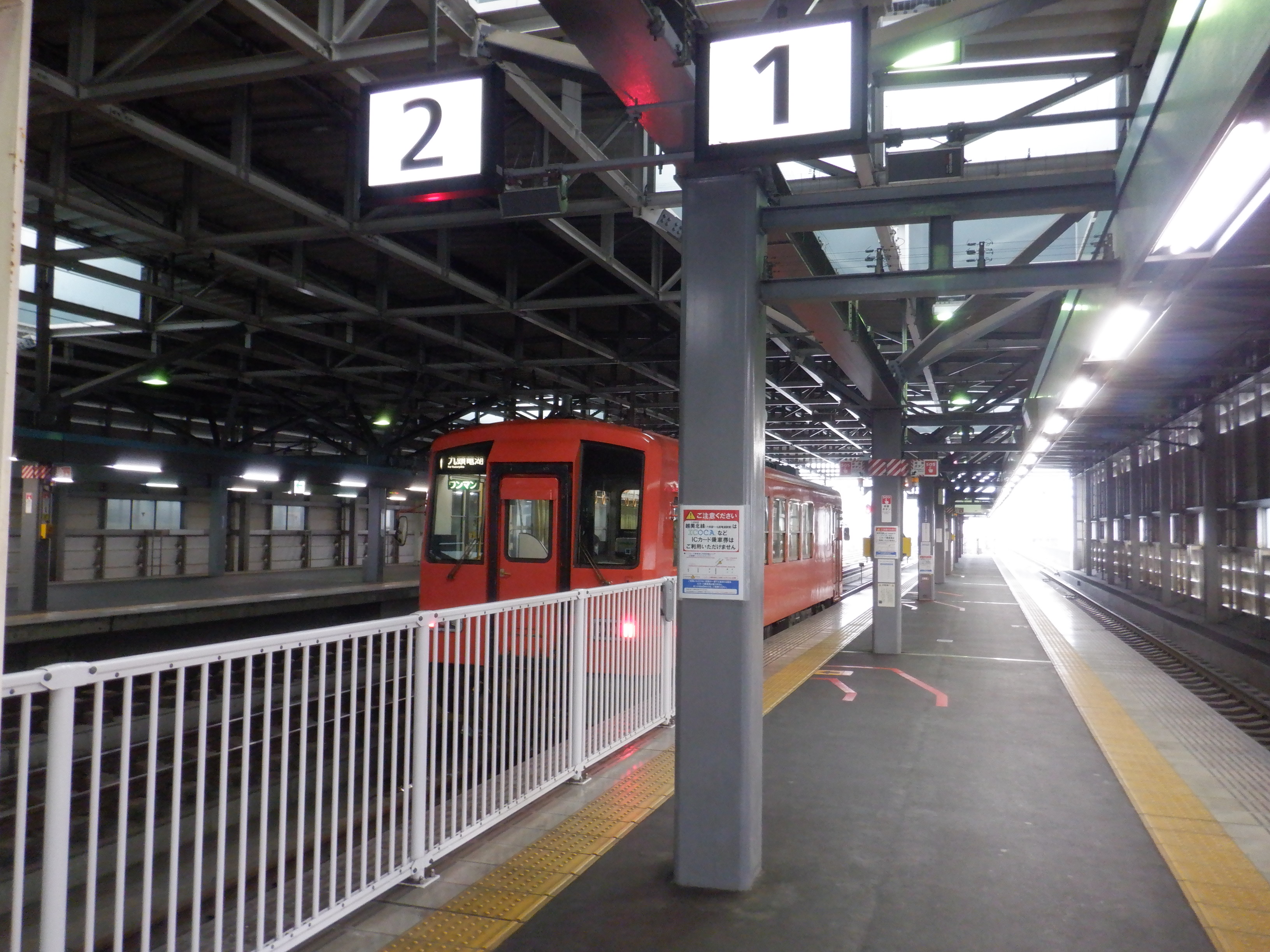 越美北線の列車が発着する2番のりば。