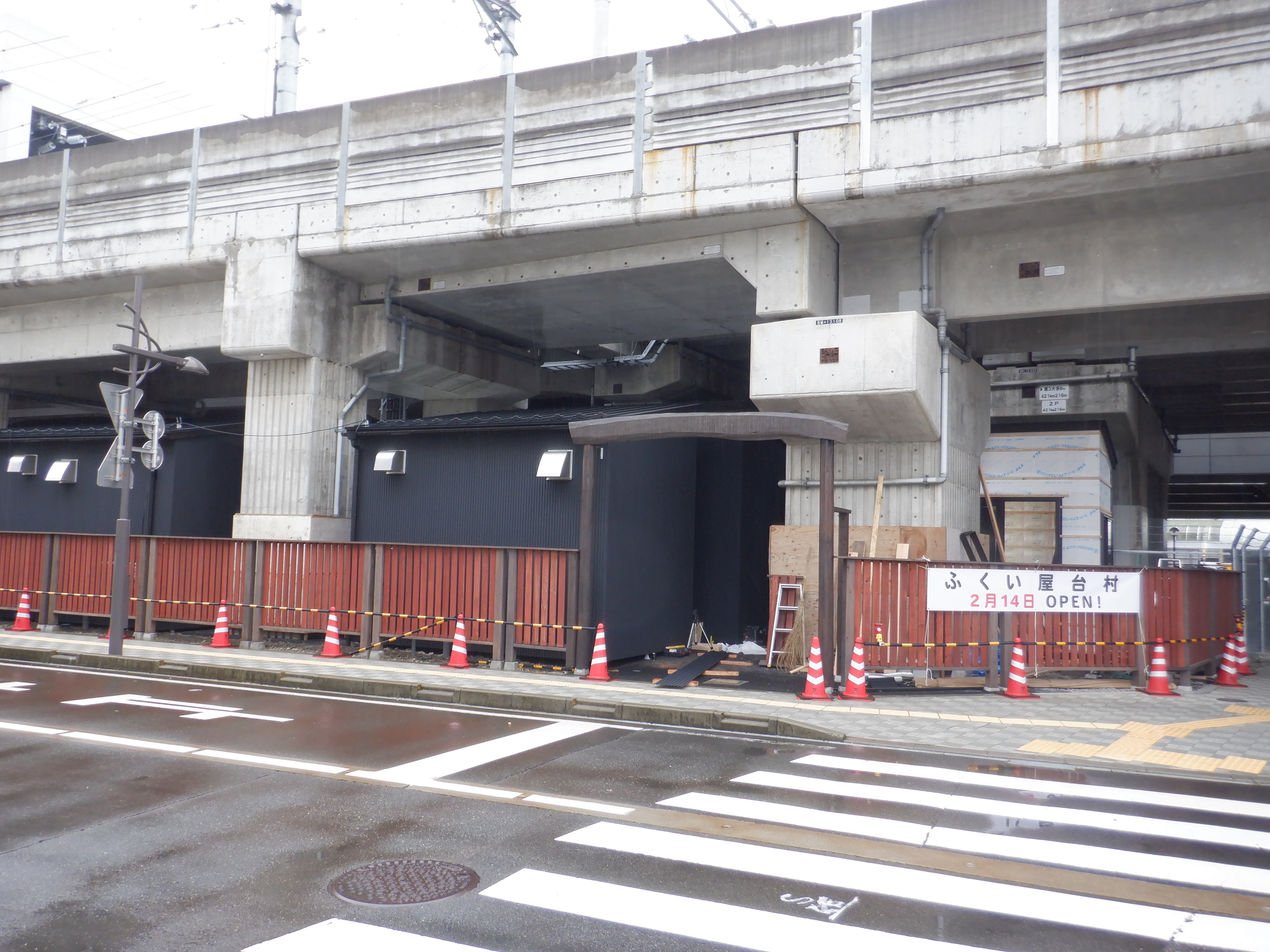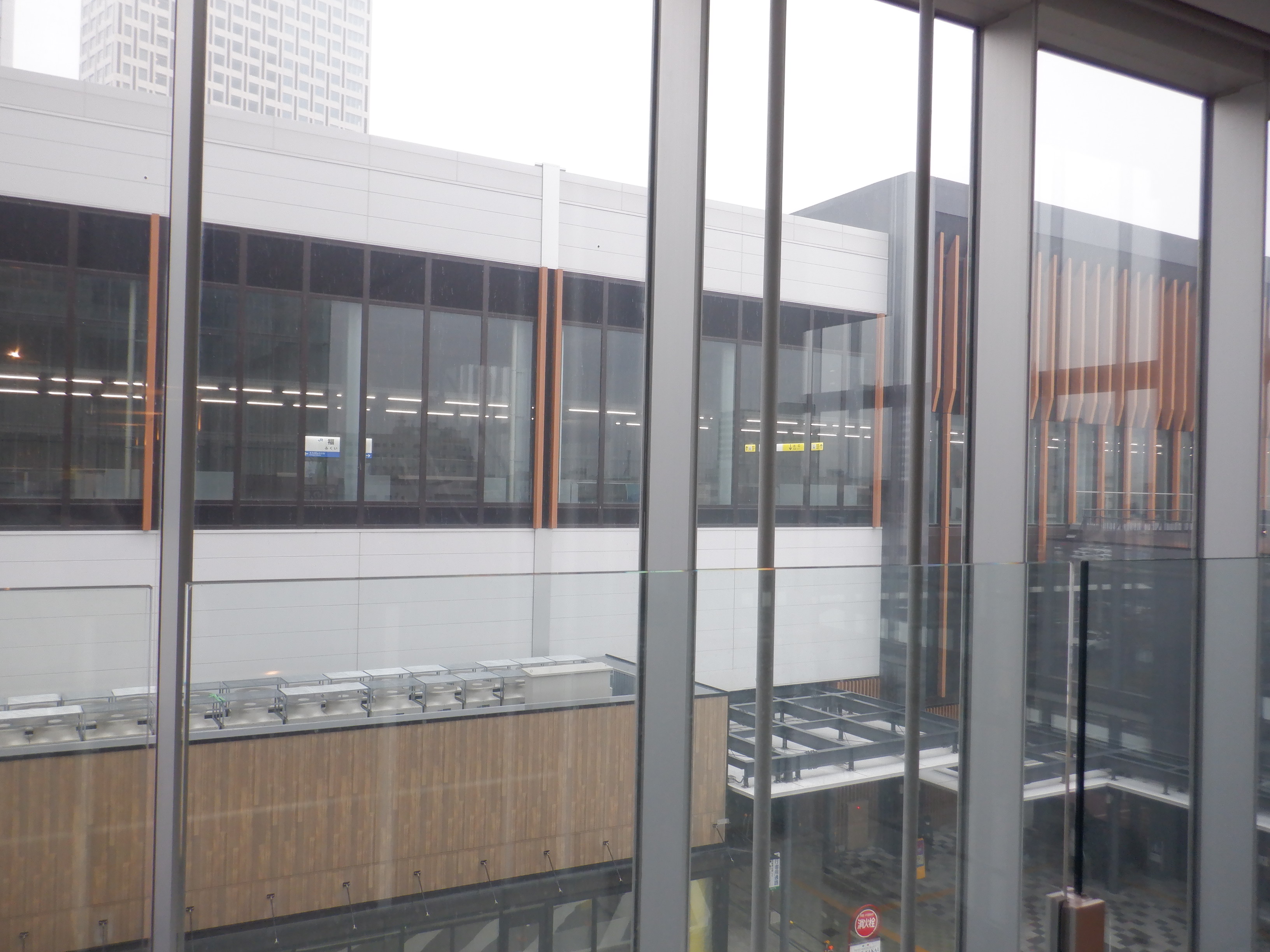 拡張施設と新幹線駅舎の間の工事中のところ。