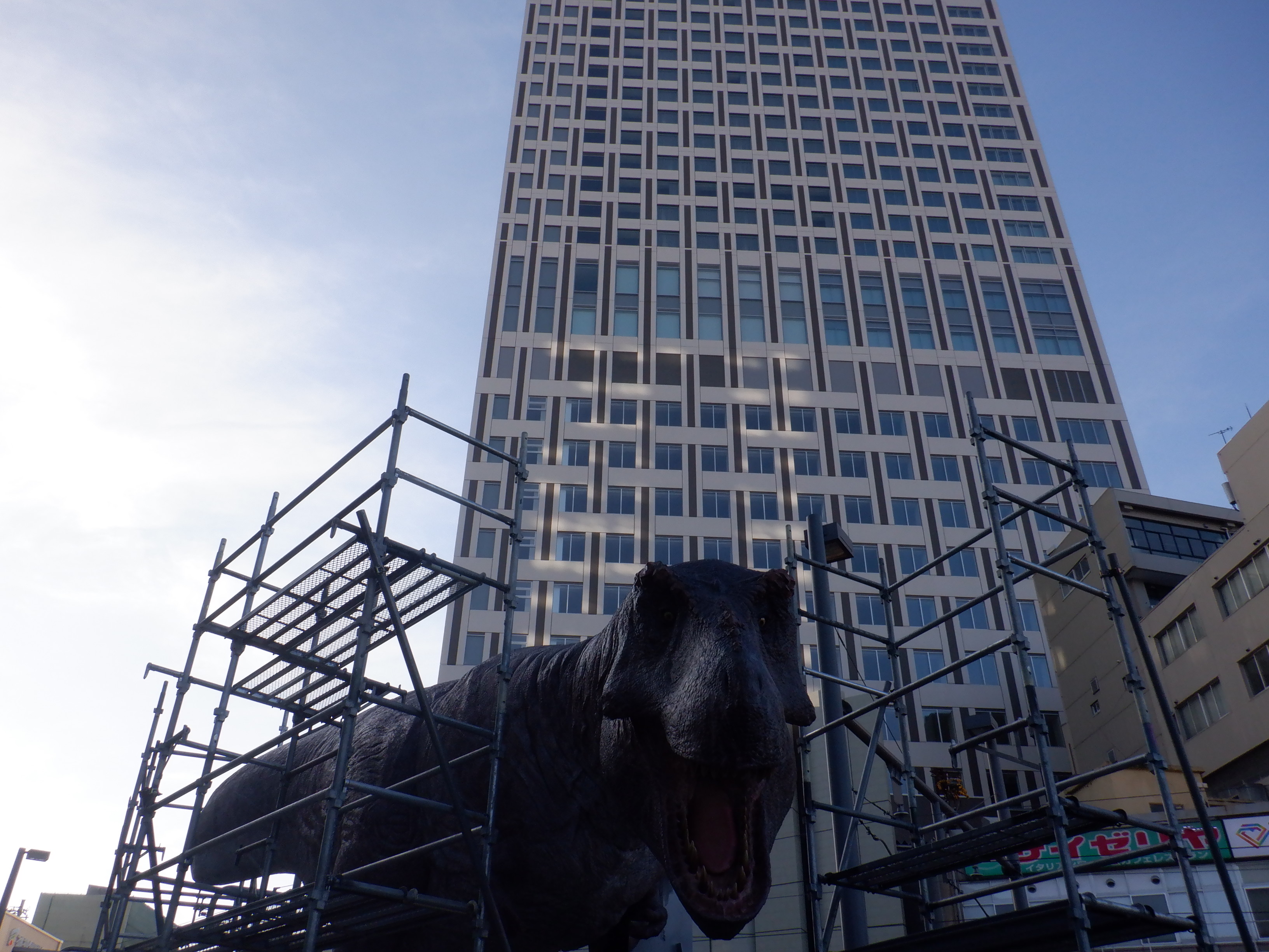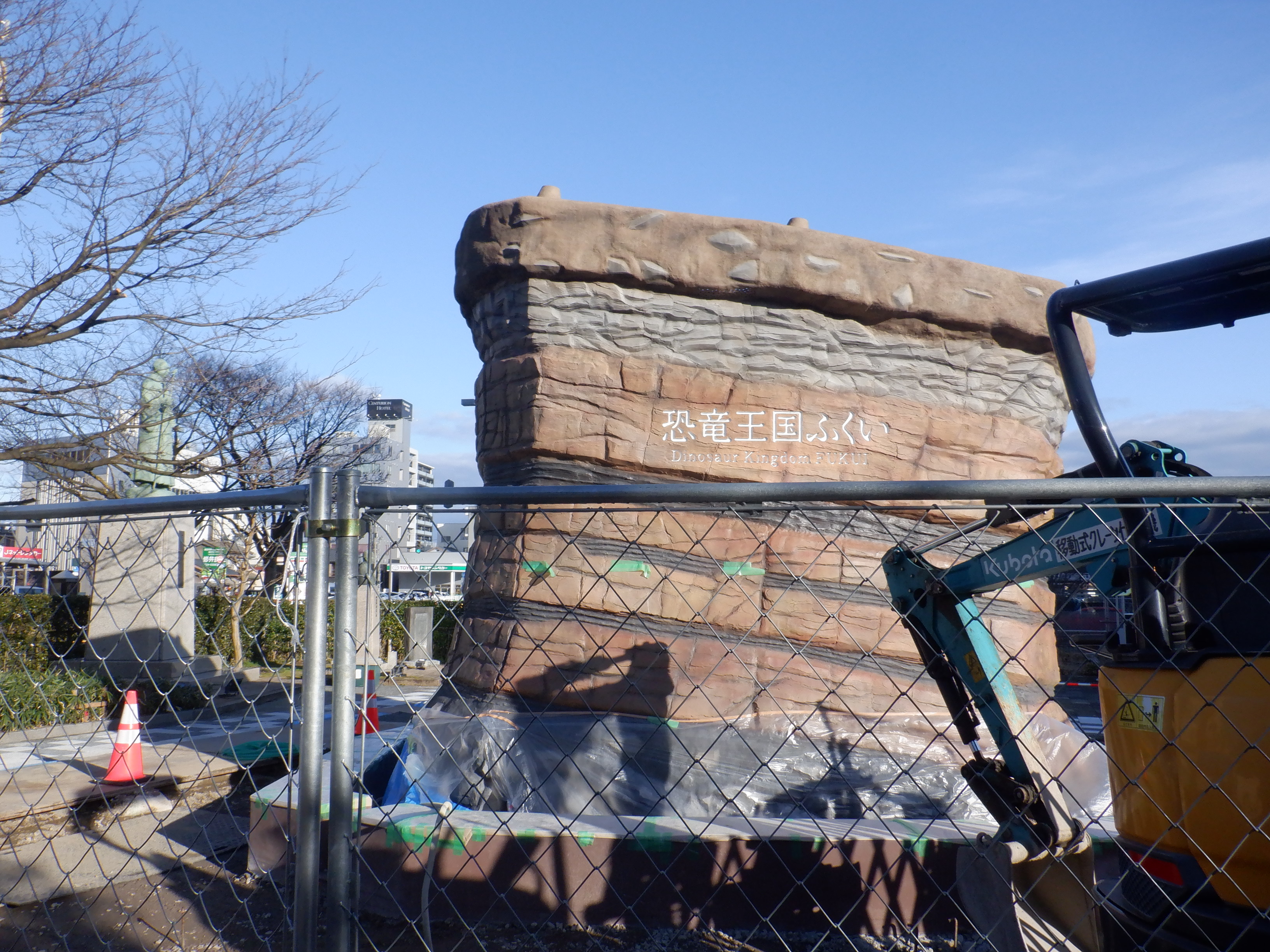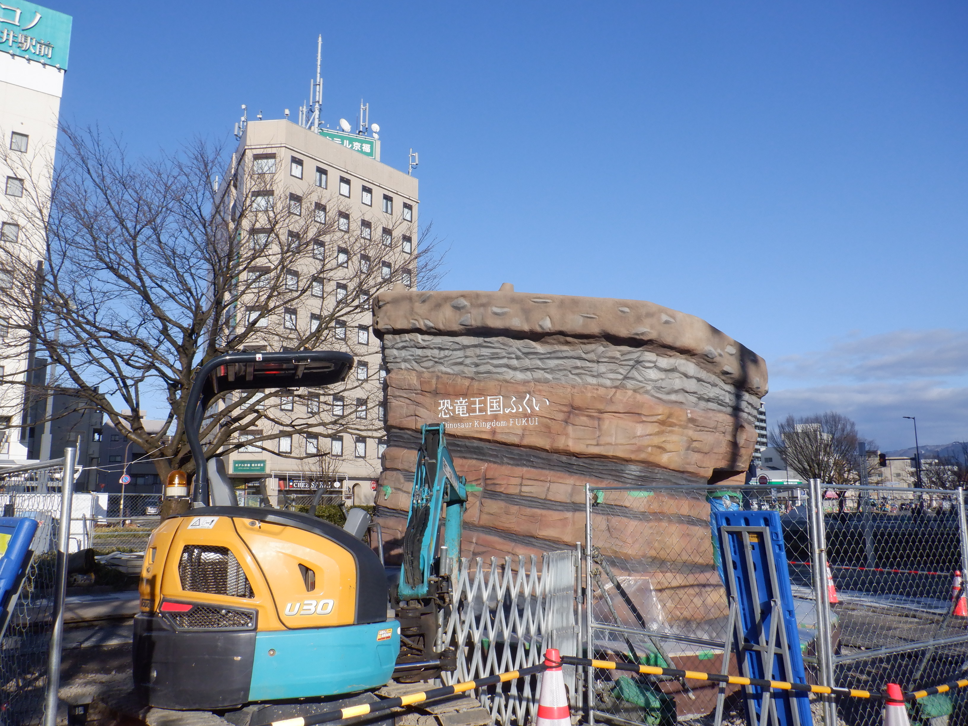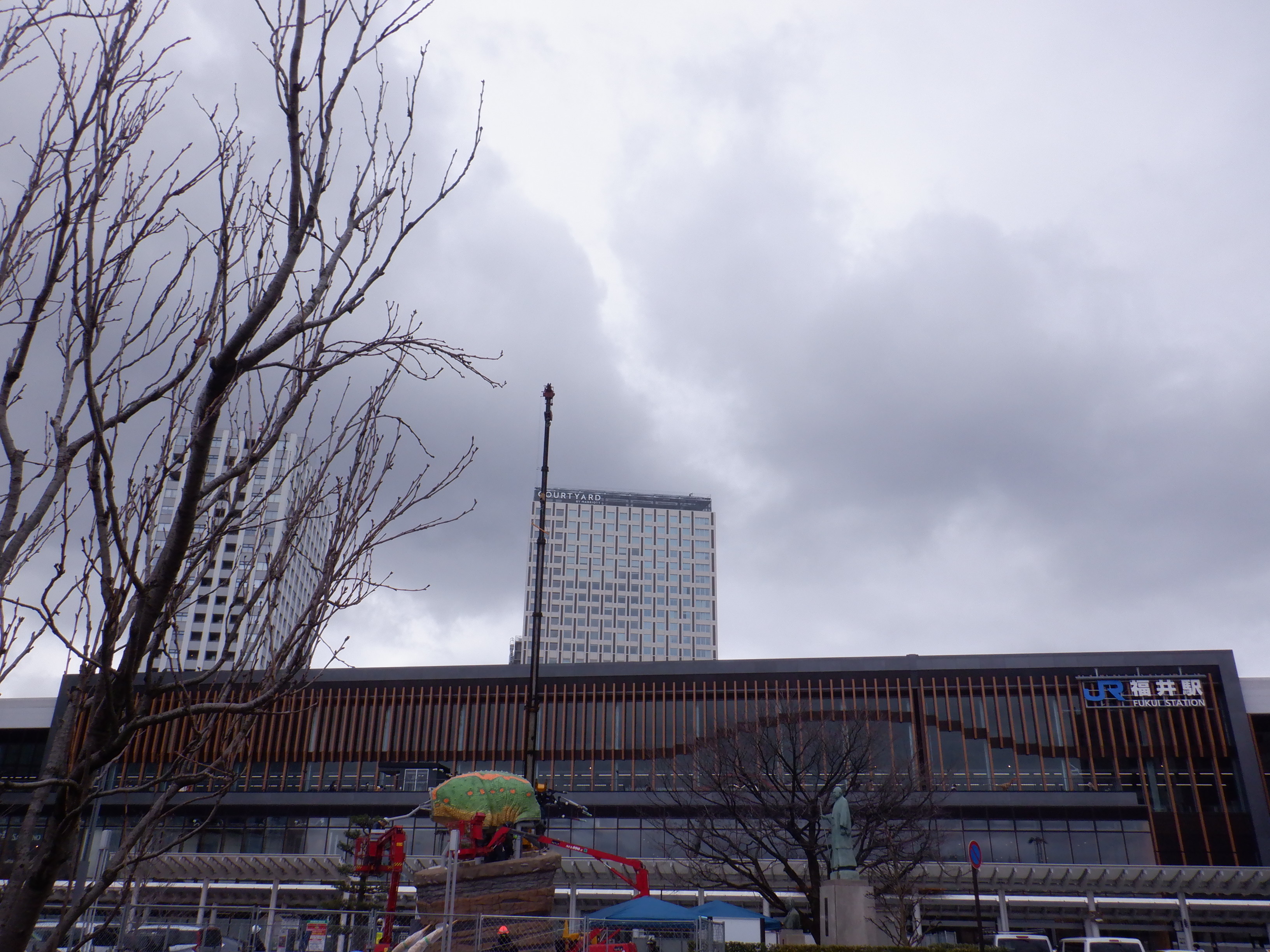 開業約1週間前になりました。東西の恐竜は間に合ったようです。くるふ福井駅も開業準備が進んでいるように見えます。