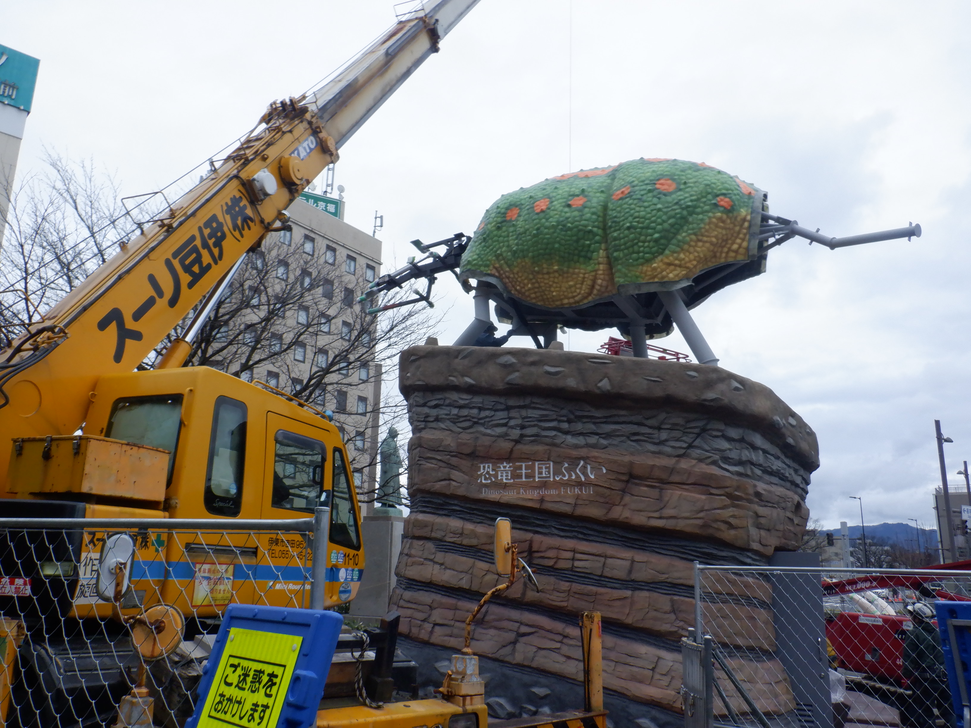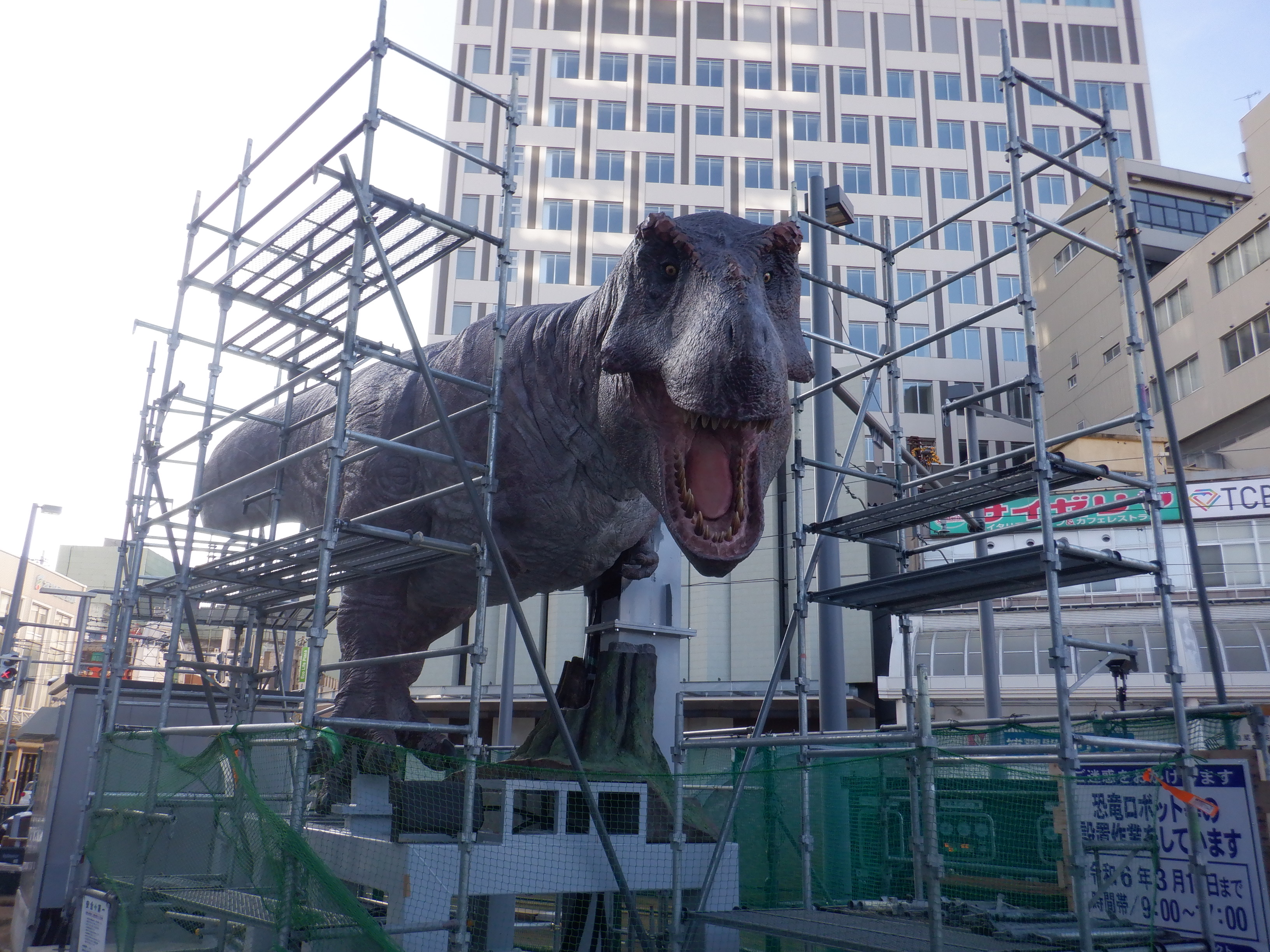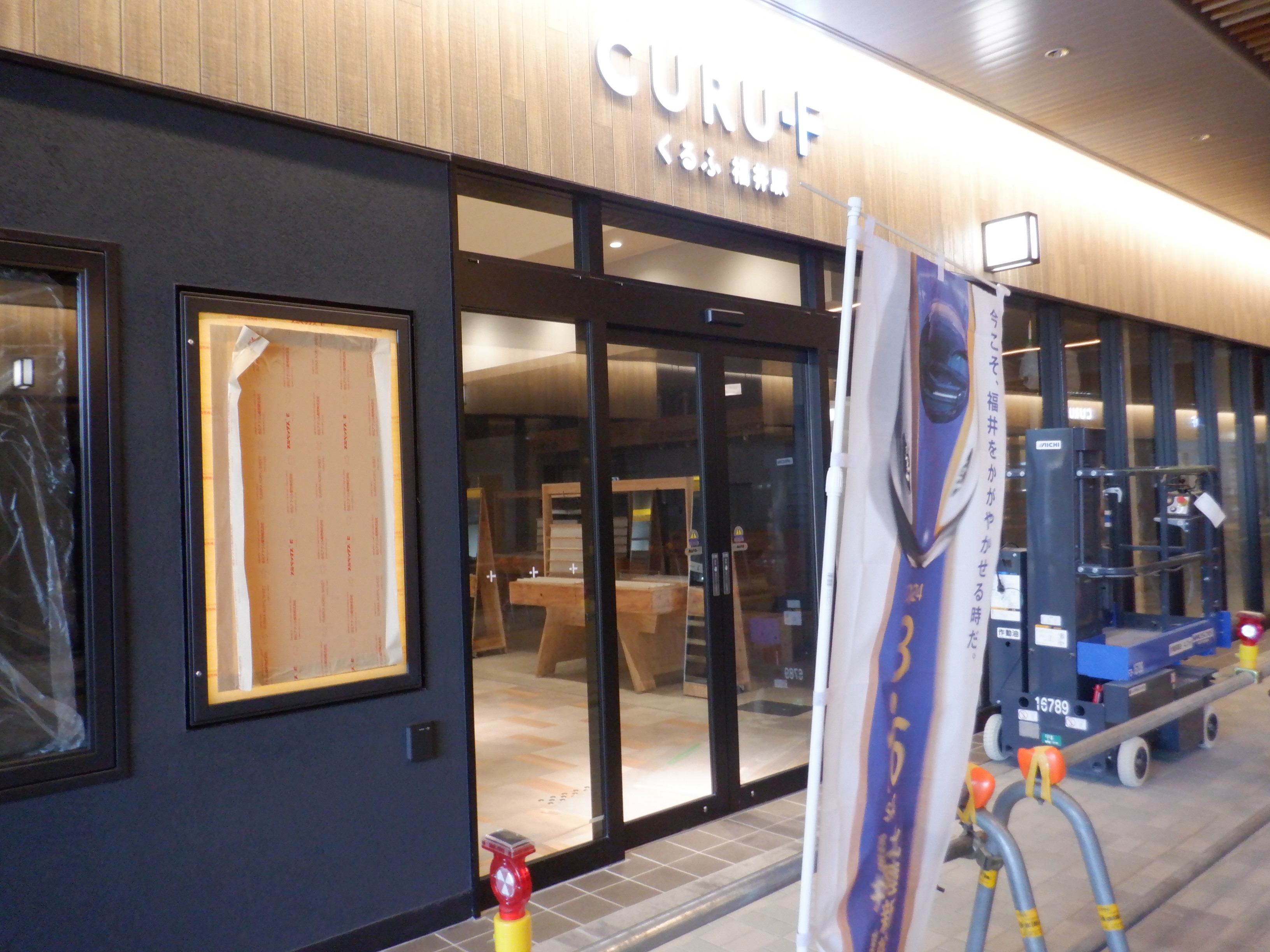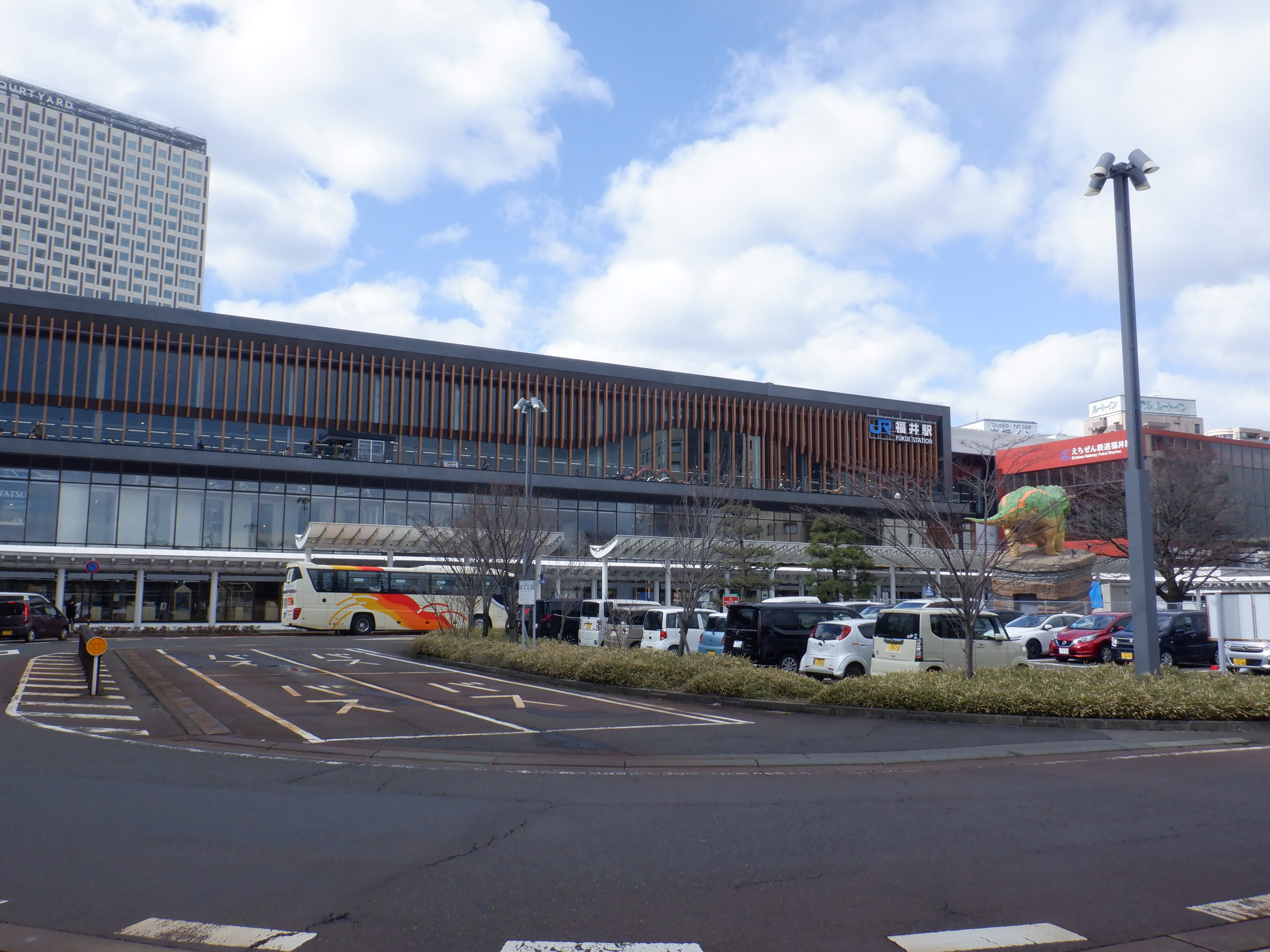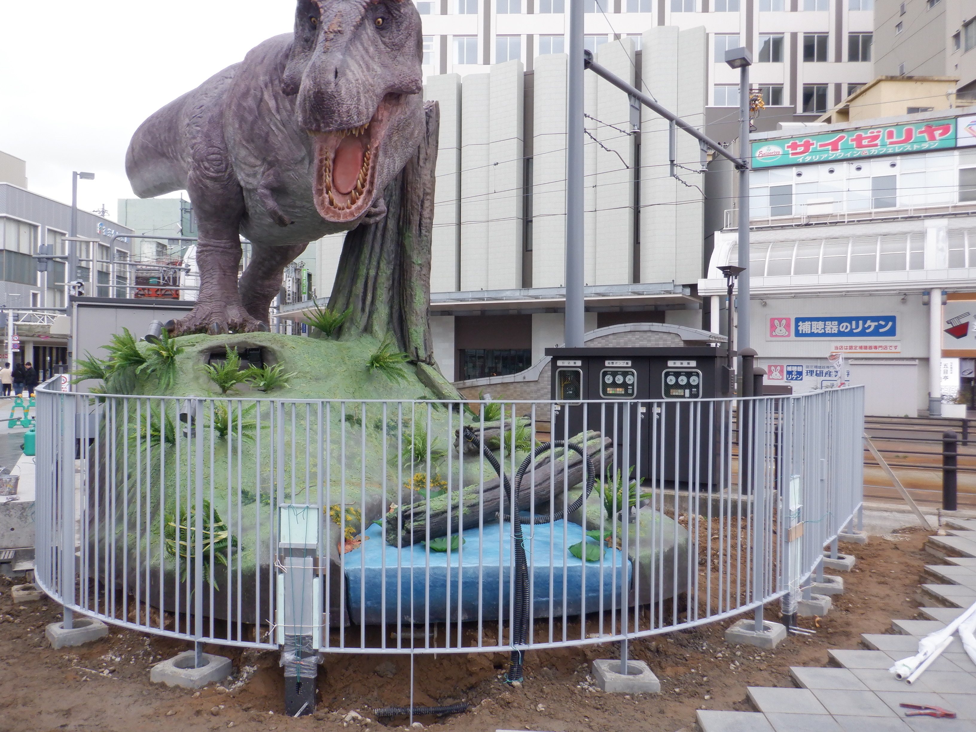 開業約1週間前になりました。東西の恐竜は間に合ったようです。くるふ福井駅も開業準備が進んでいるように見えます。