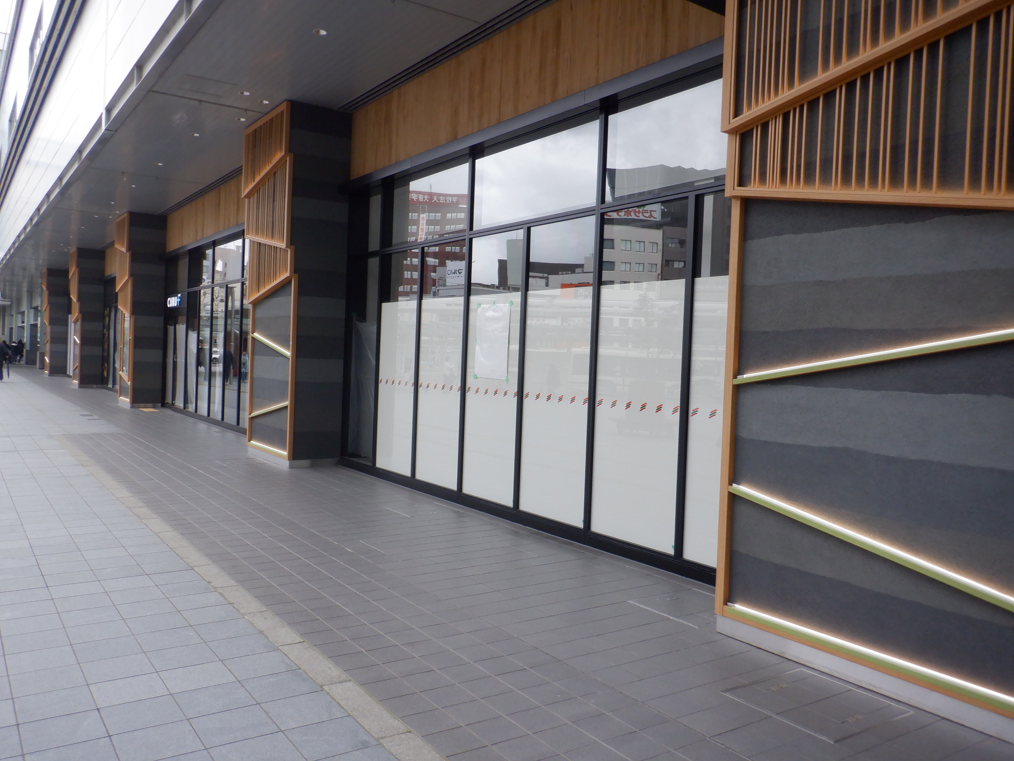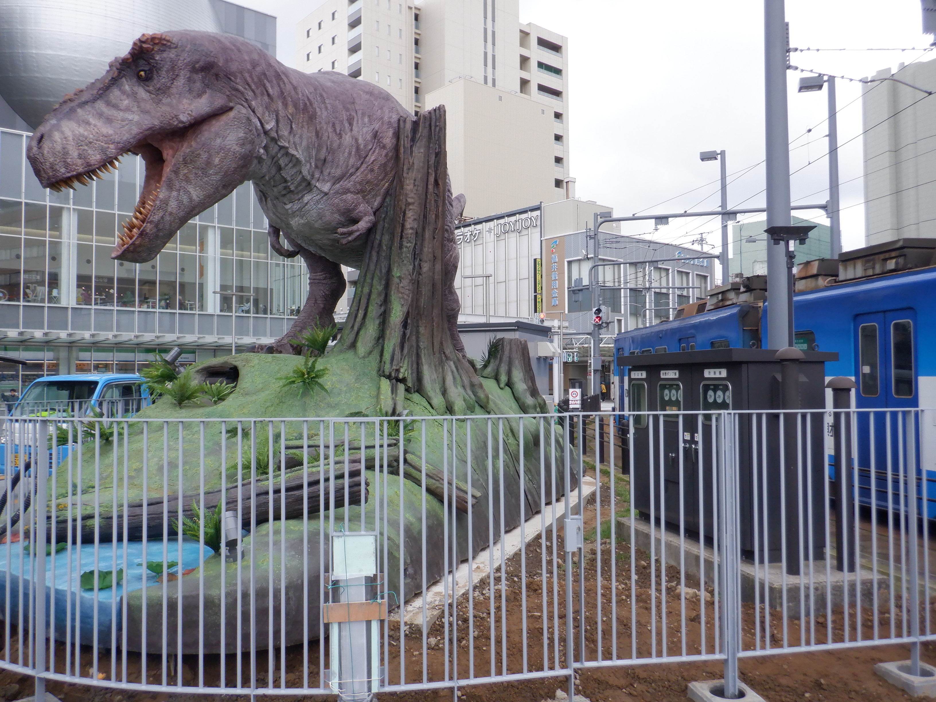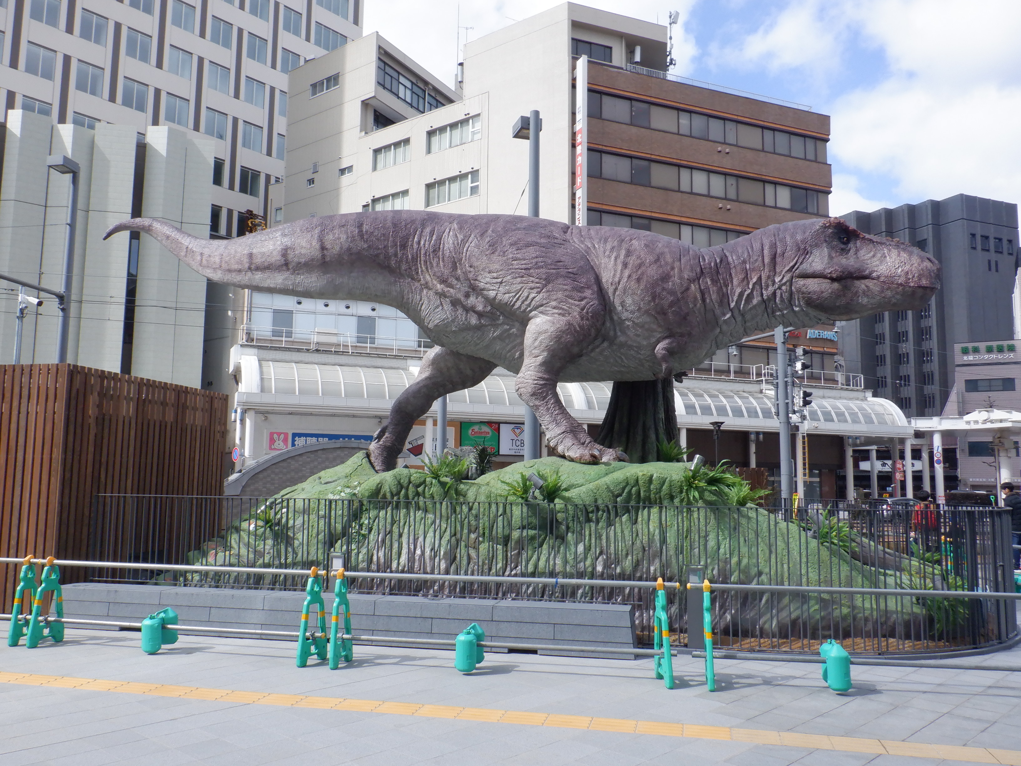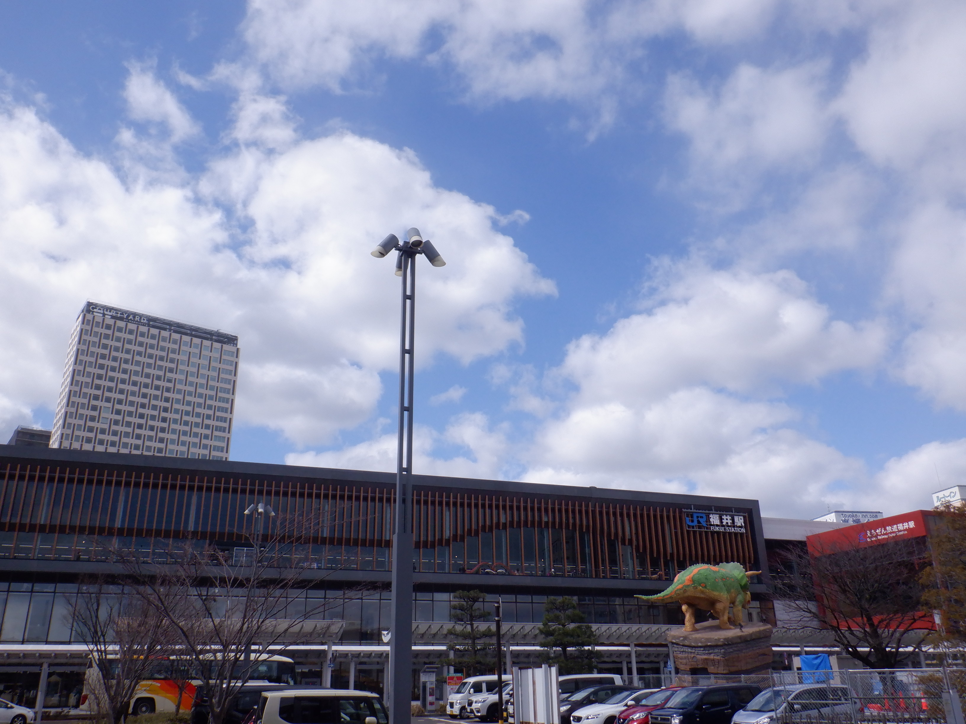 開業約1週間前になりました。東西の恐竜は間に合ったようです。くるふ福井駅も開業準備が進んでいるように見えます。