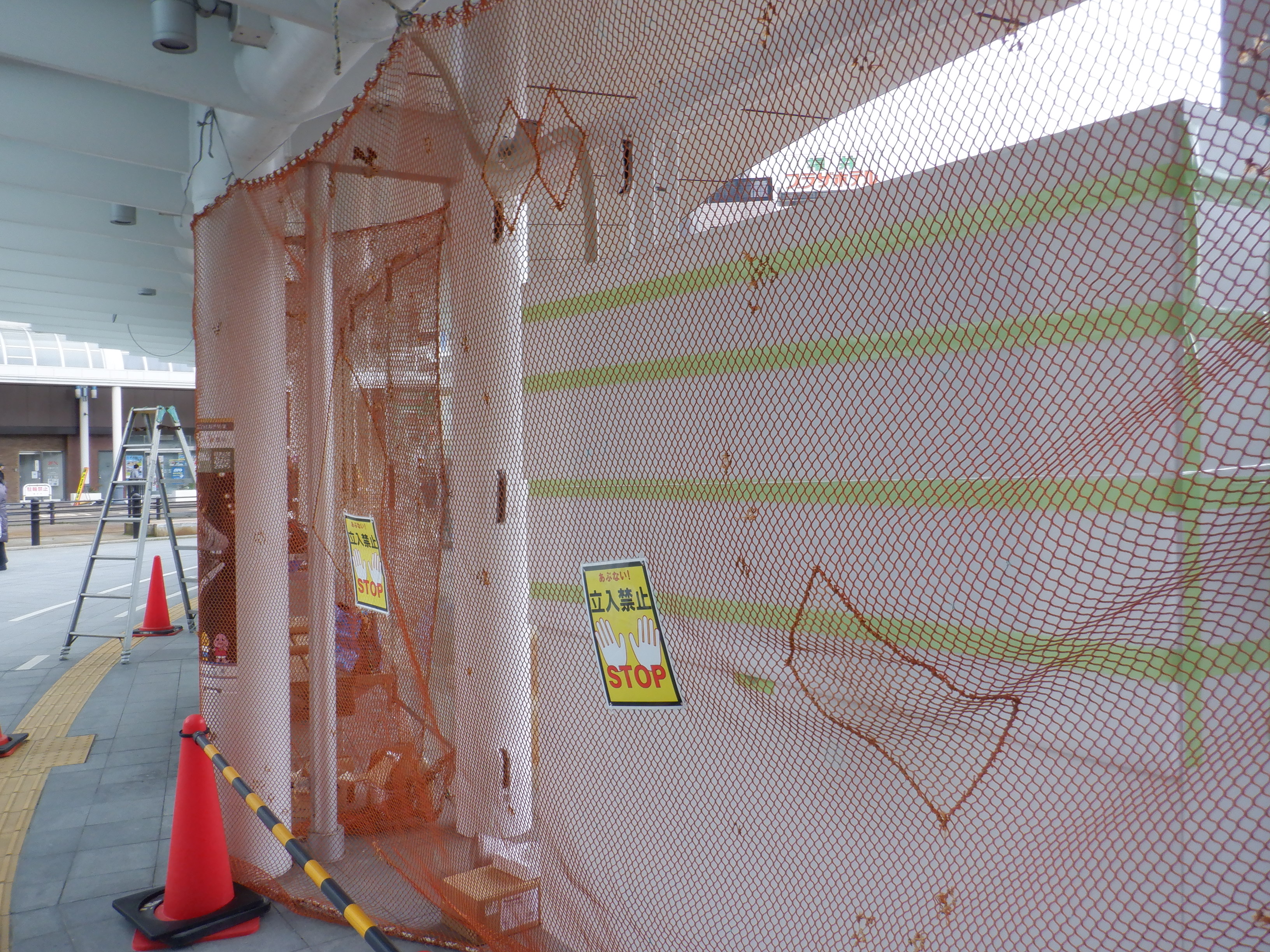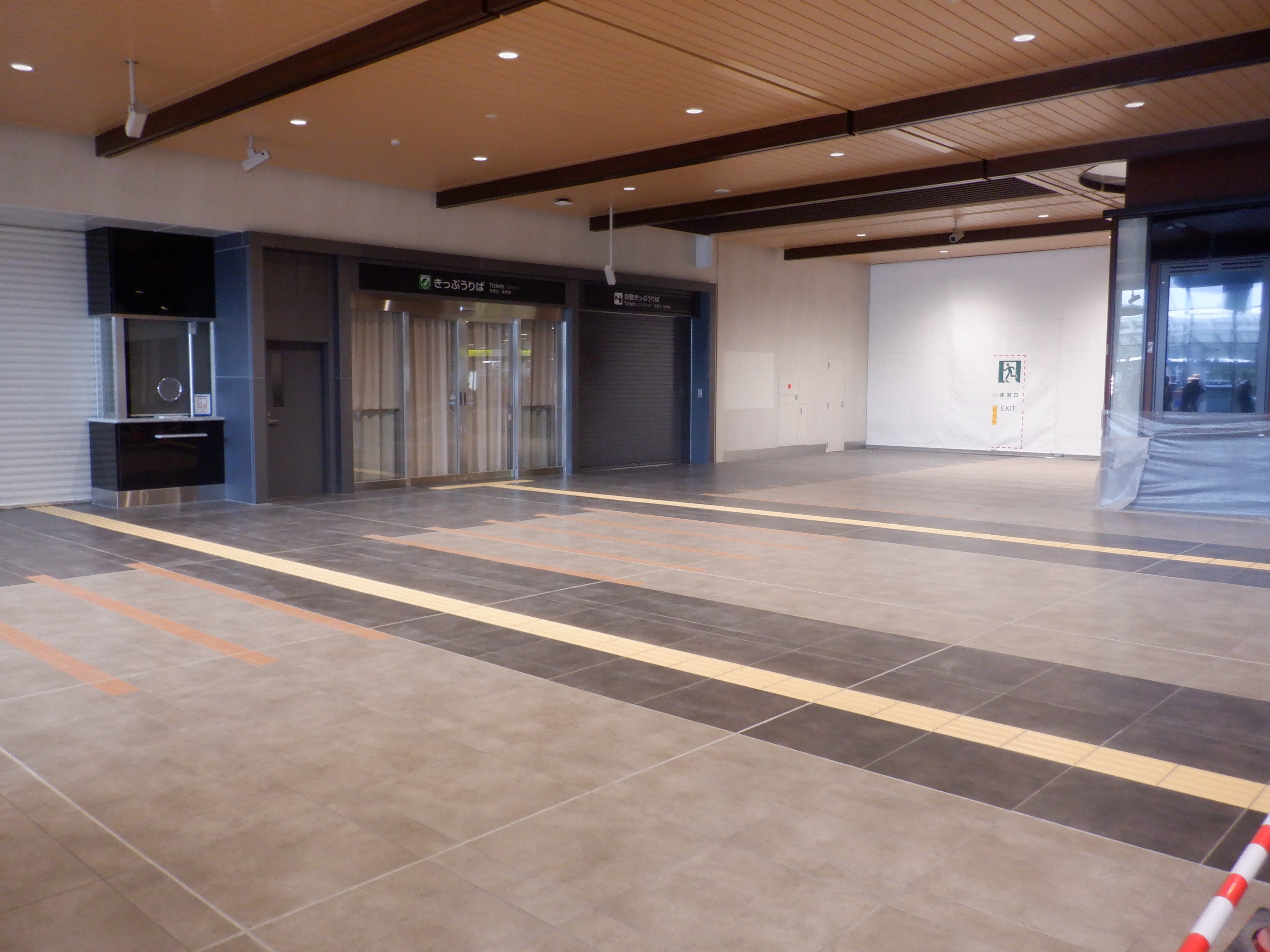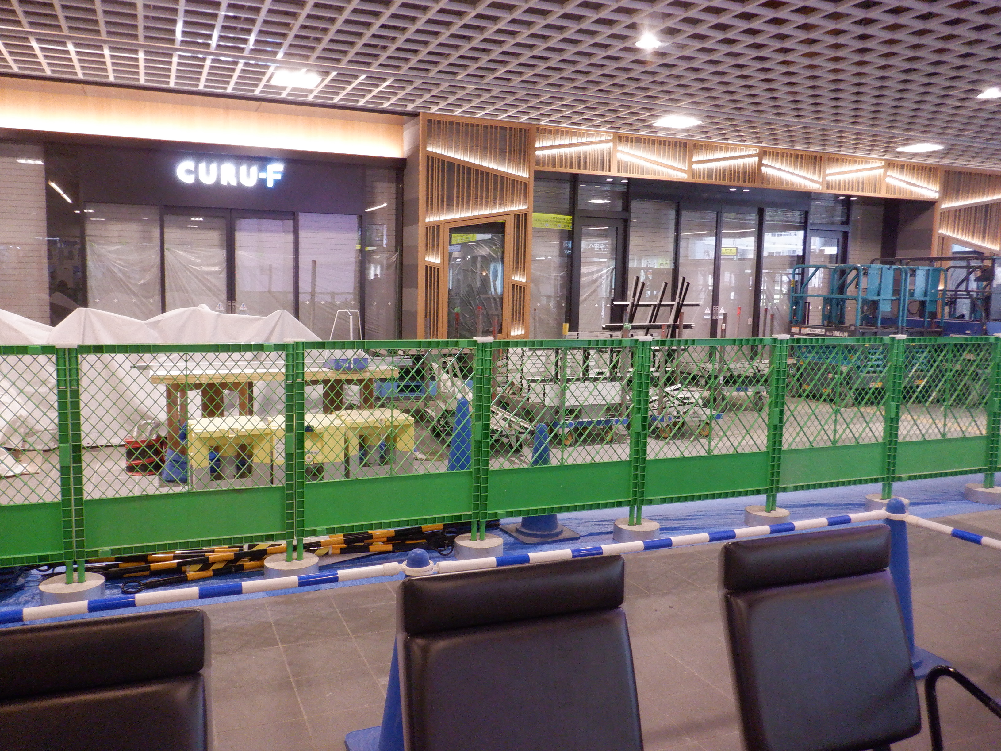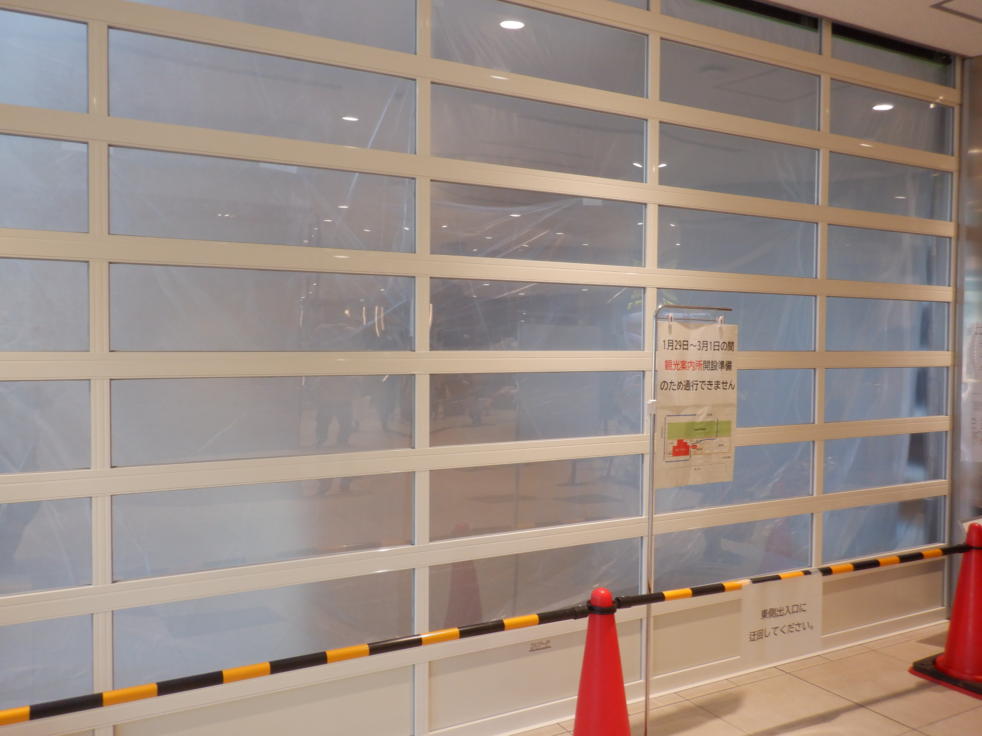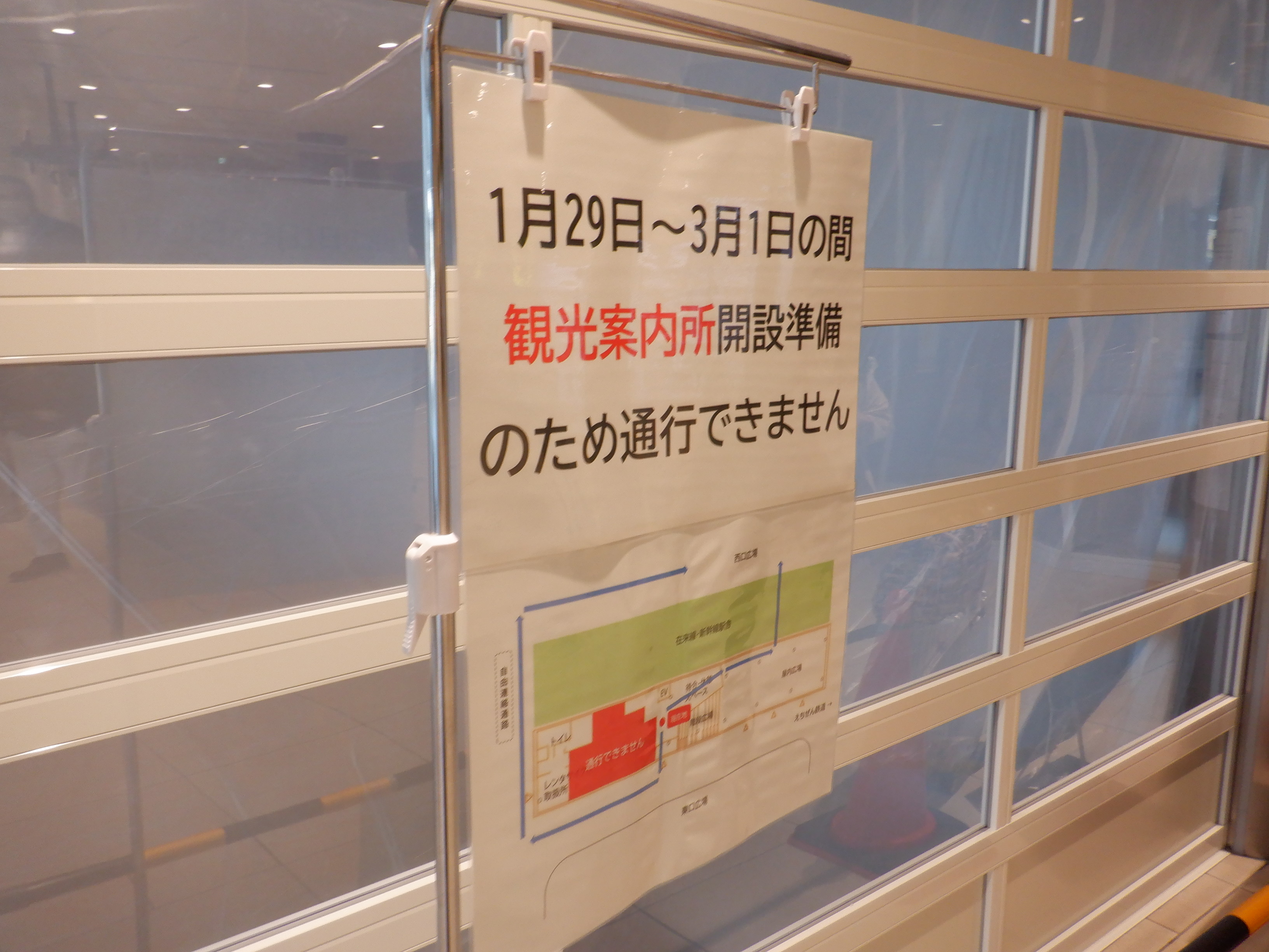 拡張施設内は観光案内所準備で一部通行ができなくなっていました。