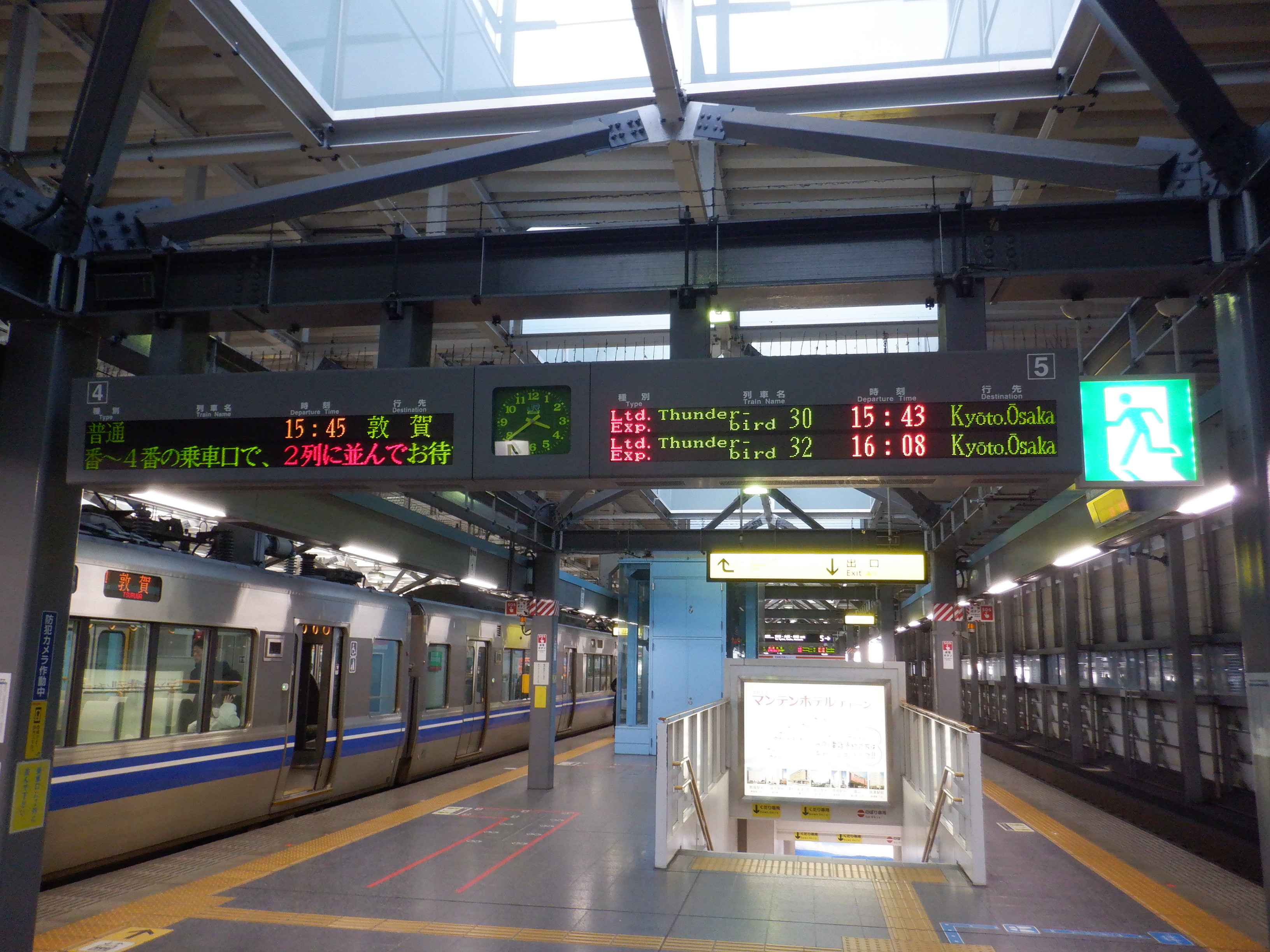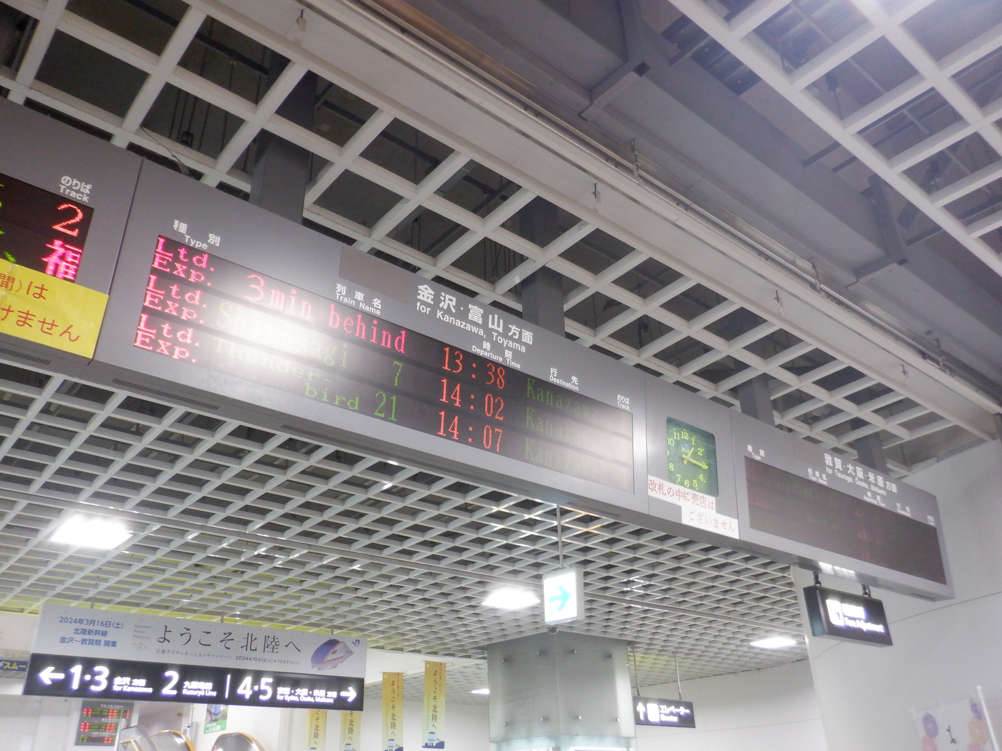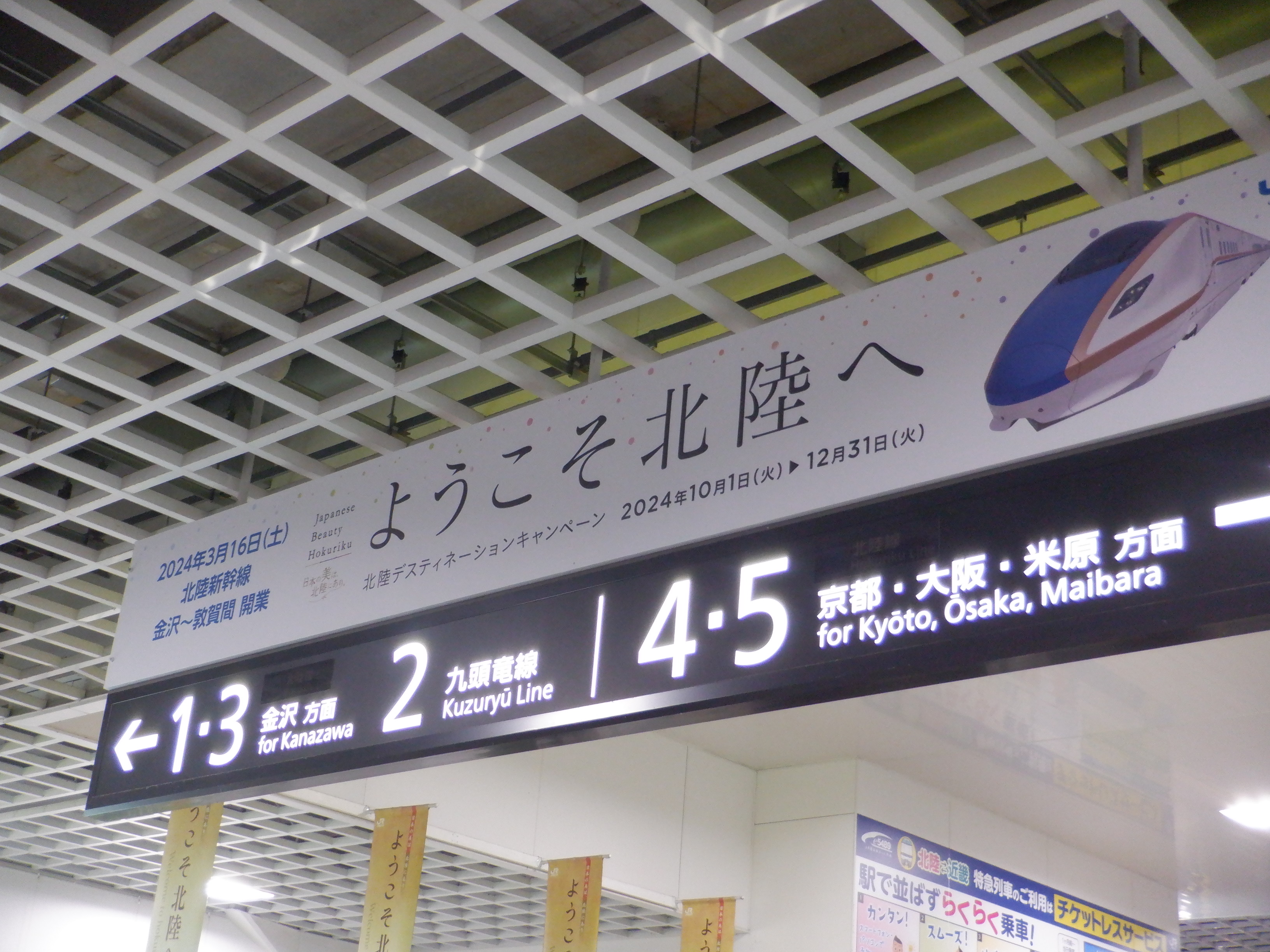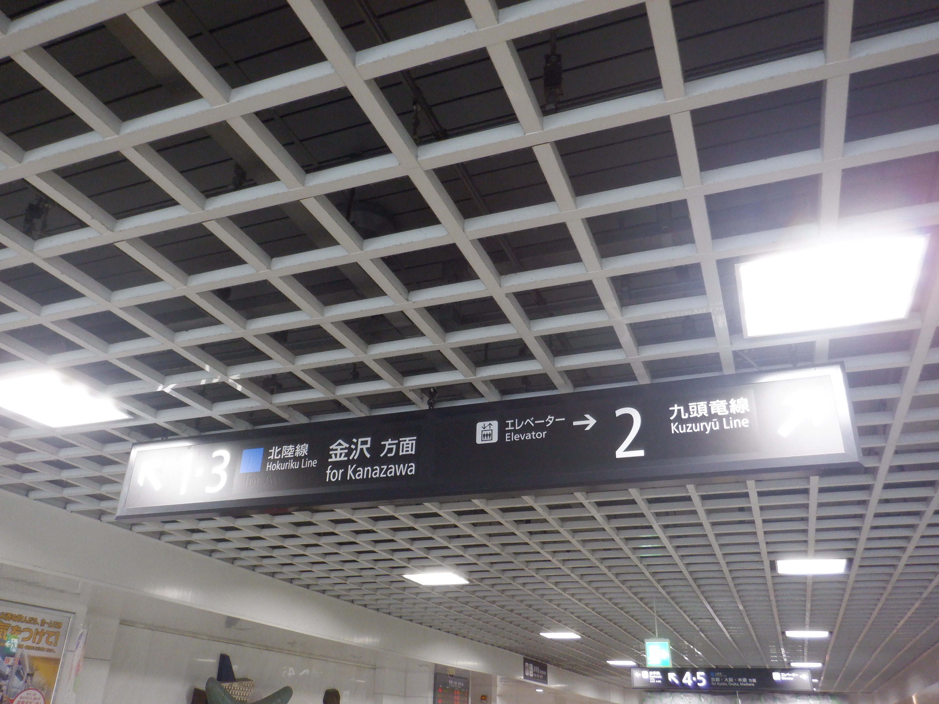 改札口から入ったところの看板も「北陸線」の文字が消されています。