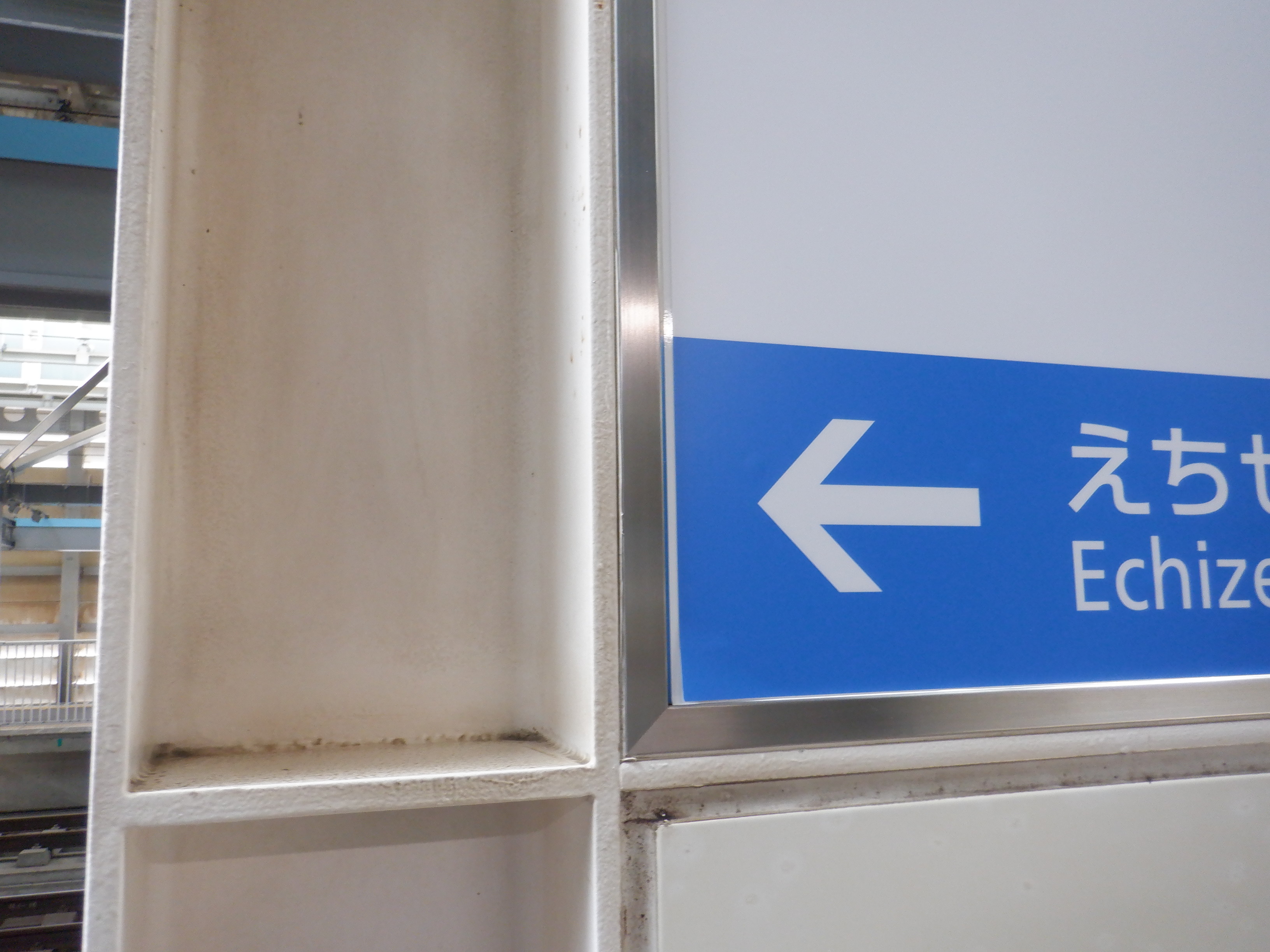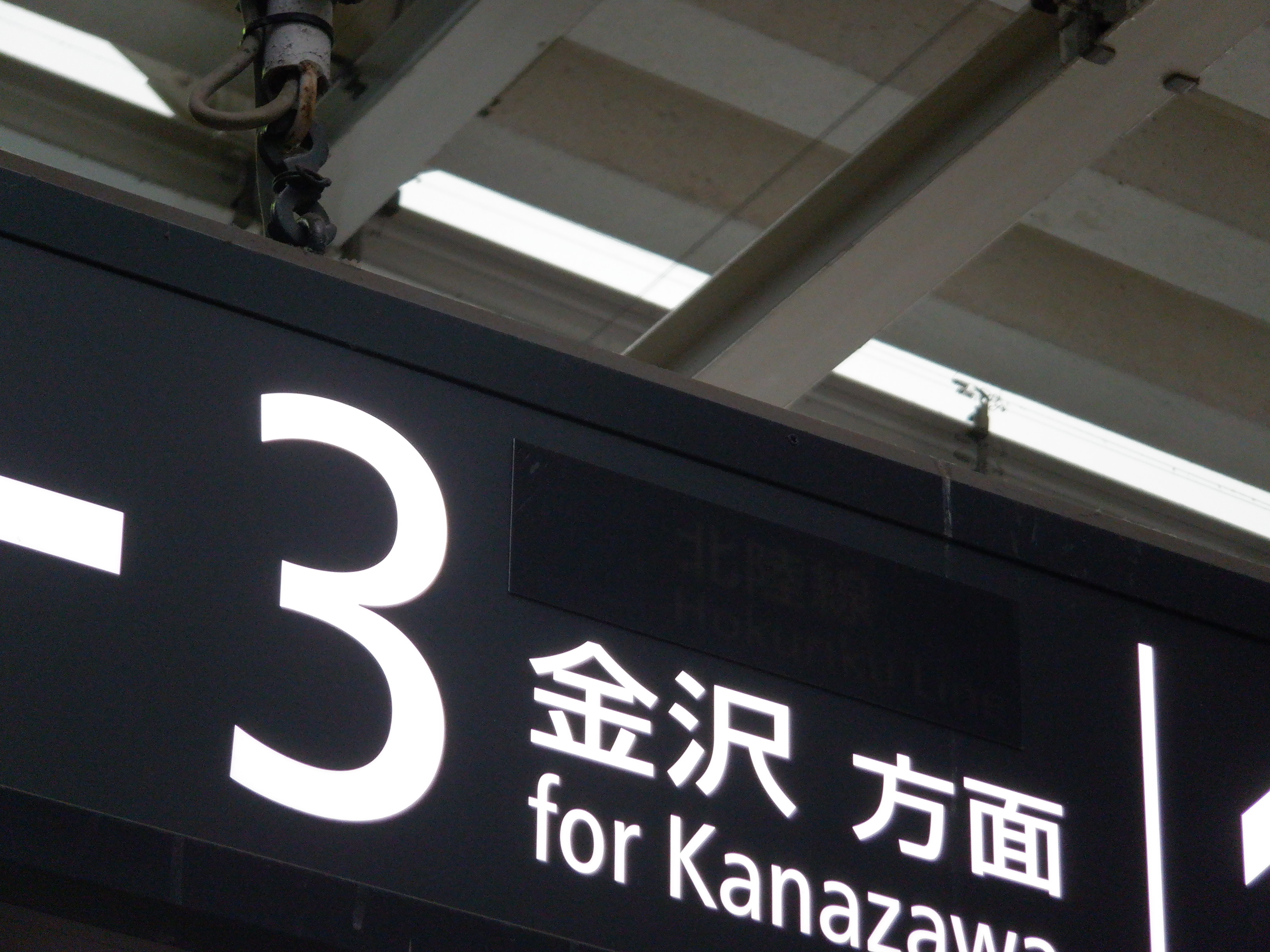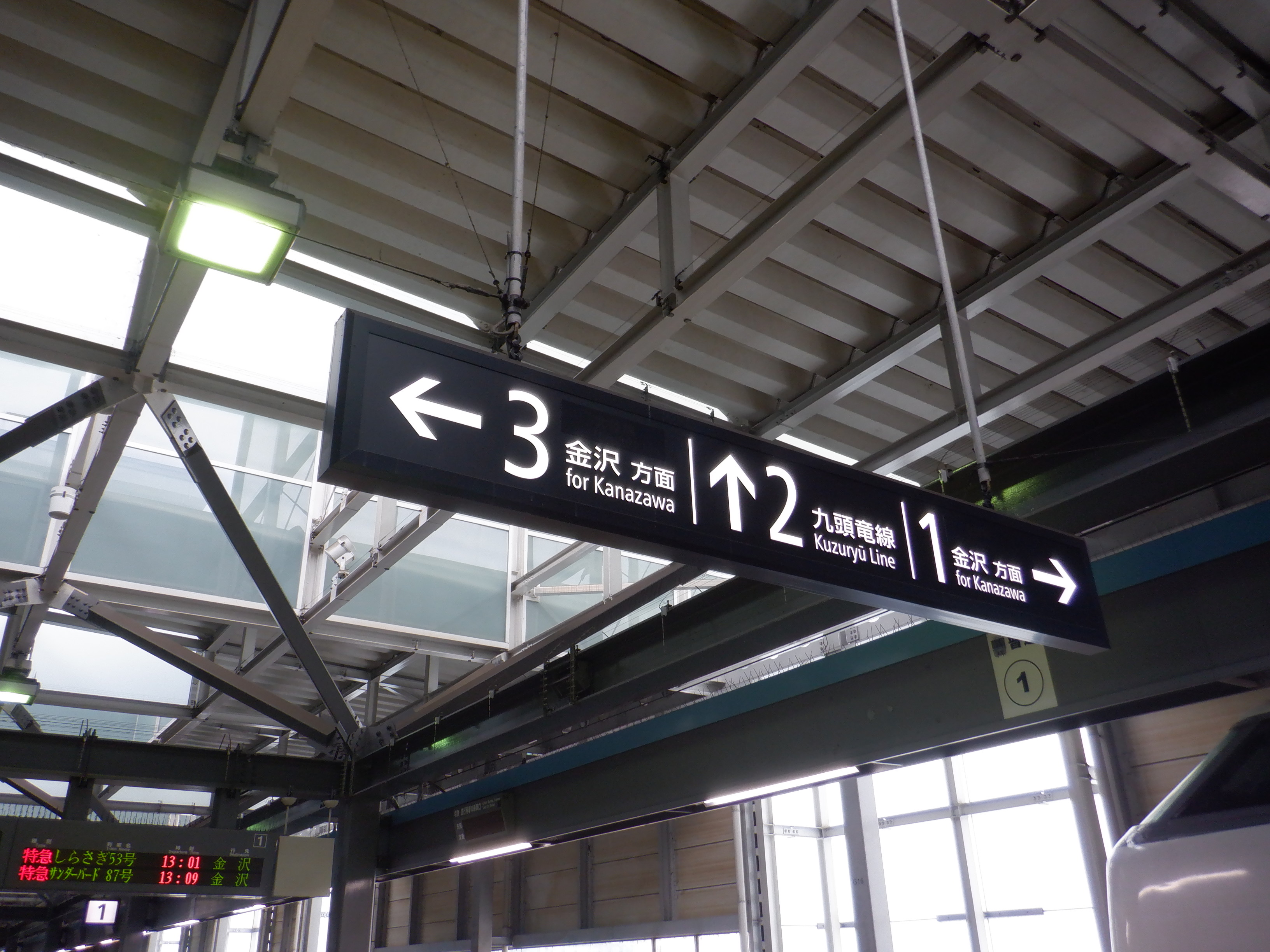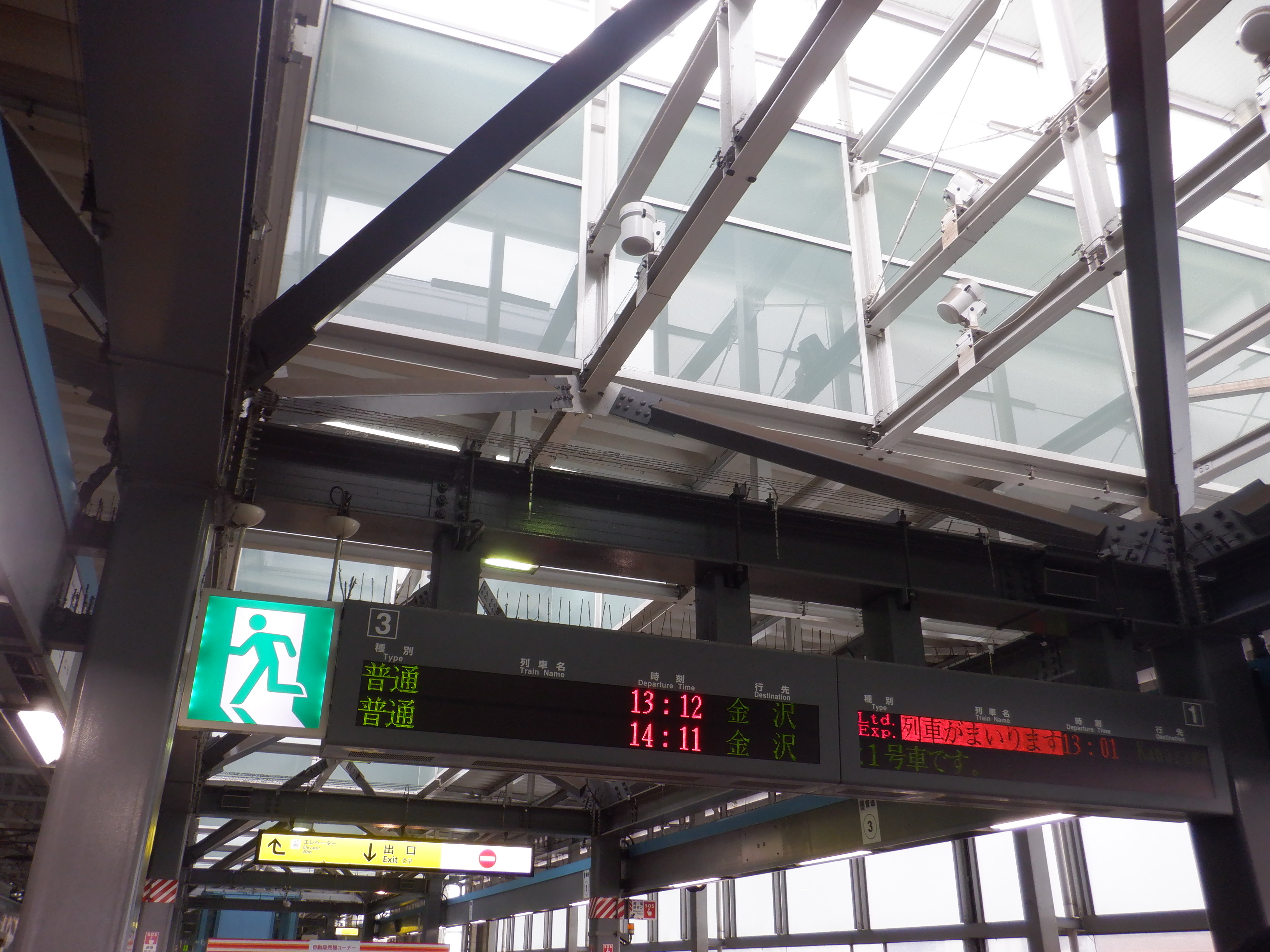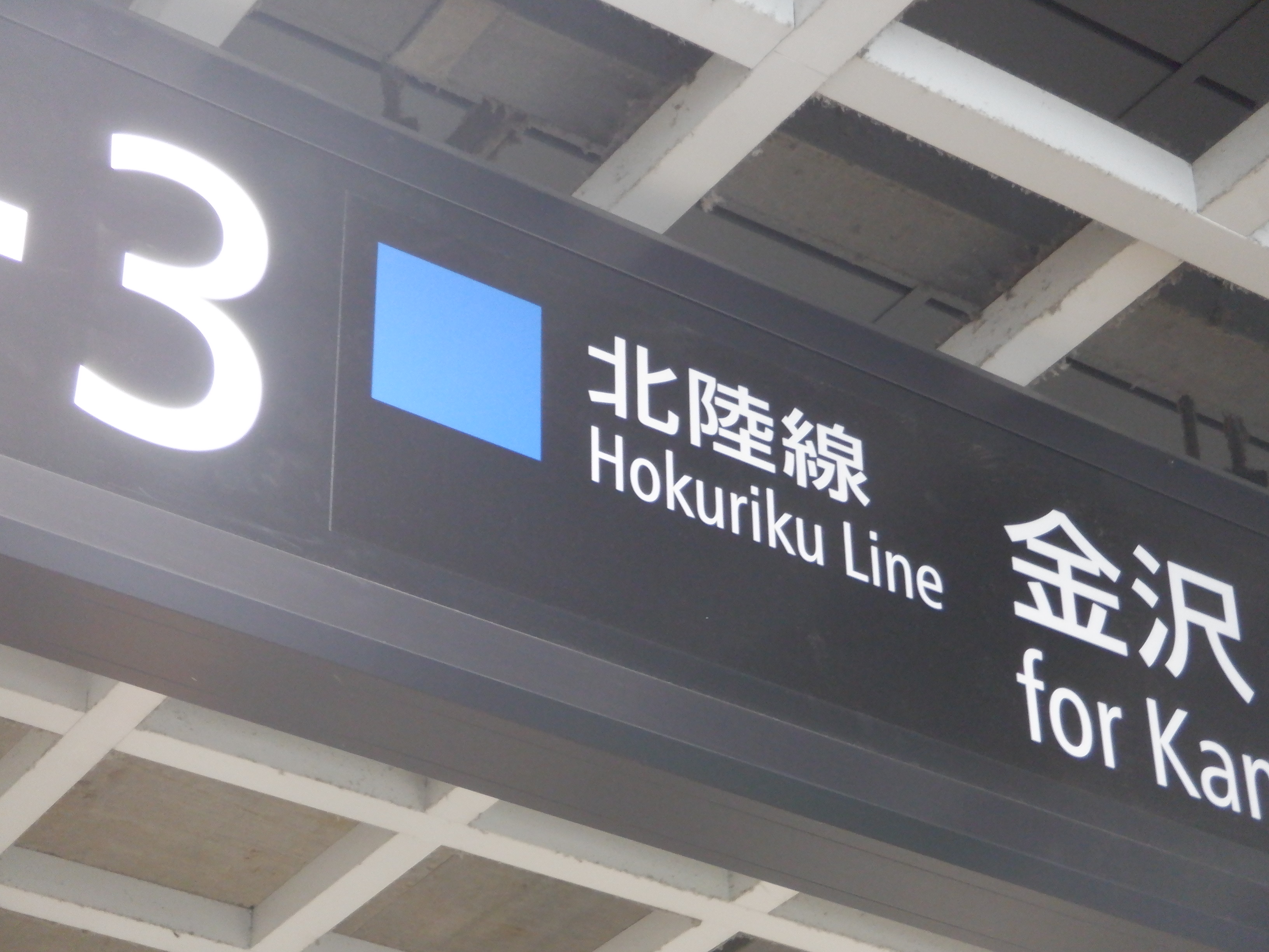 1・3番のりばの方面番線標。「北陸線」の文字が消されています。