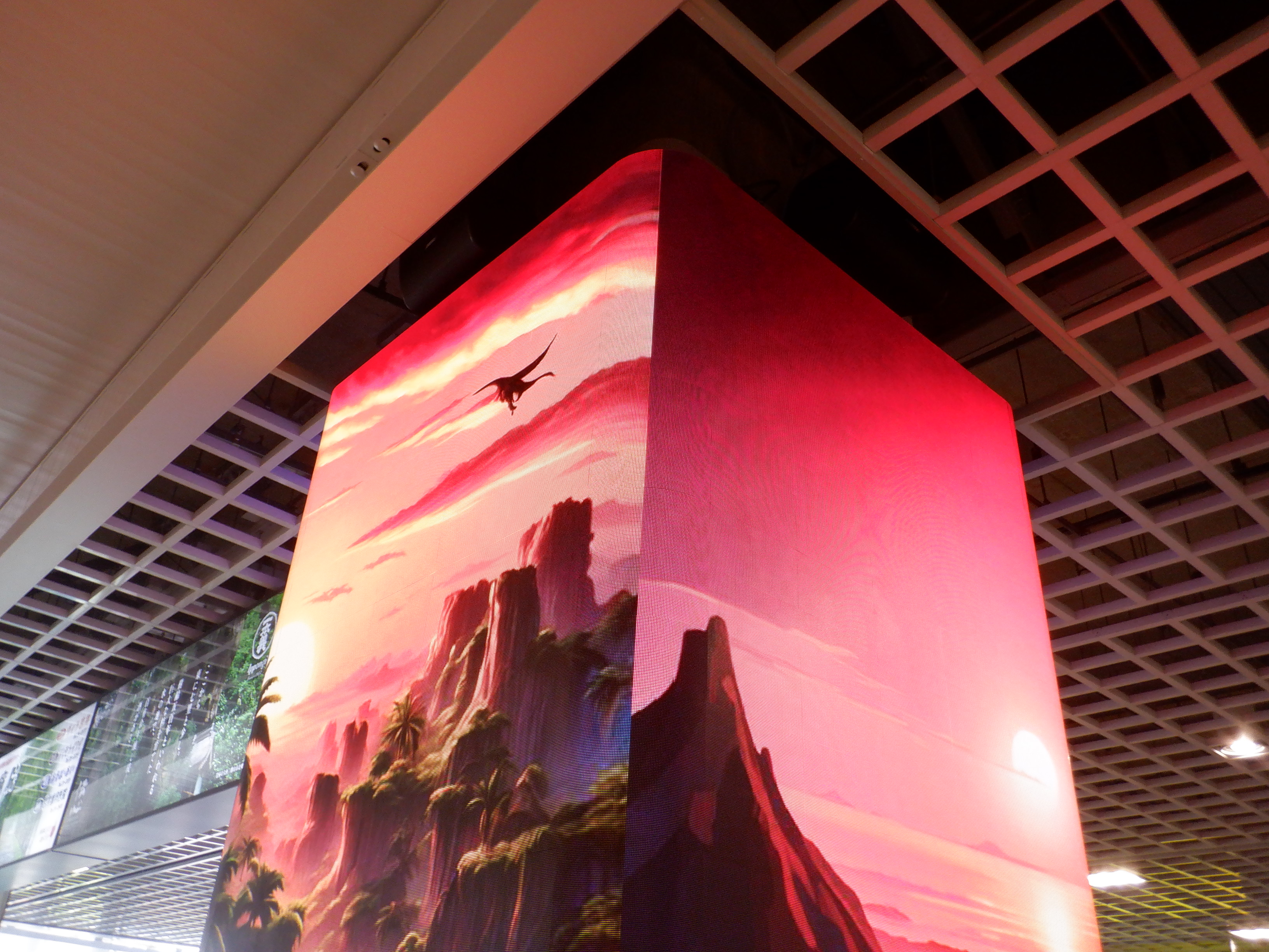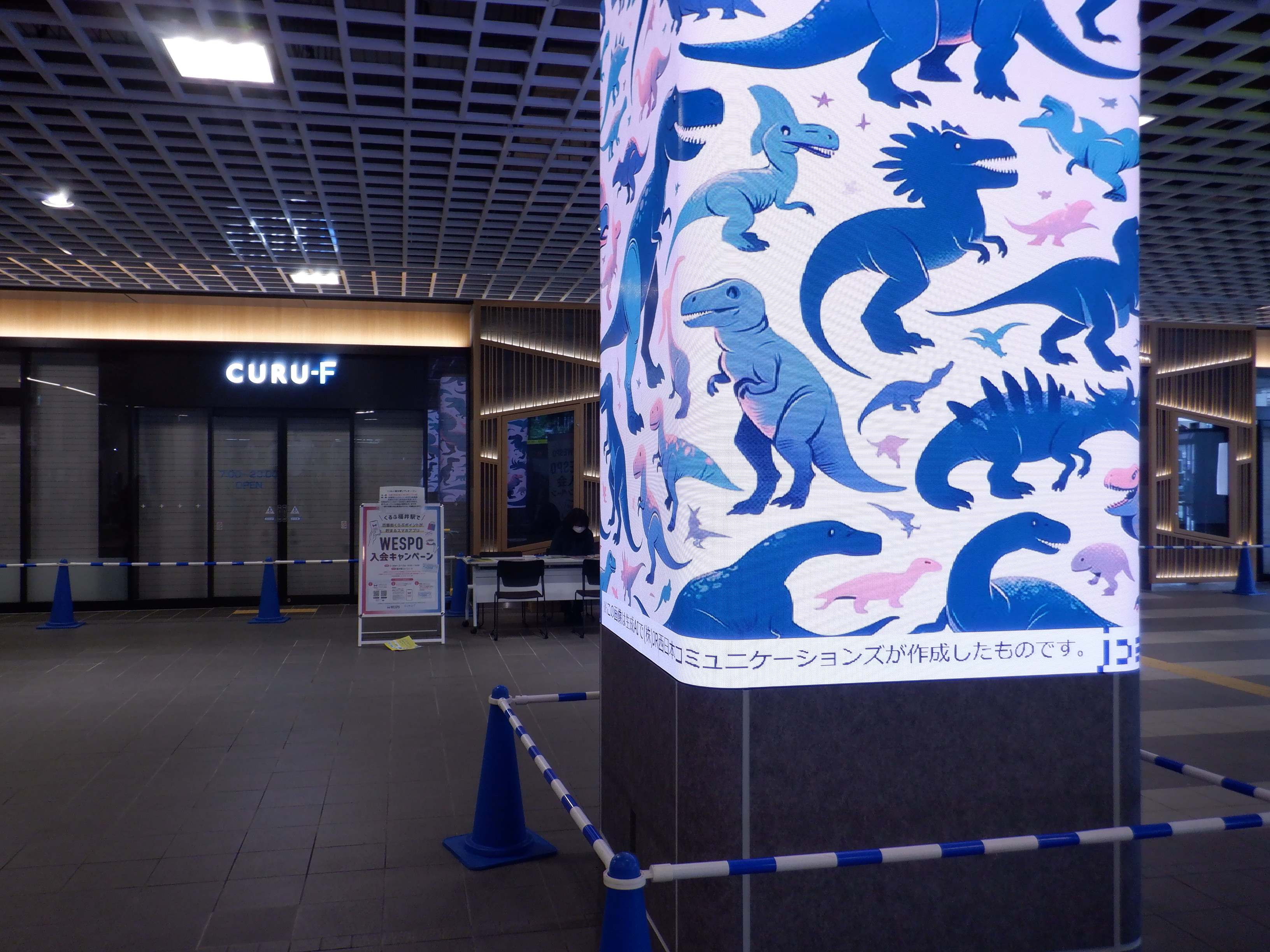 コンコースの大型柱巻LEDビジョンが稼働していました。