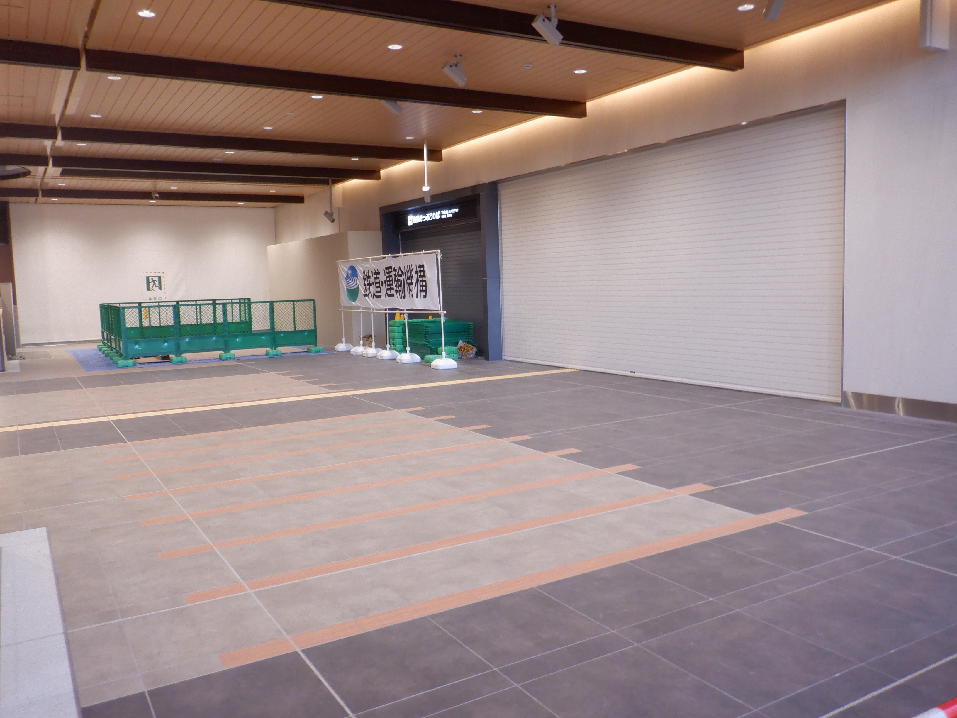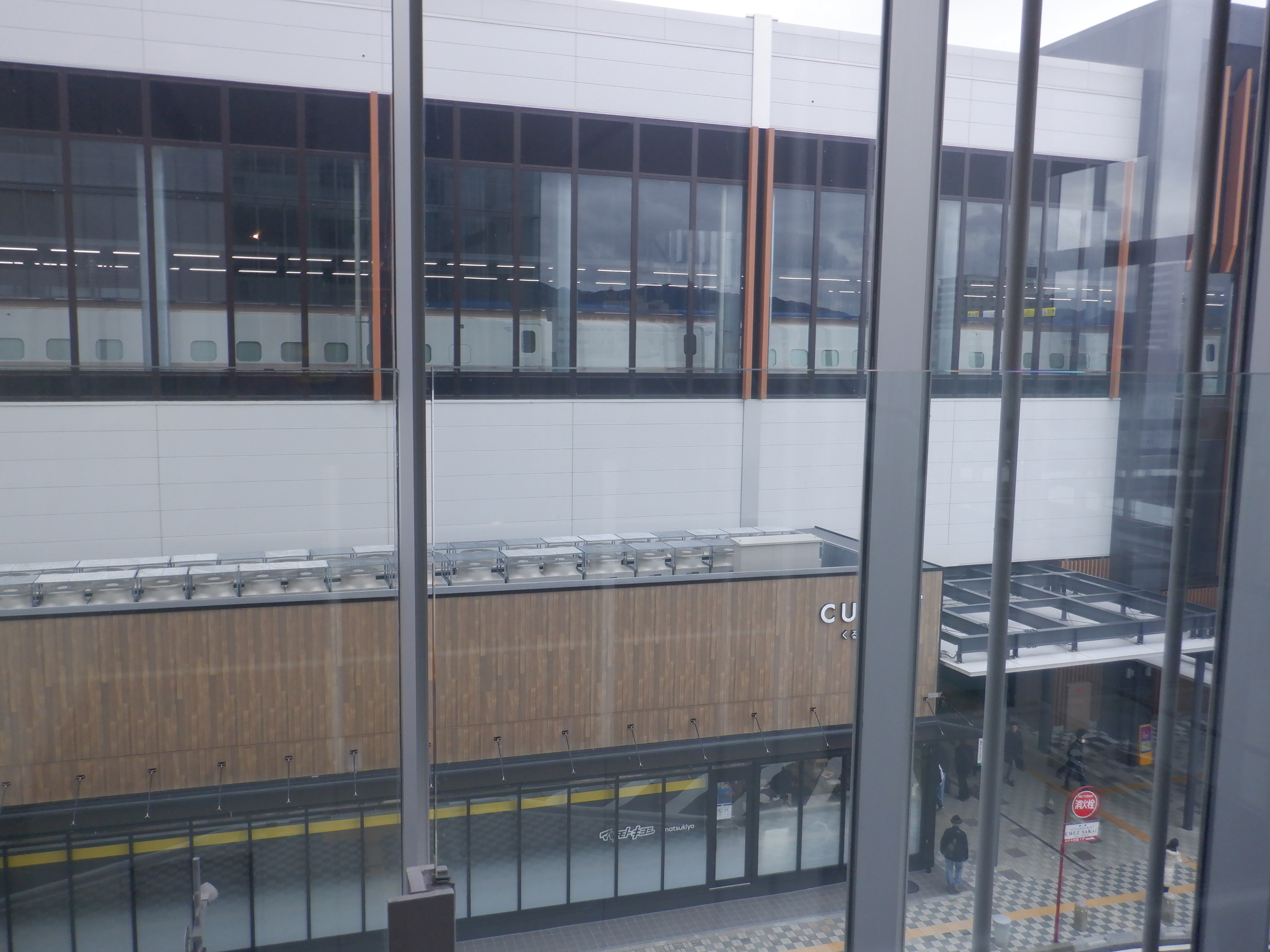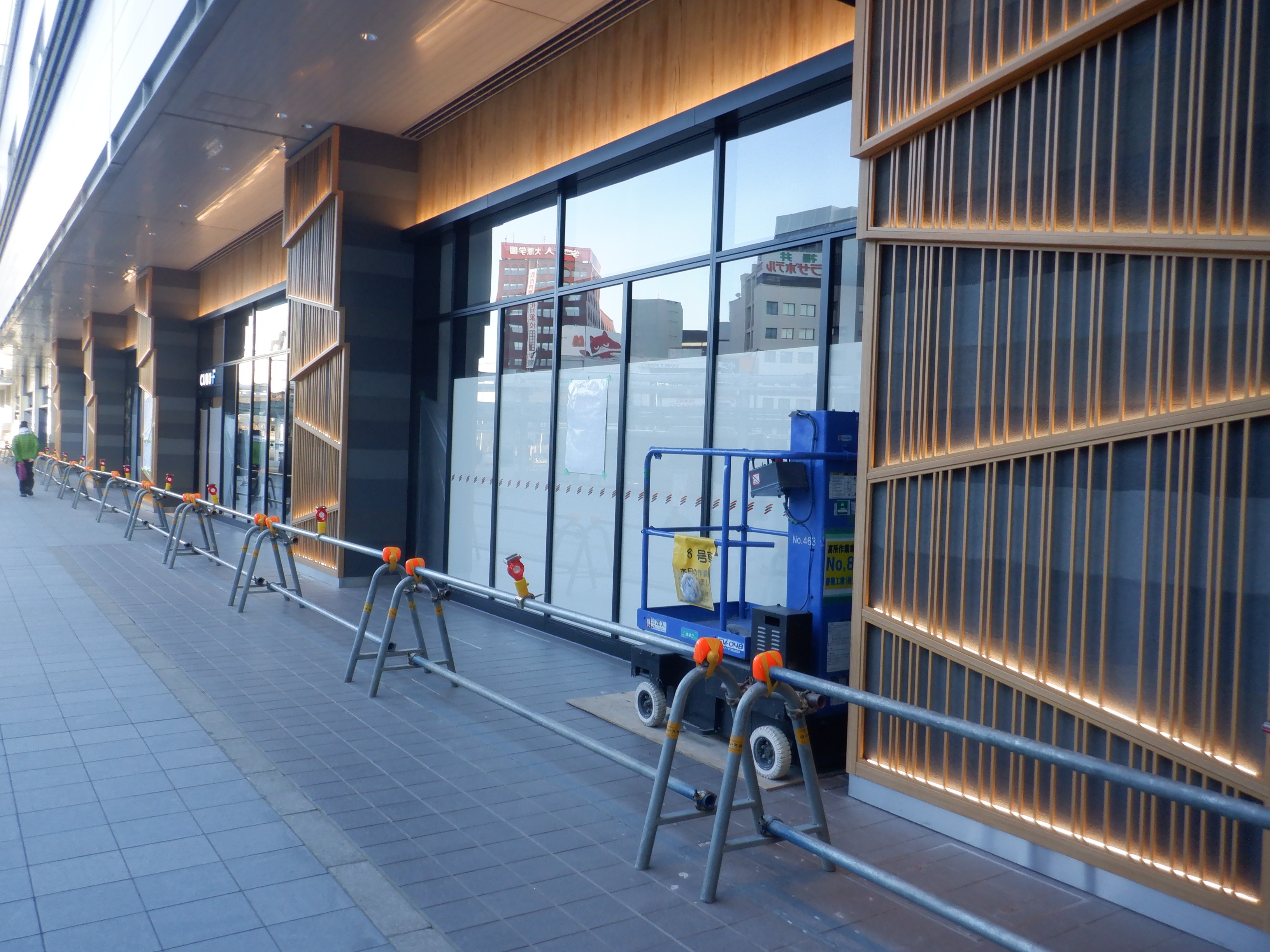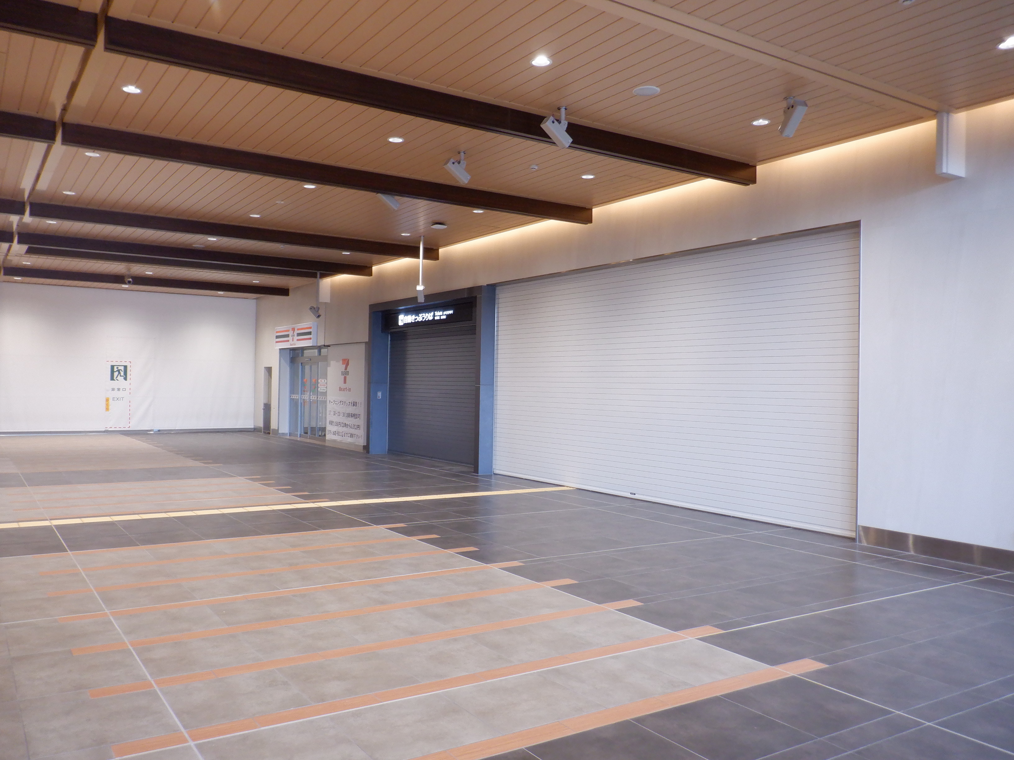 新幹線コンコースとなるところ。コンビニの看板ができていました。