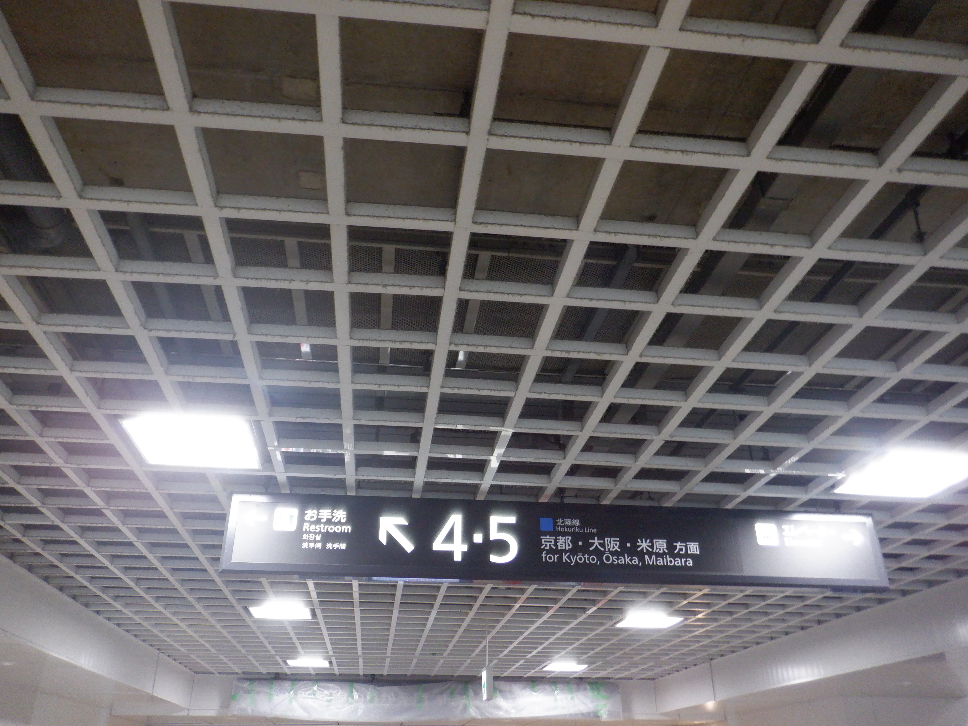 4・5番のりばの方面番線標も「北陸線」の文字が消されています。