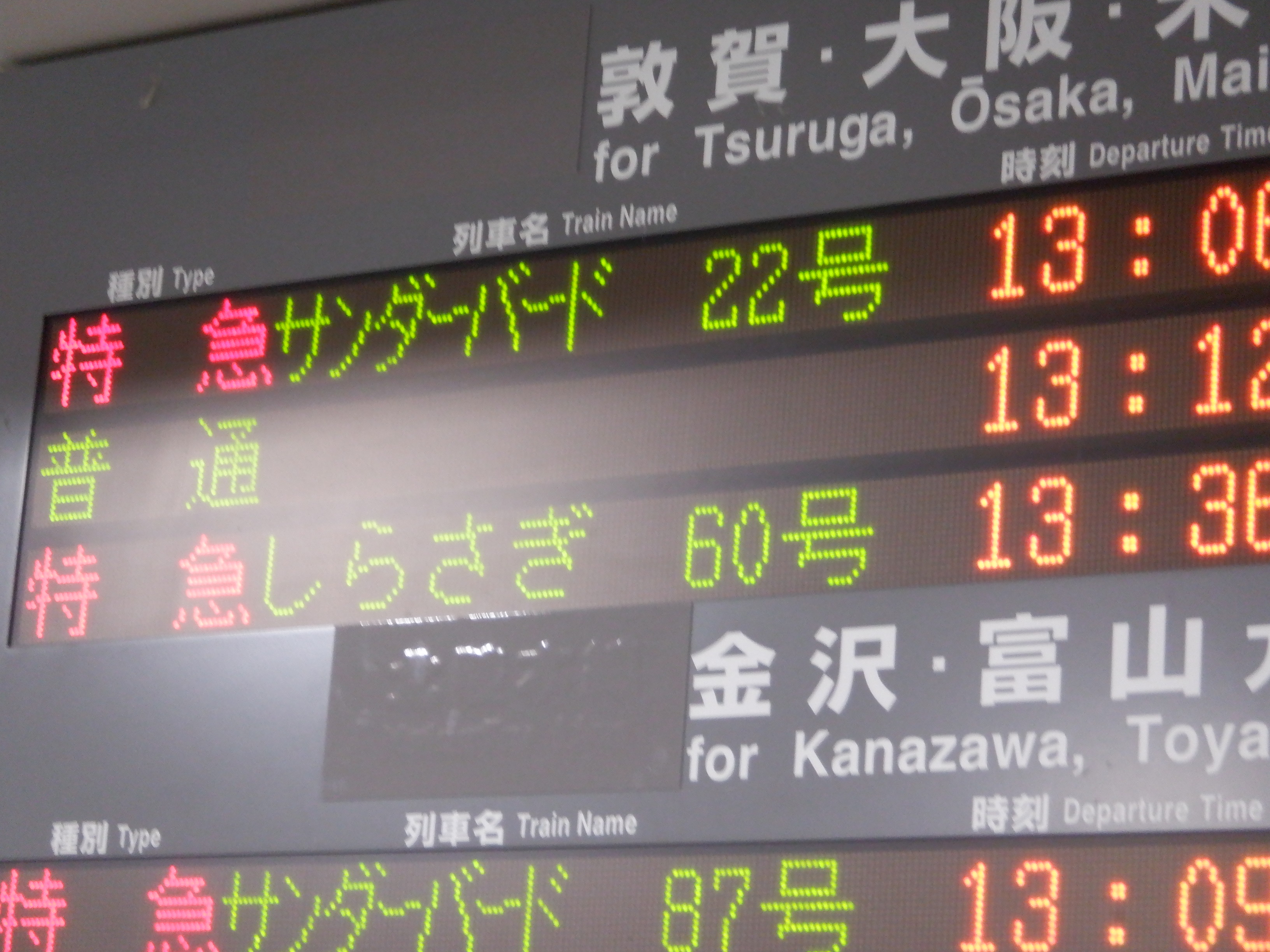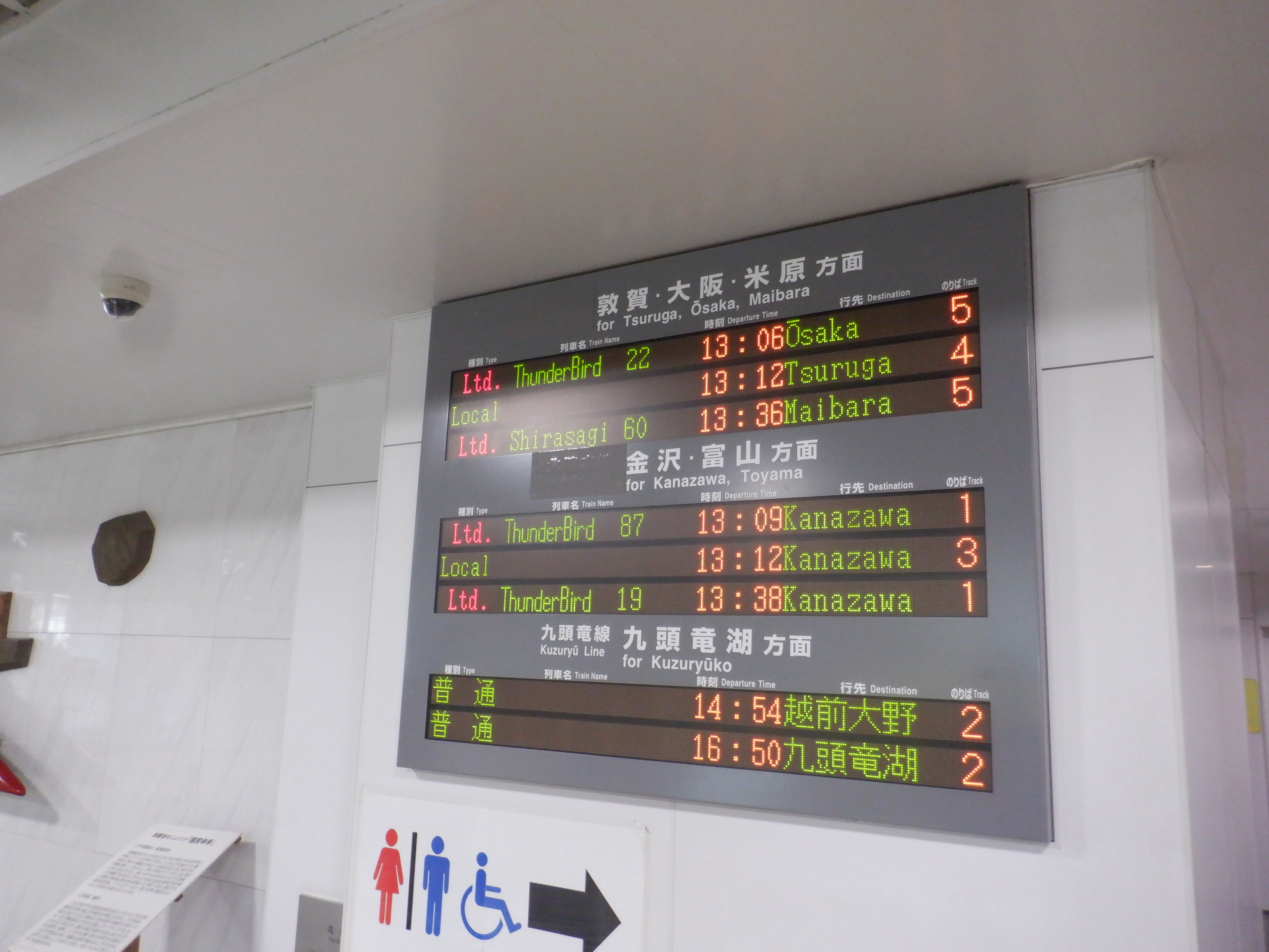 中二階の発車標。こちらも「北陸線」の文字が消されています。