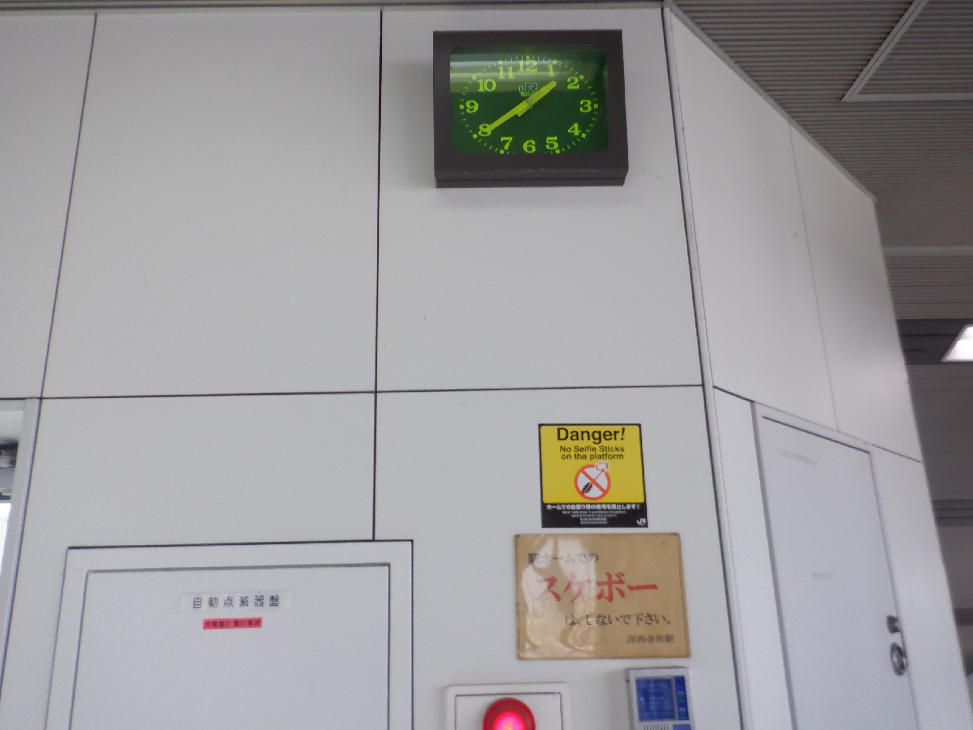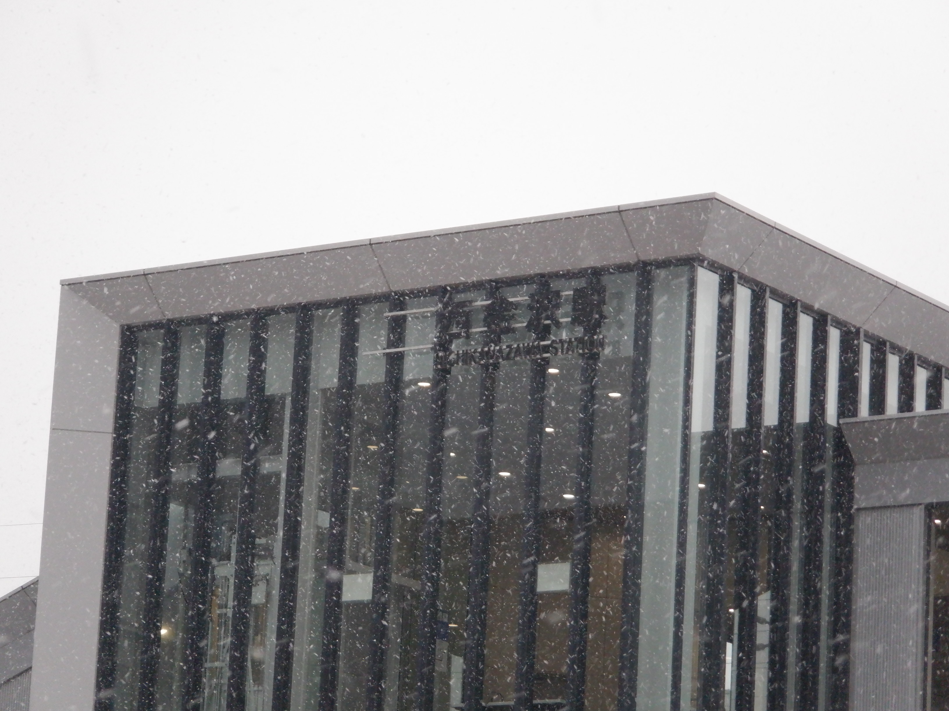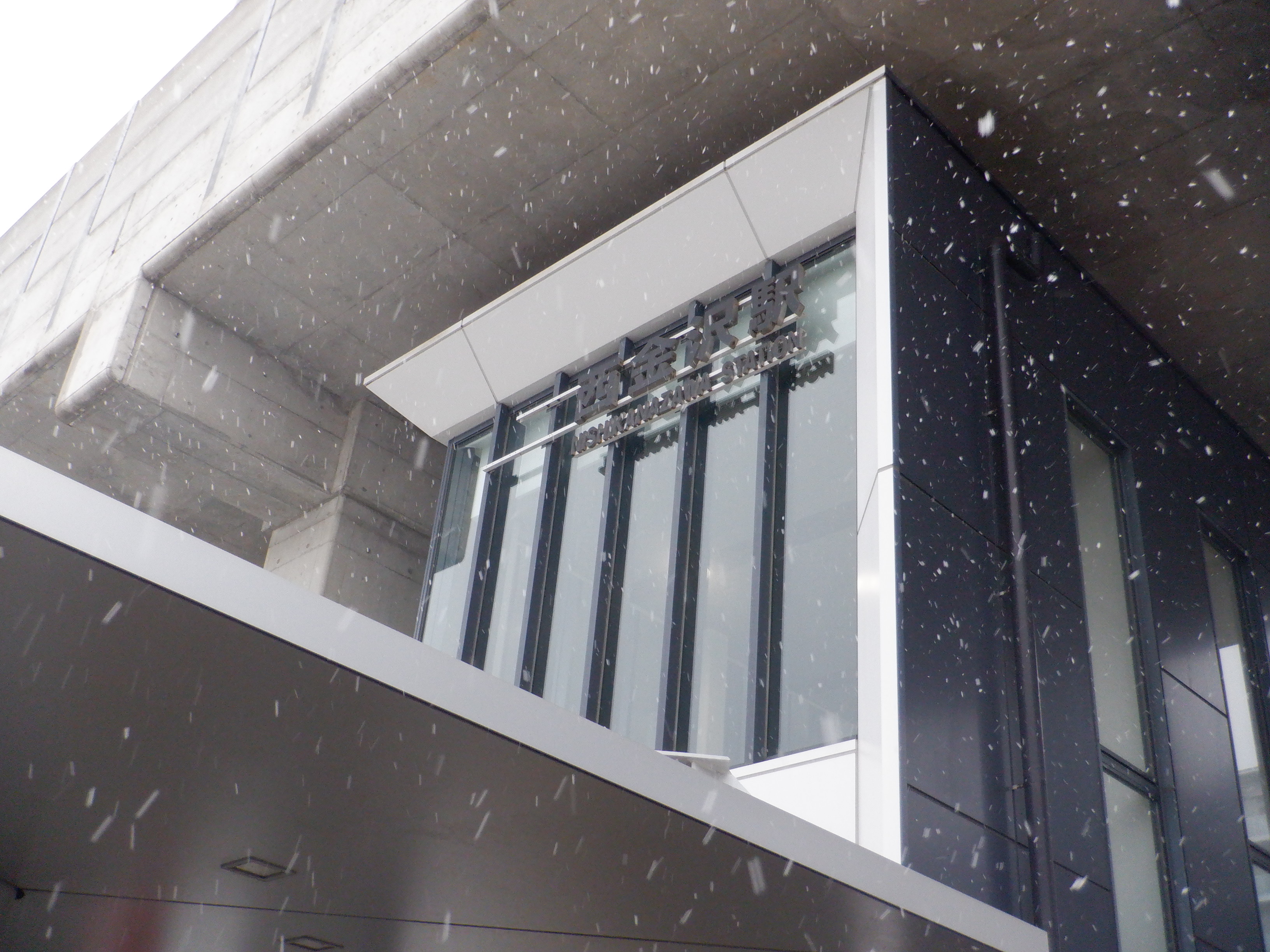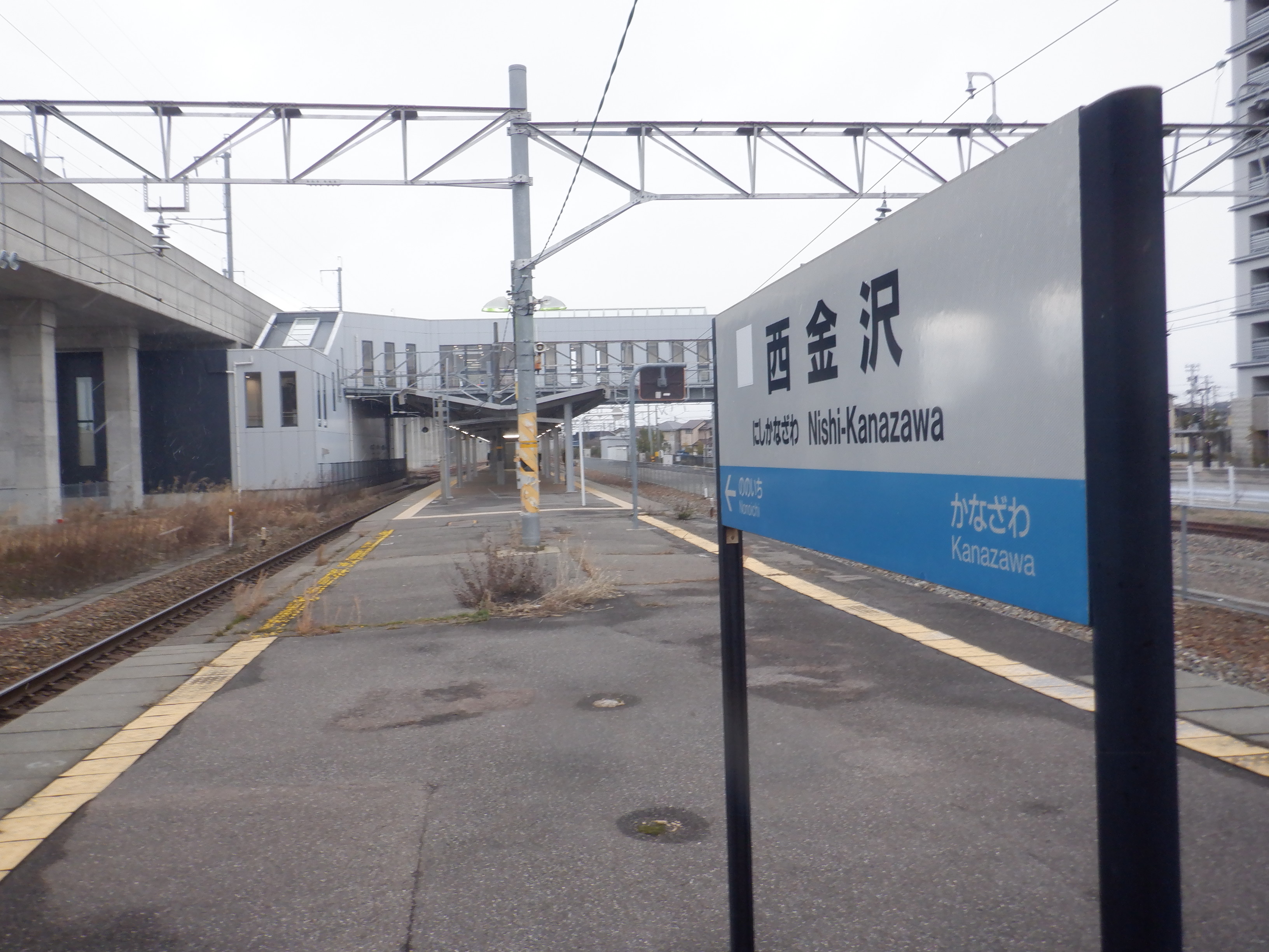 階段付近のJR西金沢駅と書かれた注意書き、スケボー禁止の表示はこの時点で残っています。