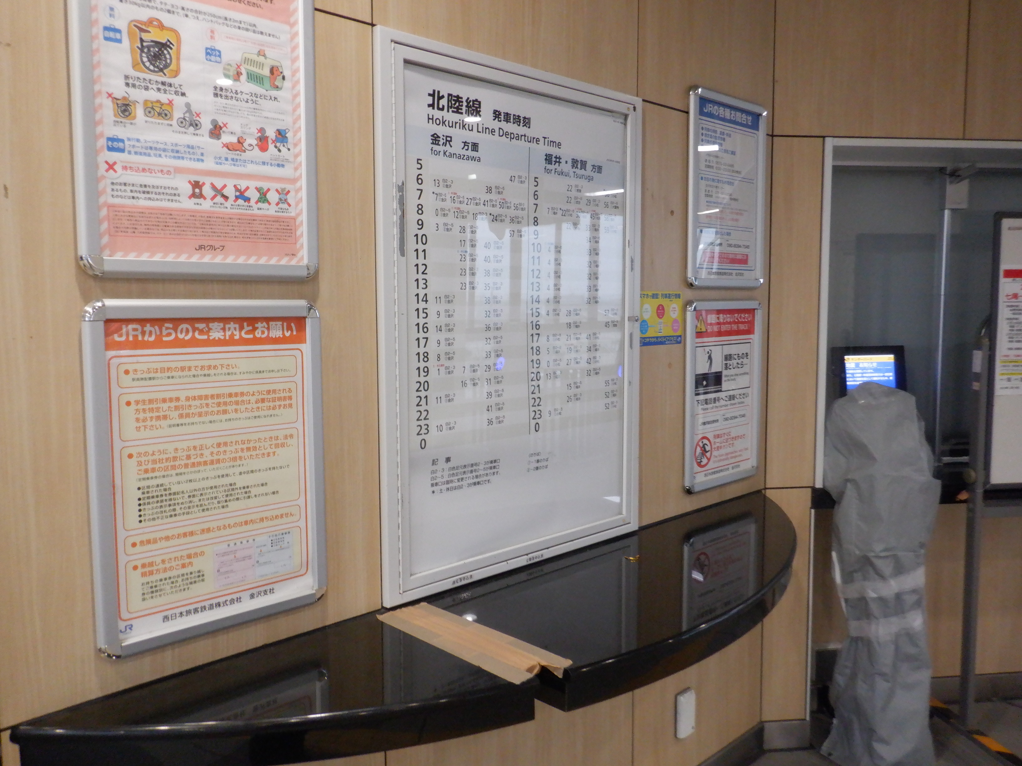 券売機の様子。カバーが外され、IRいしかわ鉄道の券売機が見えていました。
