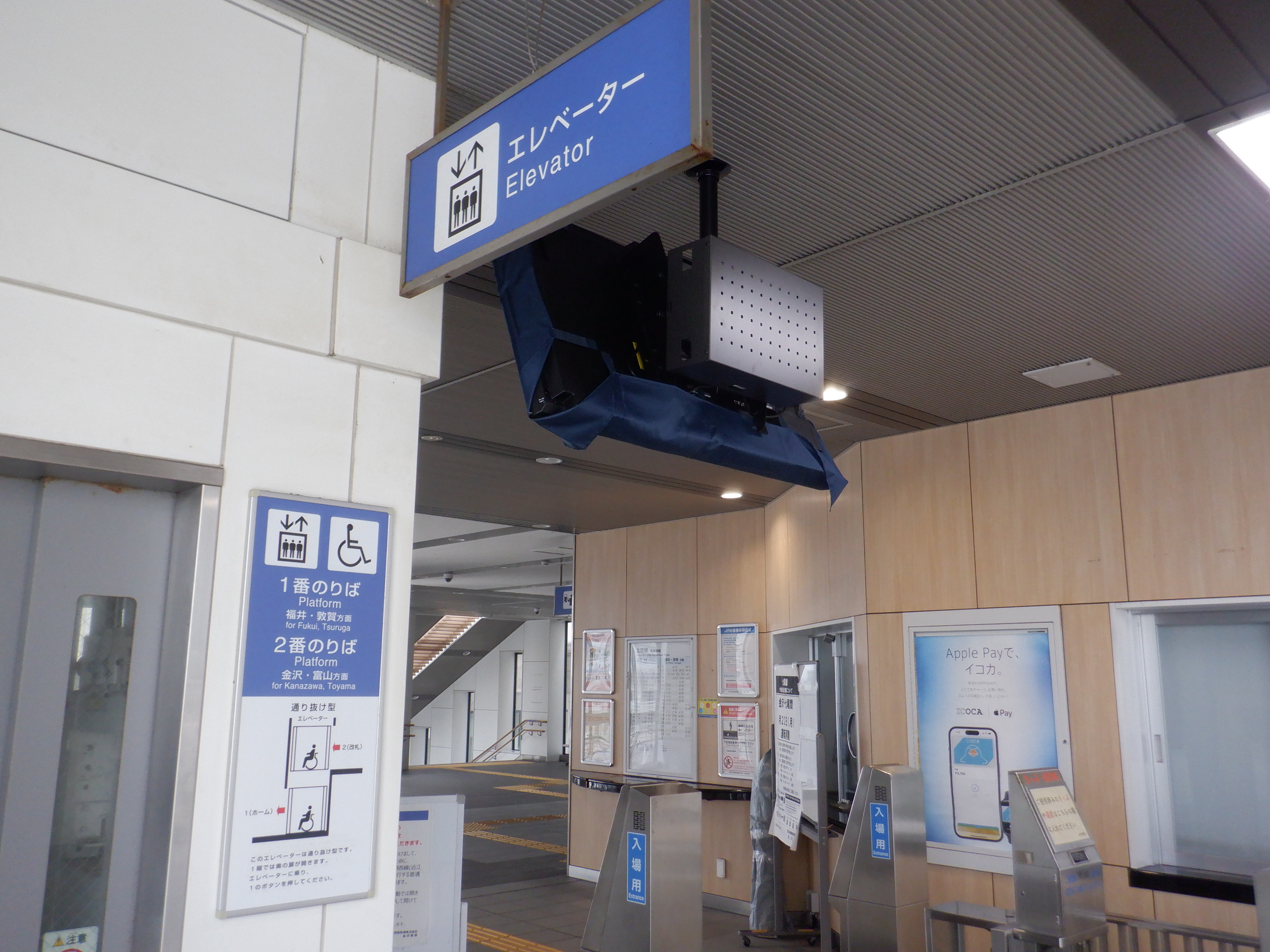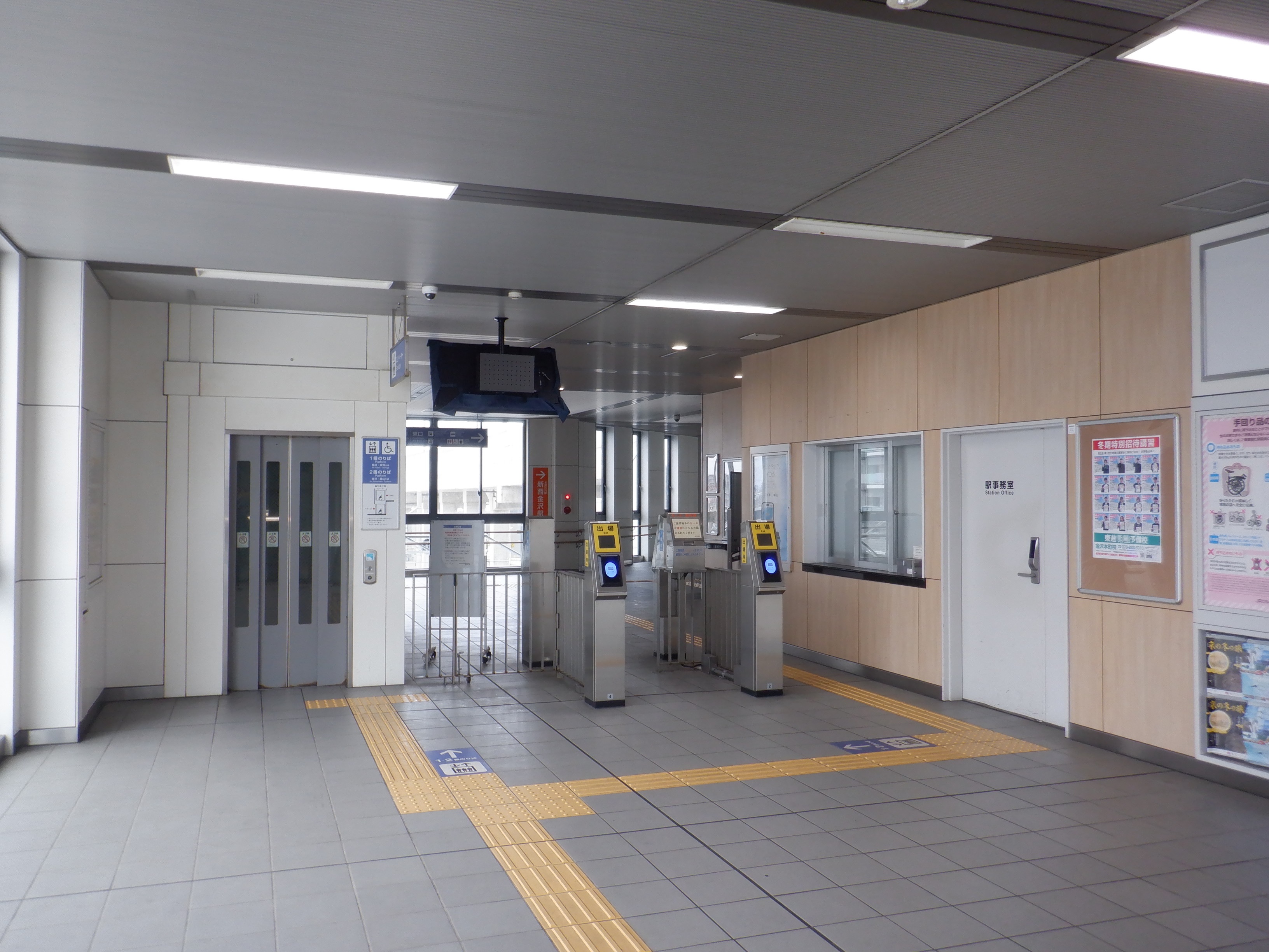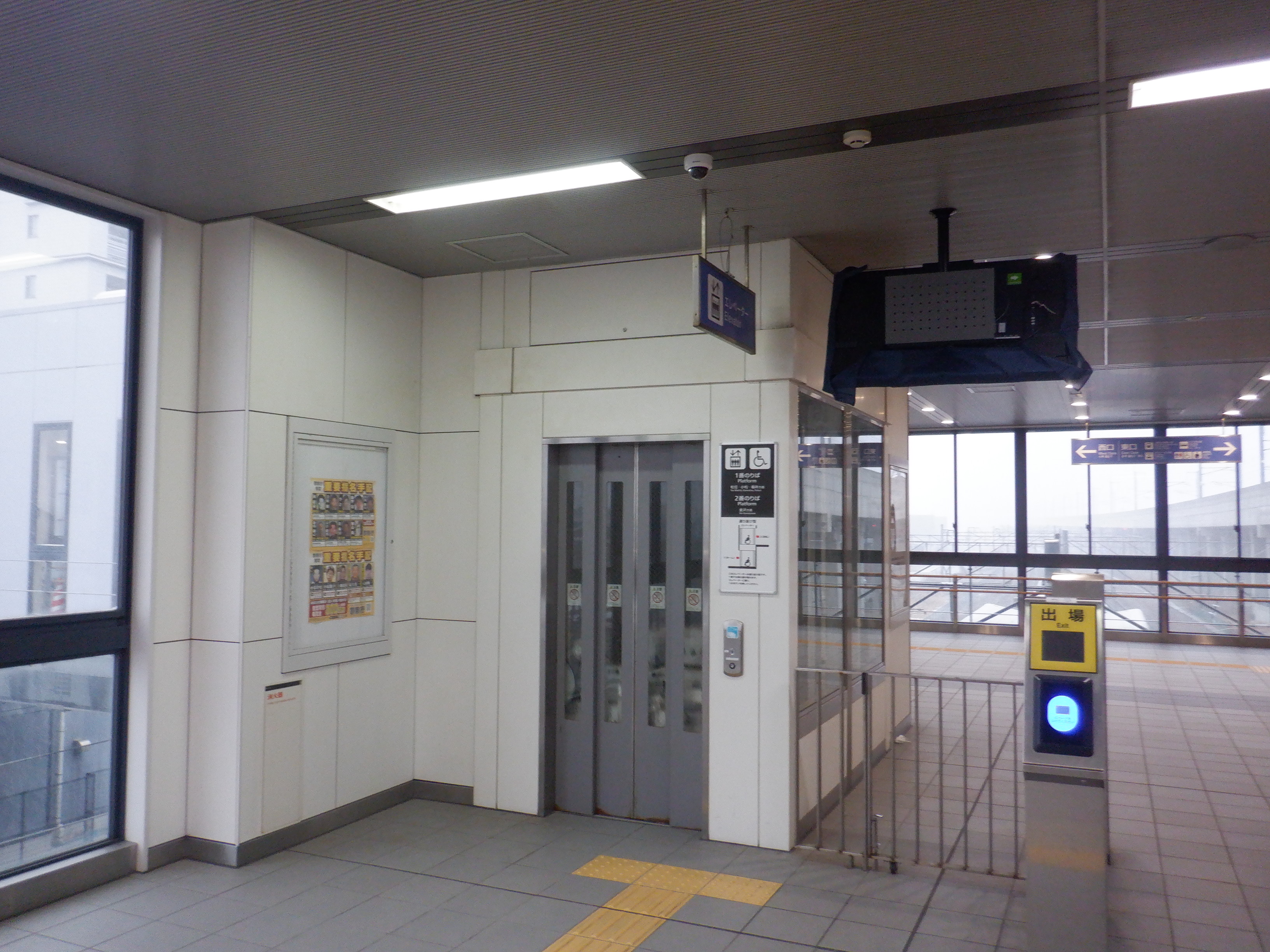 改札内から見た改札口・エレベーター。