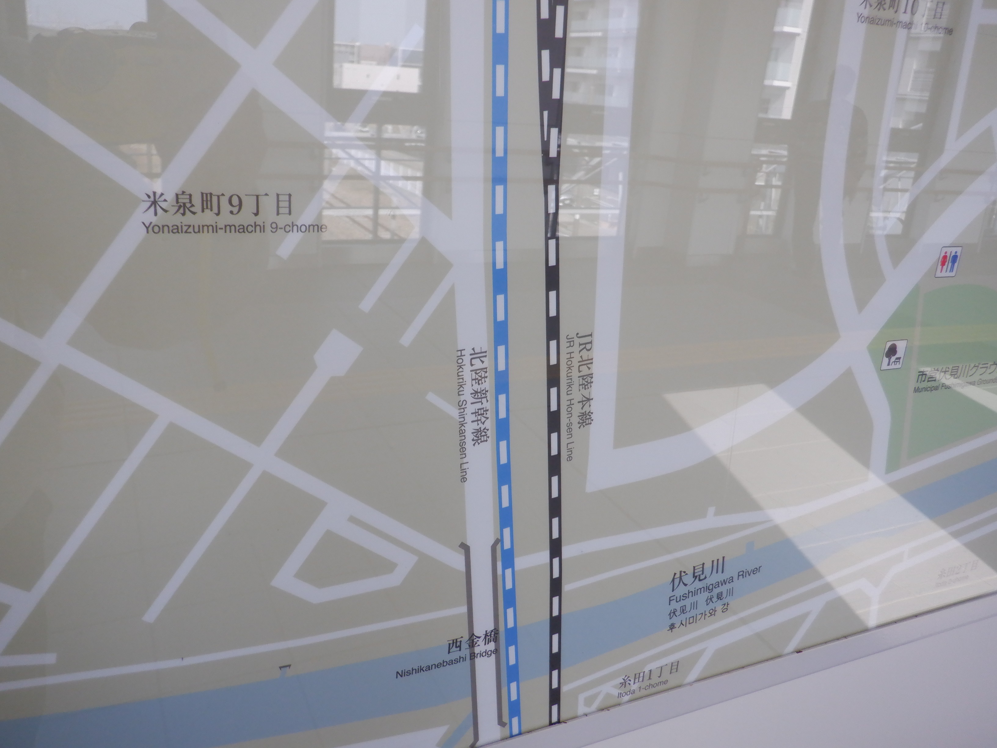 案内図には北陸新幹線と北陸本線が同居しています。
