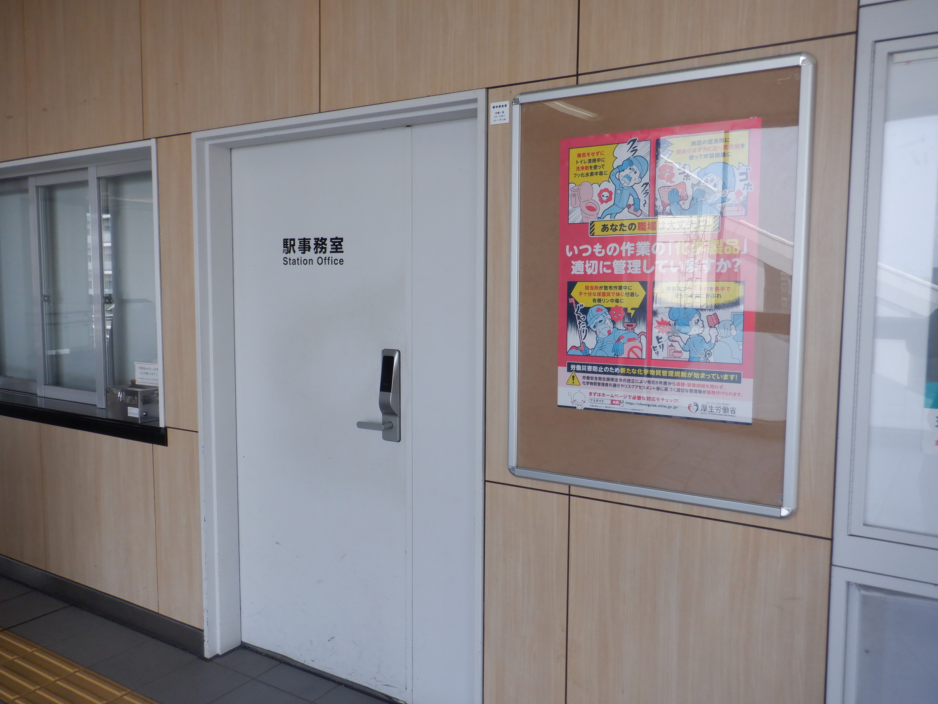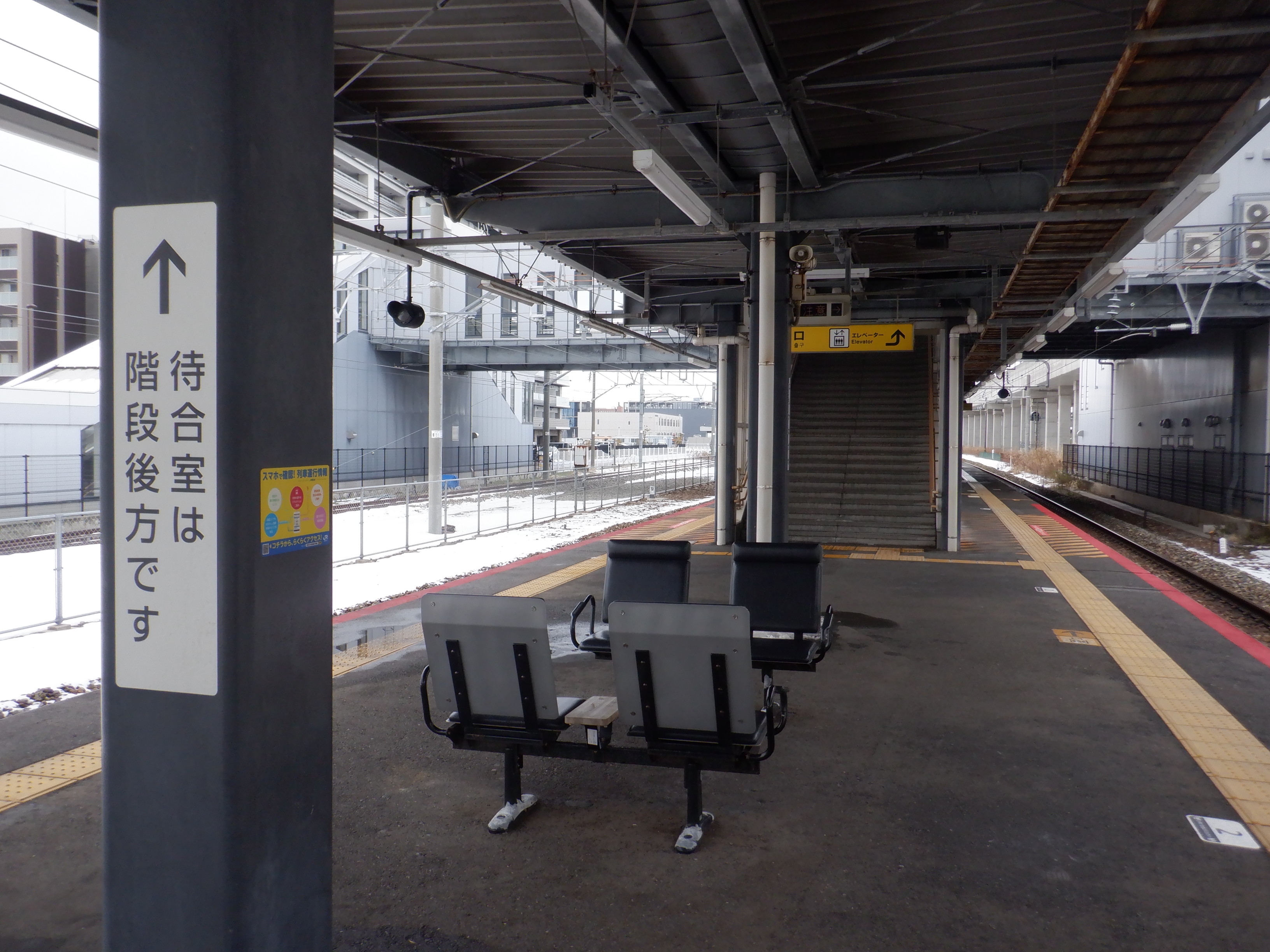 3月に入ってから、移管1週間前です。駅名標のロゴはシールで隠されています。また、階段付近の案内はこの時は気づかなかったのですが上からシールを貼っているようです。
