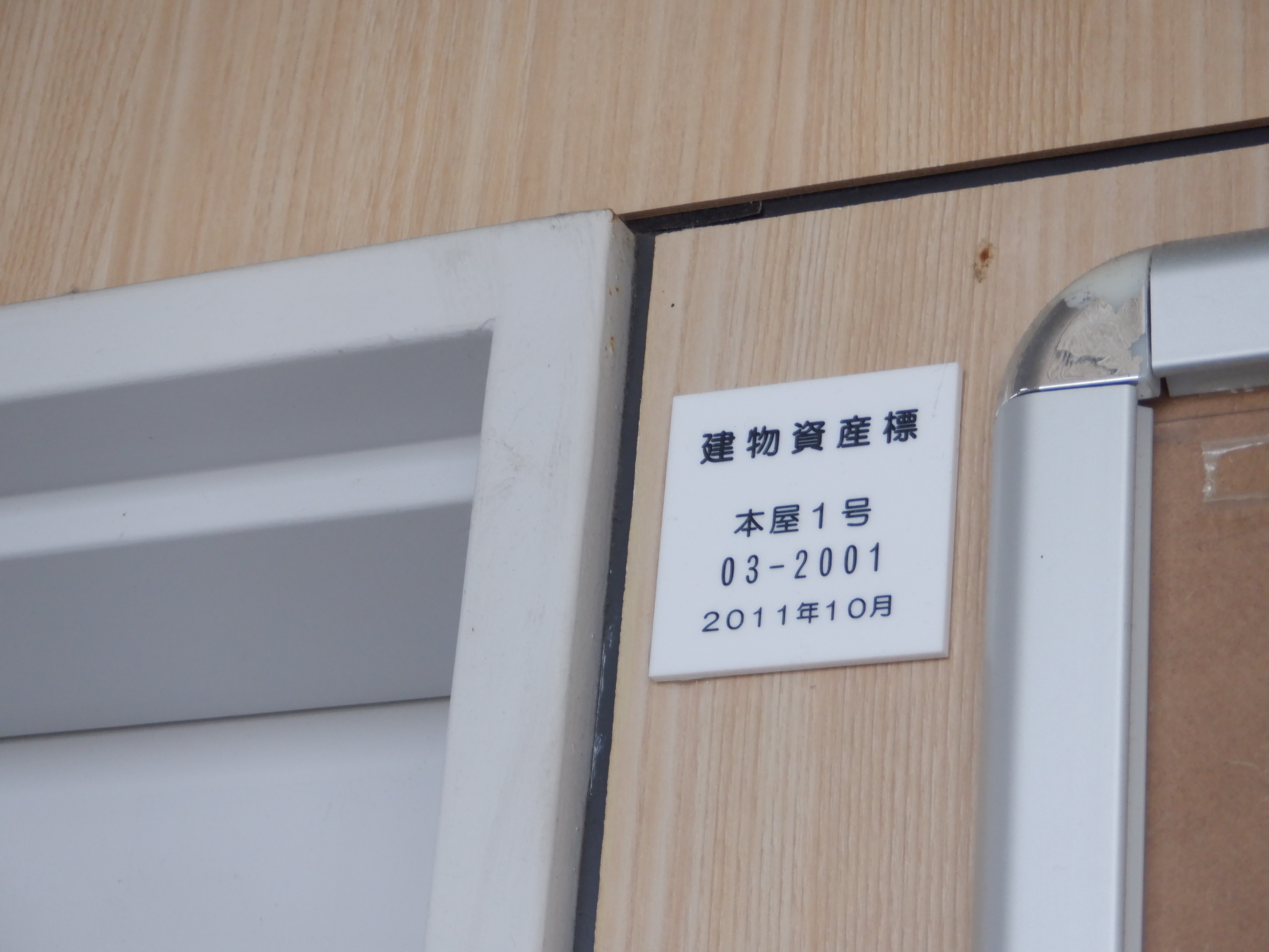 事務室入り口の資産標。