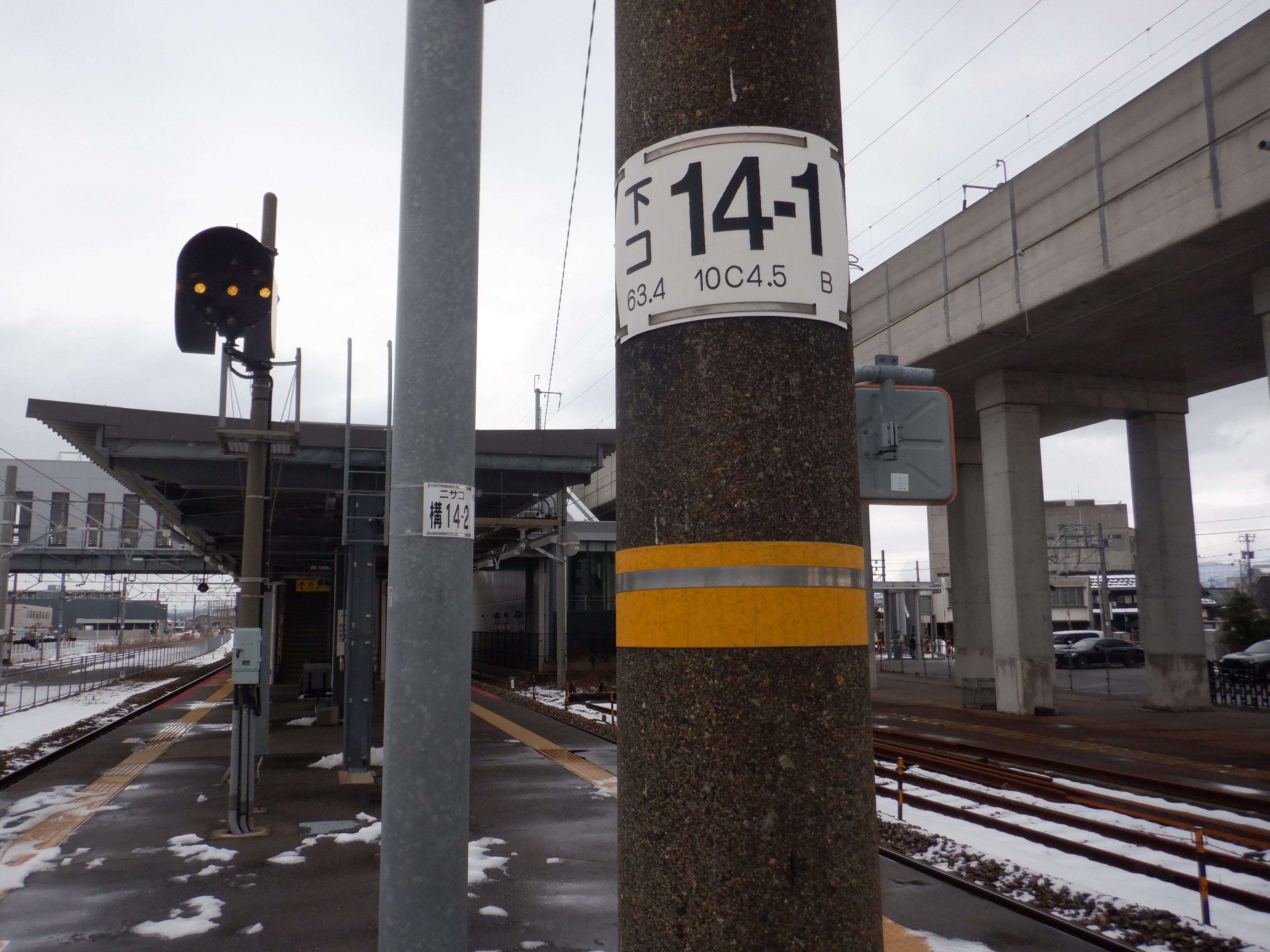 架線柱に「ニサコ」の表示がされています。