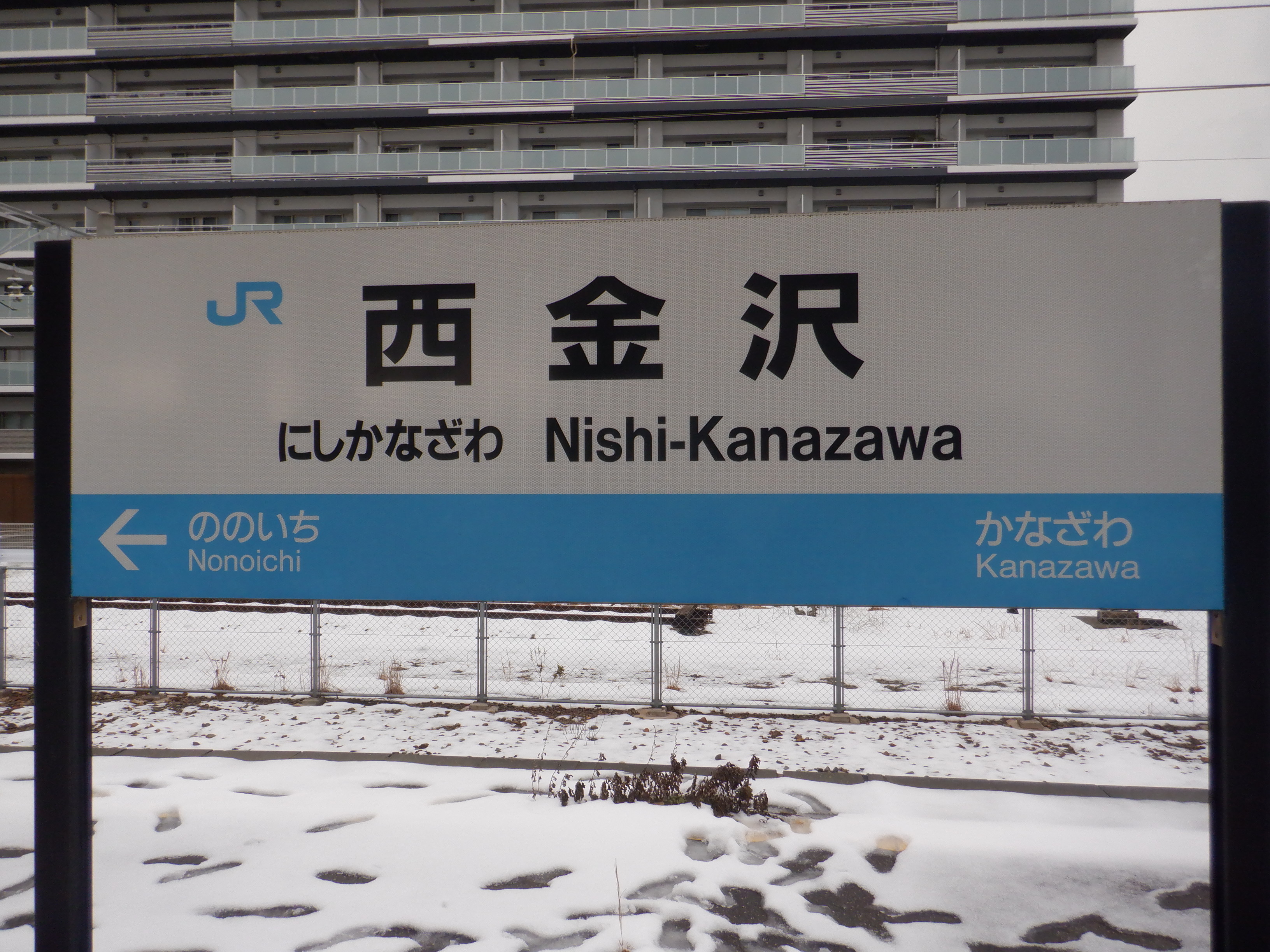 野々市駅側の駅名標。