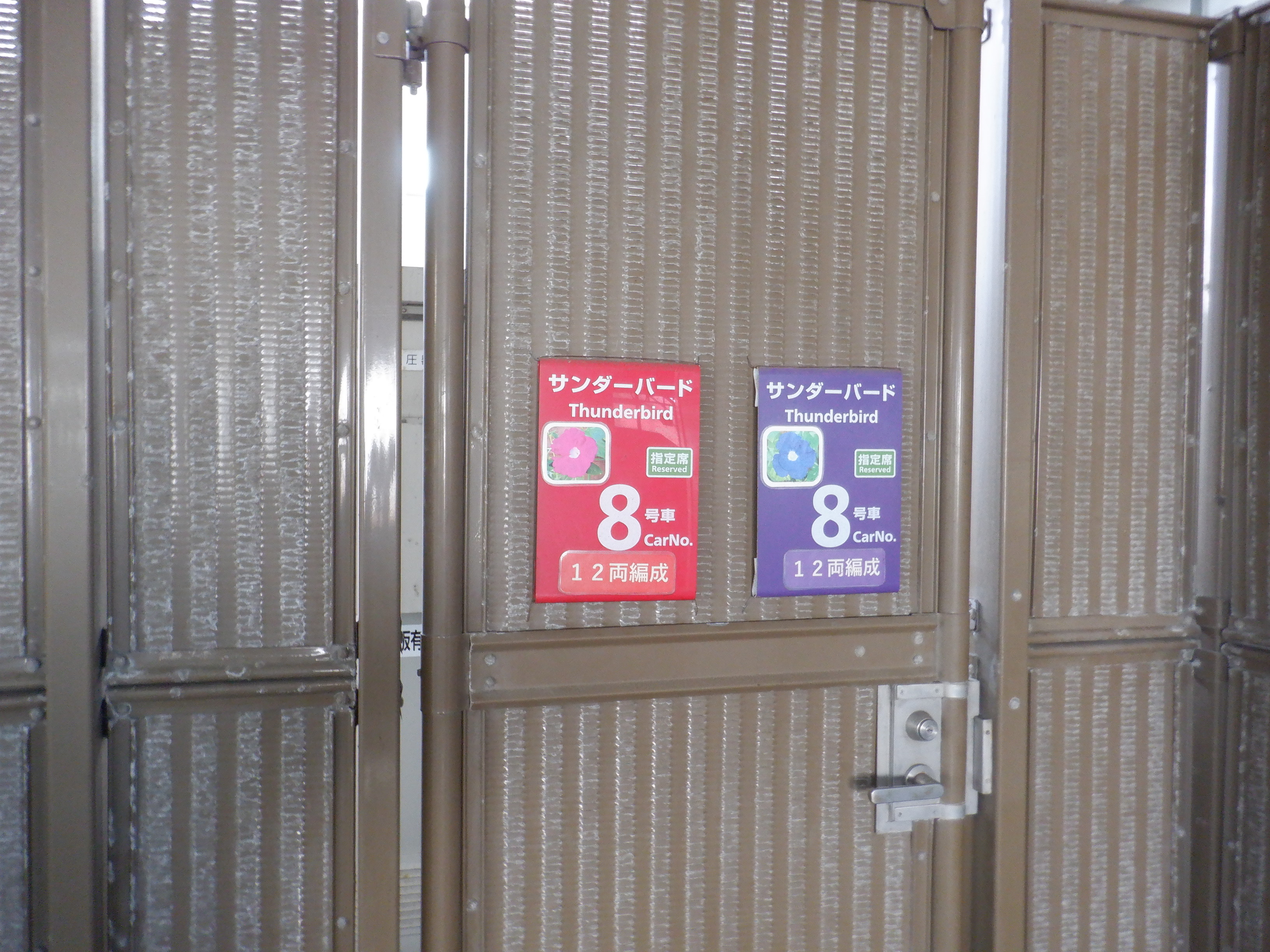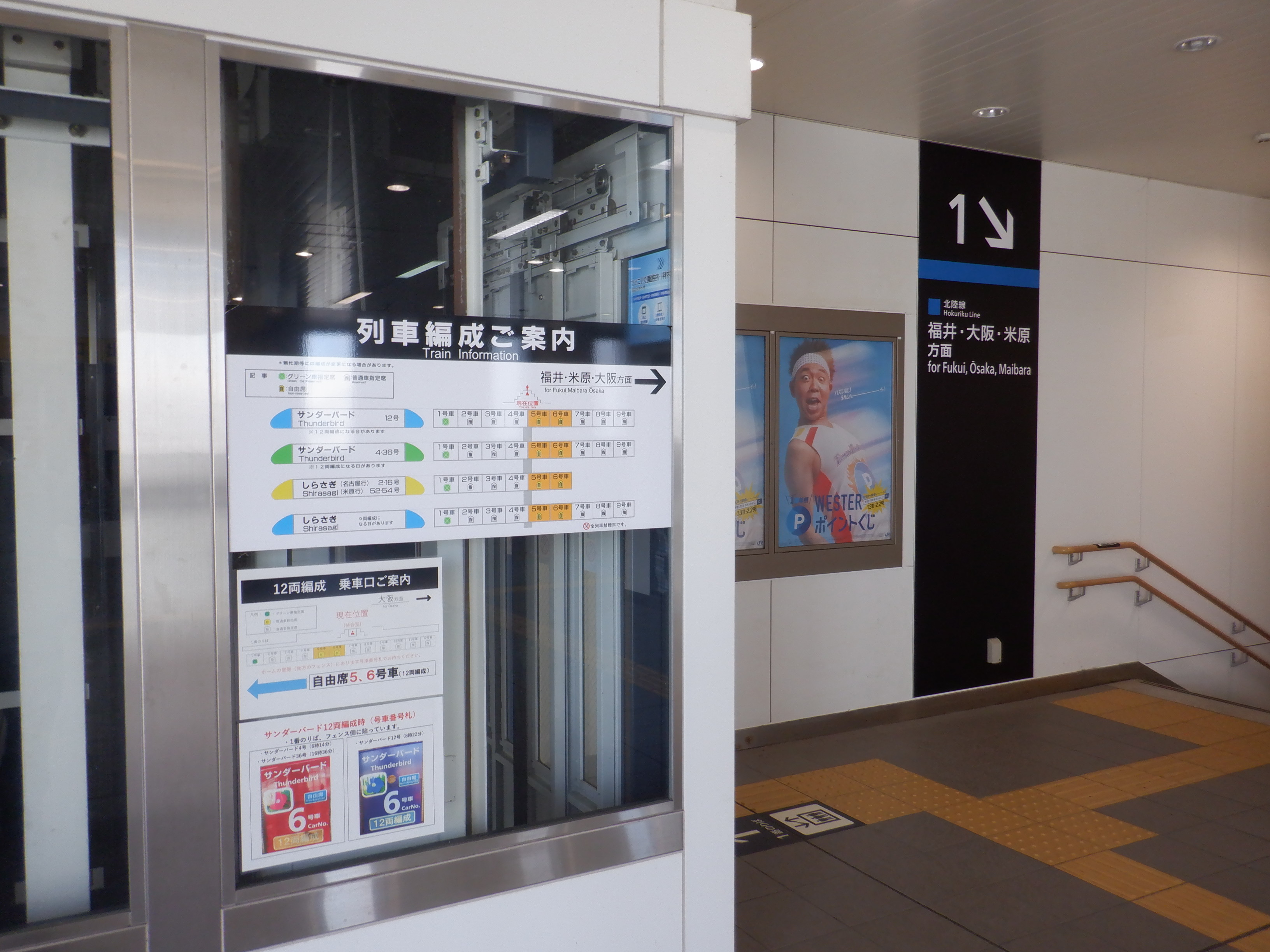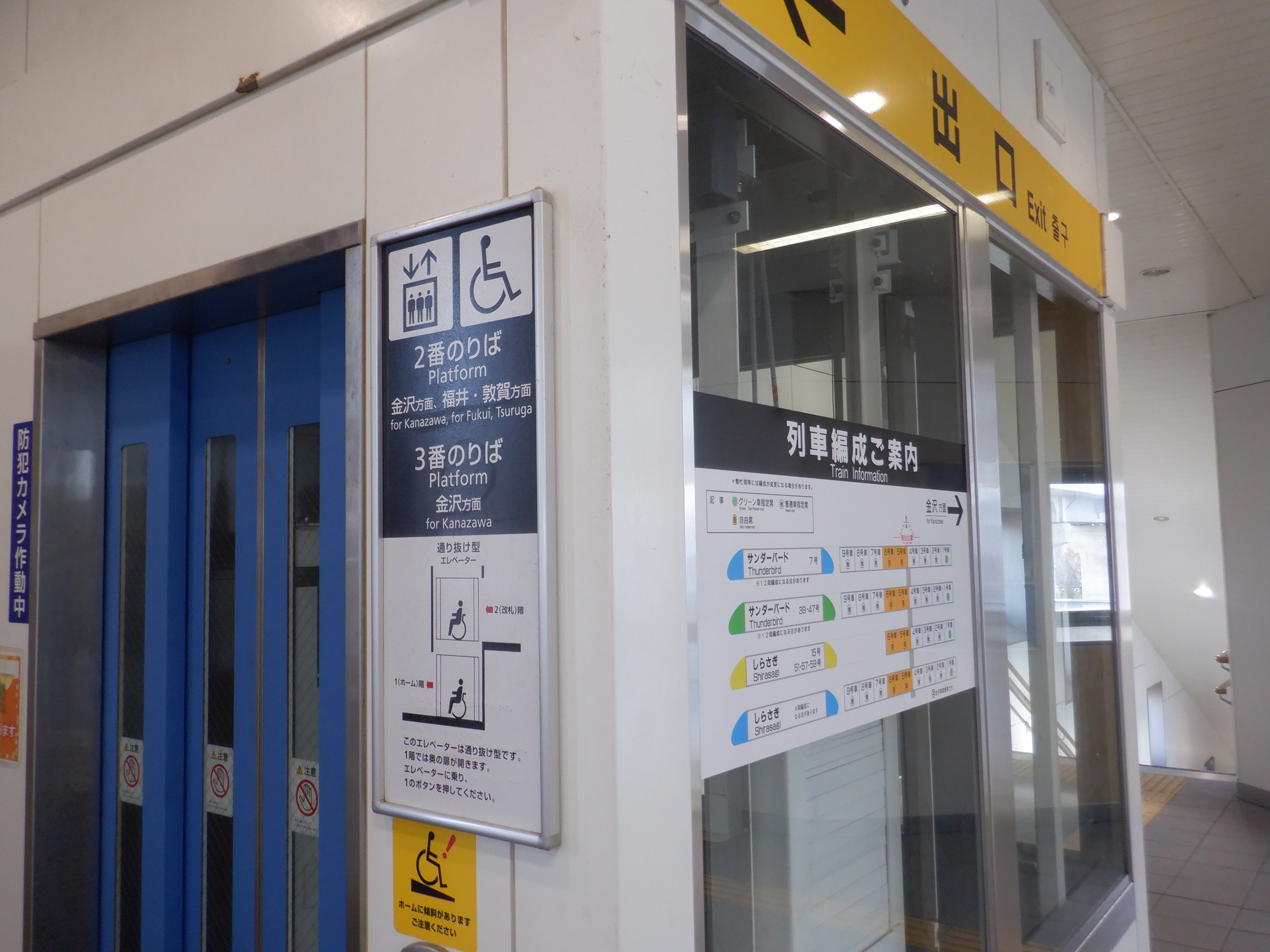 エレベーターのところの特急列車の編成案内。