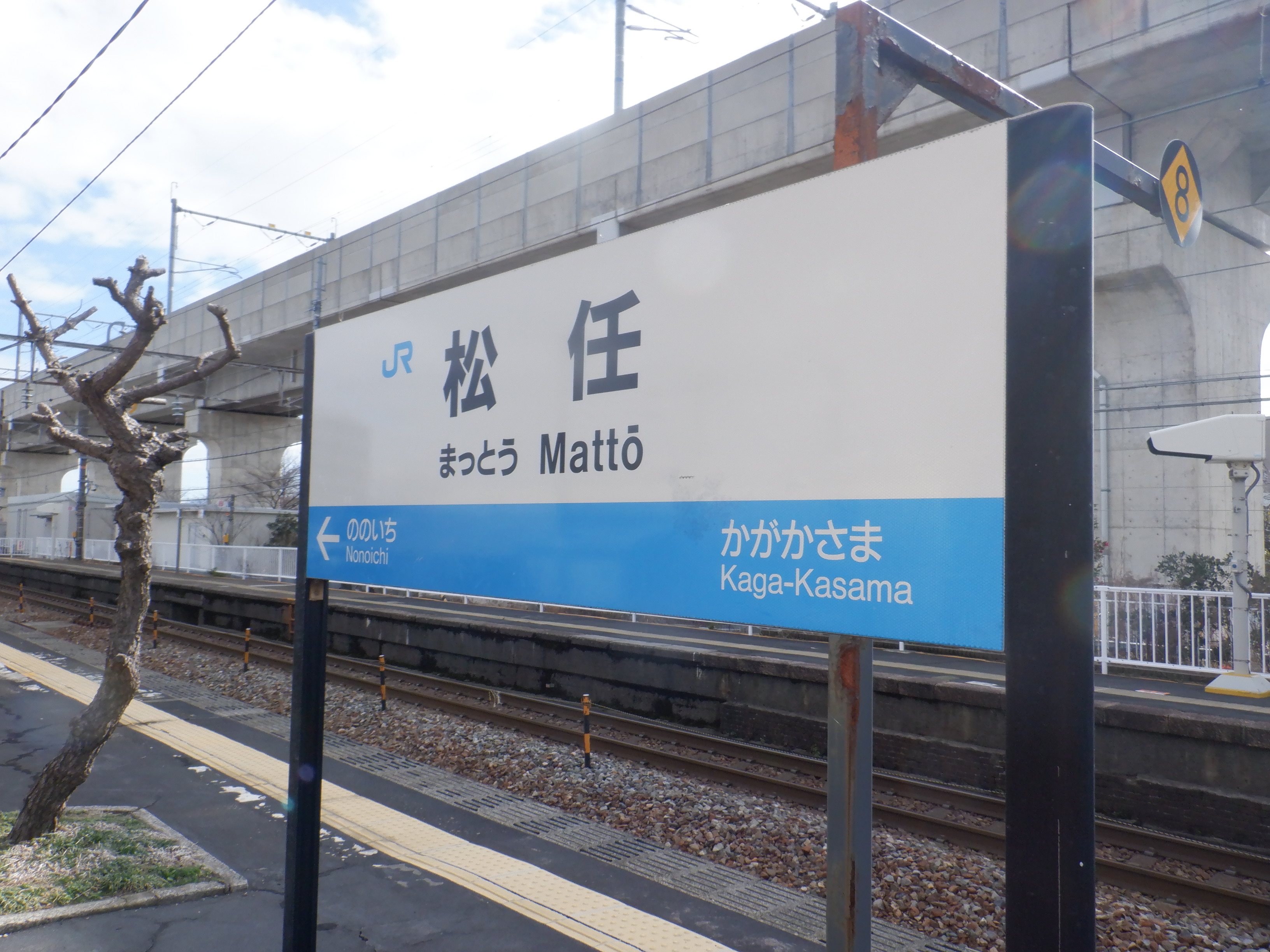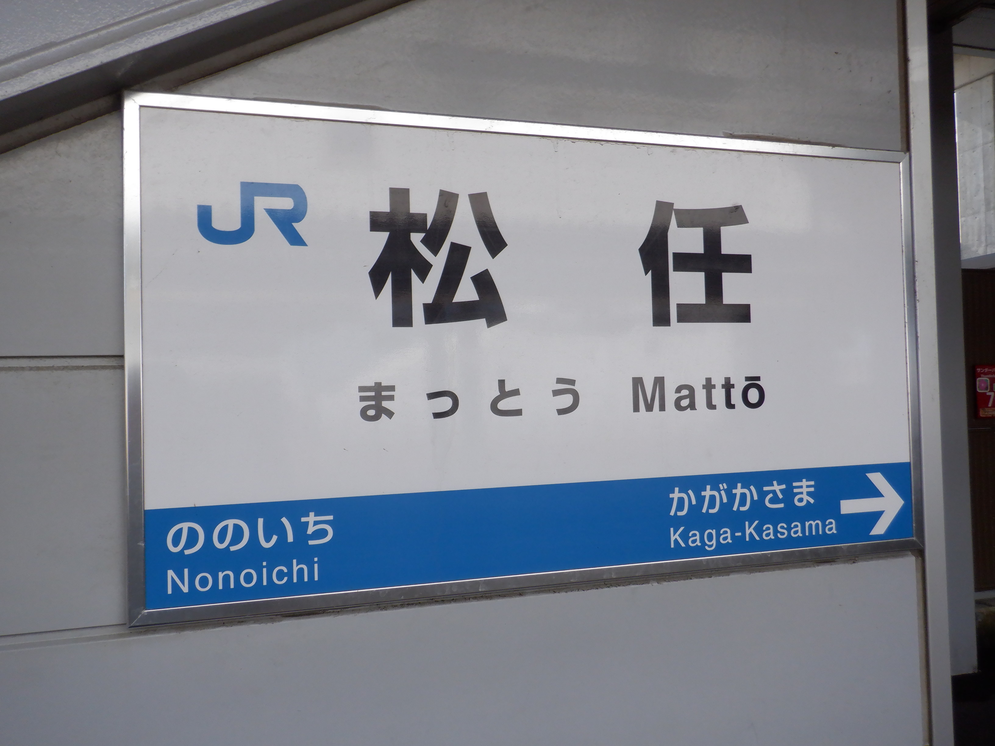 1番のりば野々市駅側の駅名標。