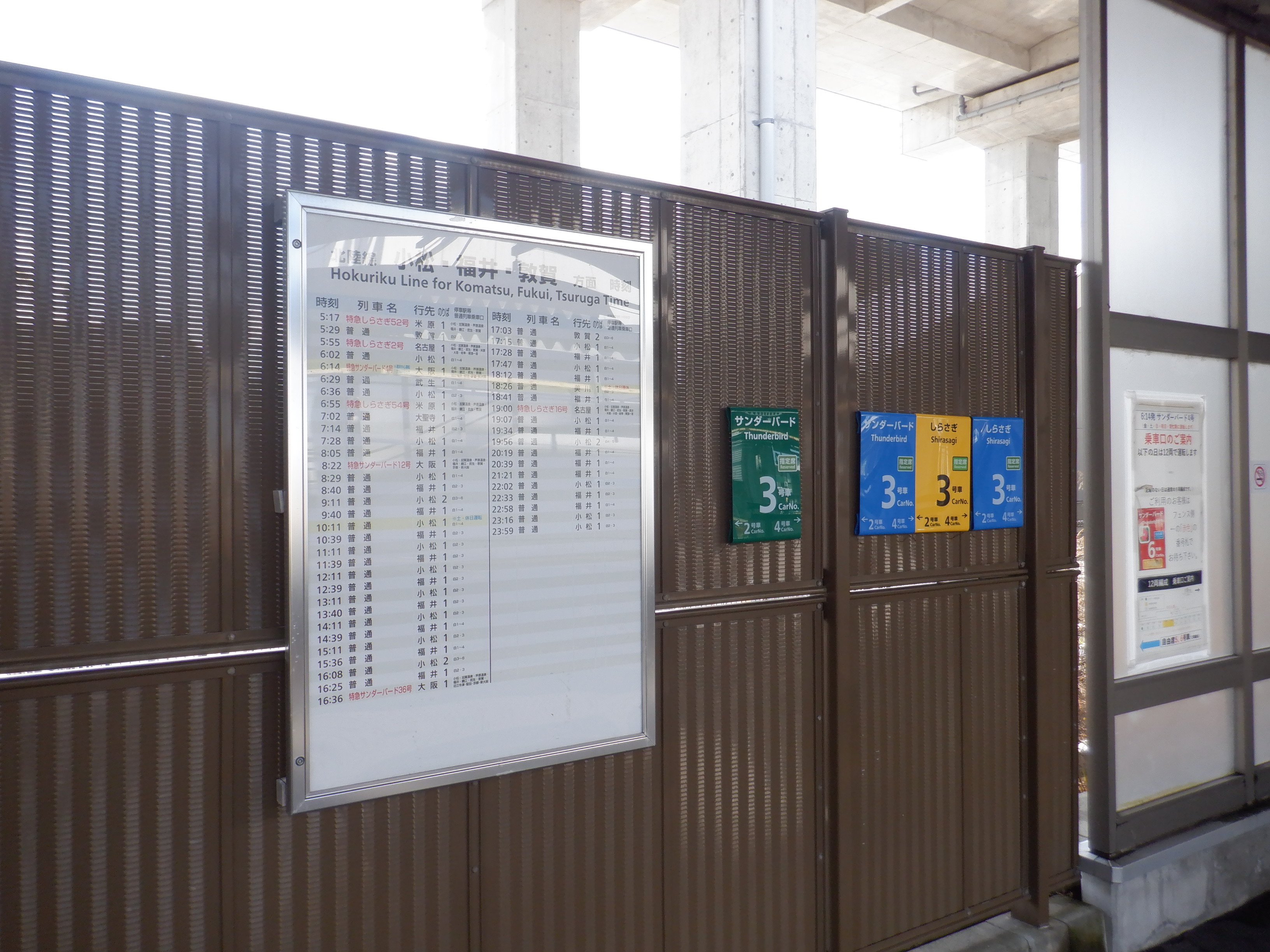 待合室近くの特急列車の乗車位置案内。