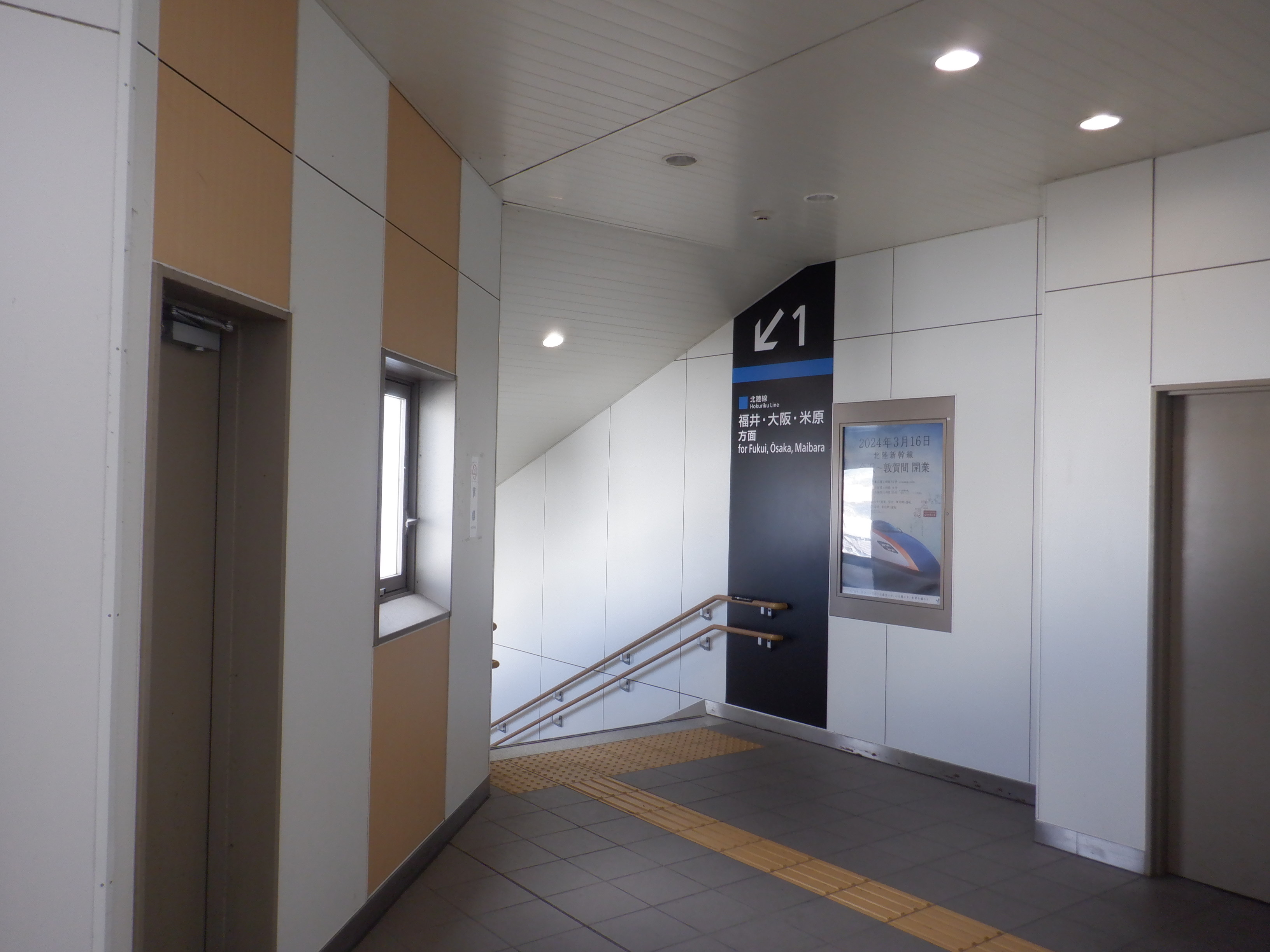 1番のりばから改札階に上がってきたところ。