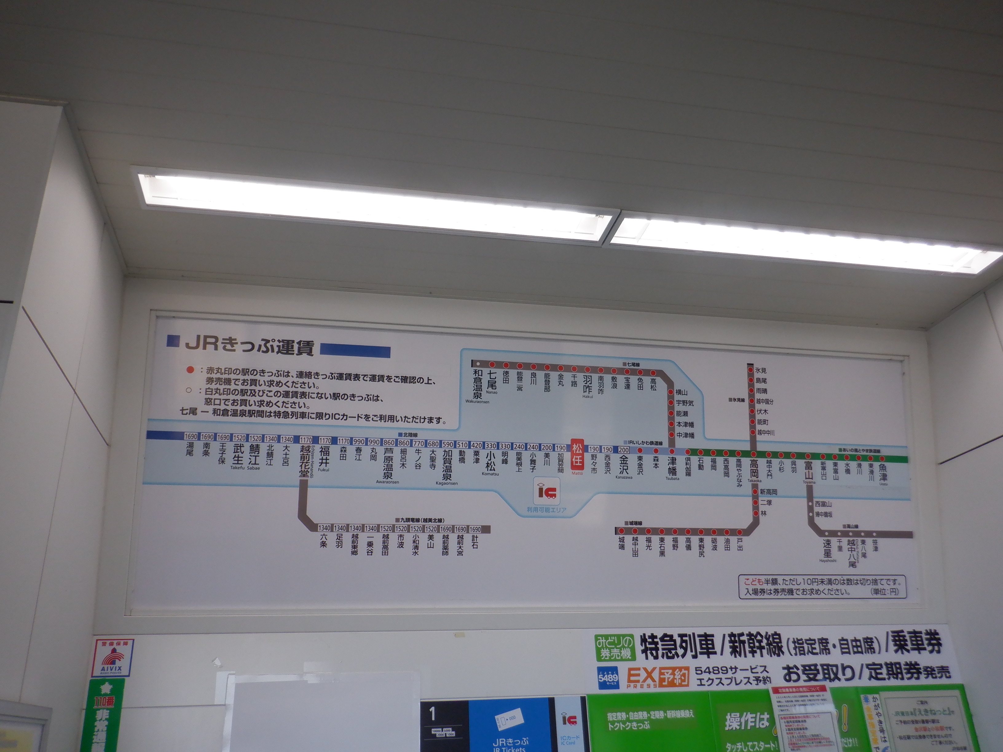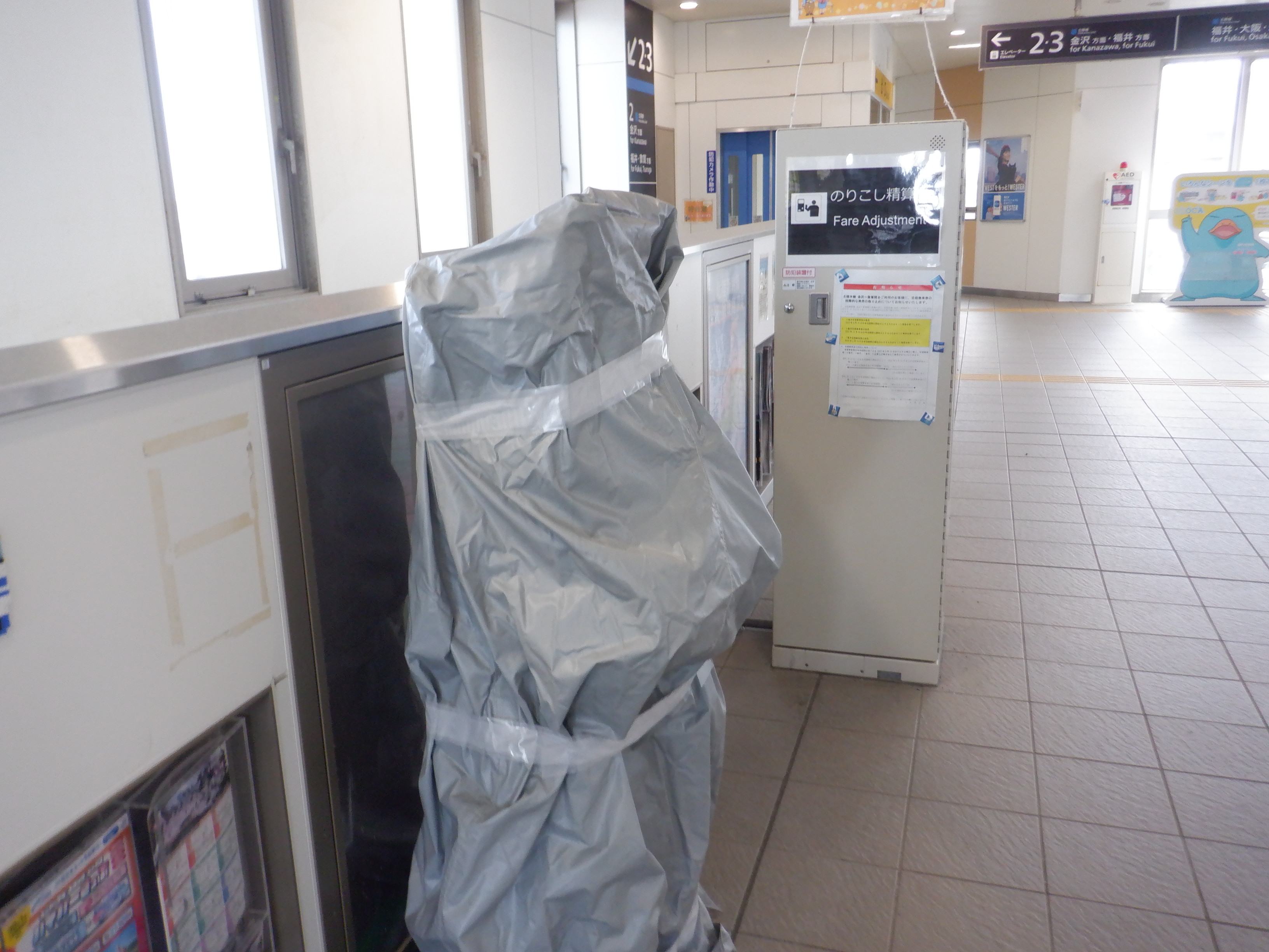 券売機と受取機。近距離券売機の内1台が使用中止になっていました。