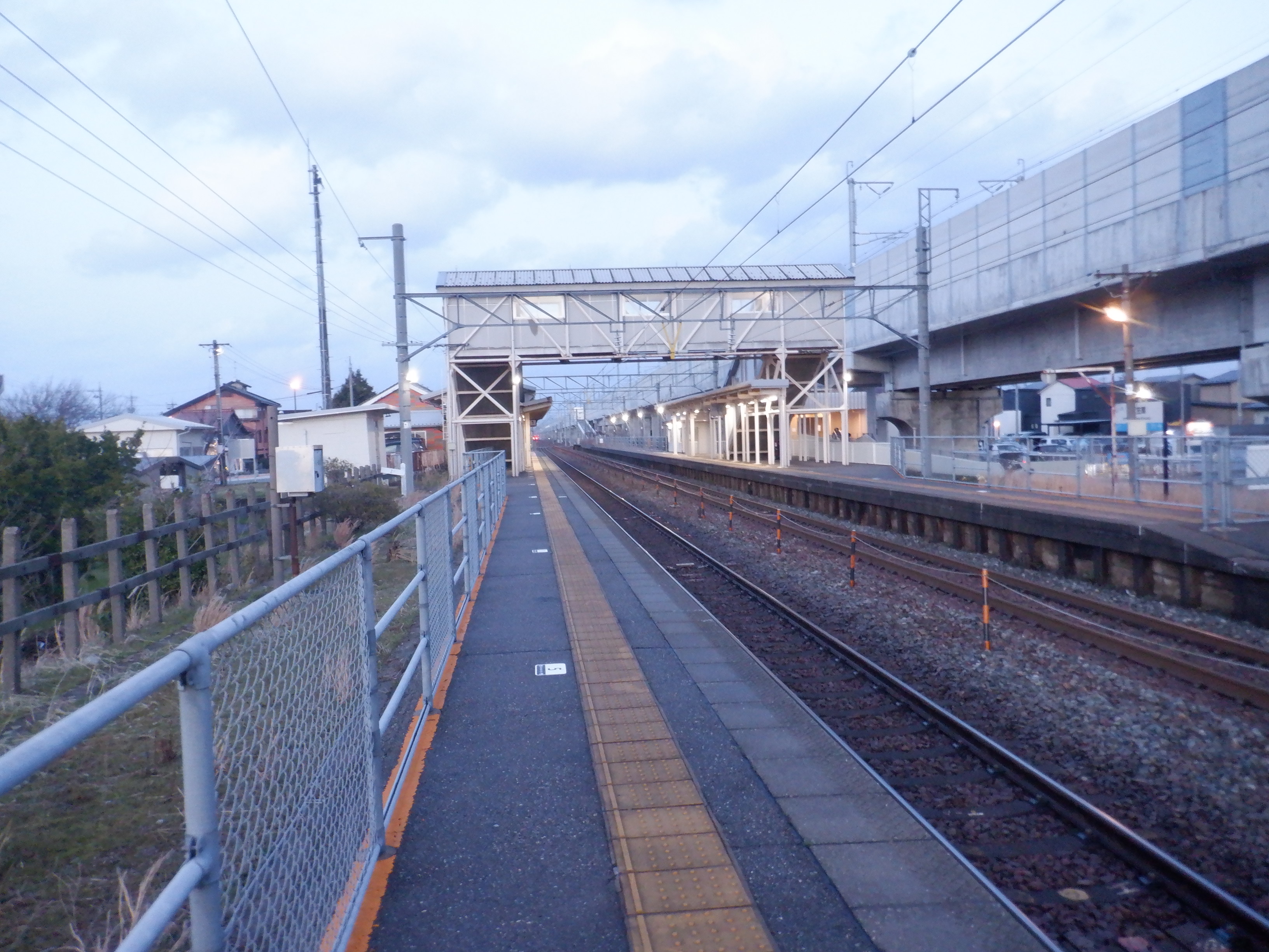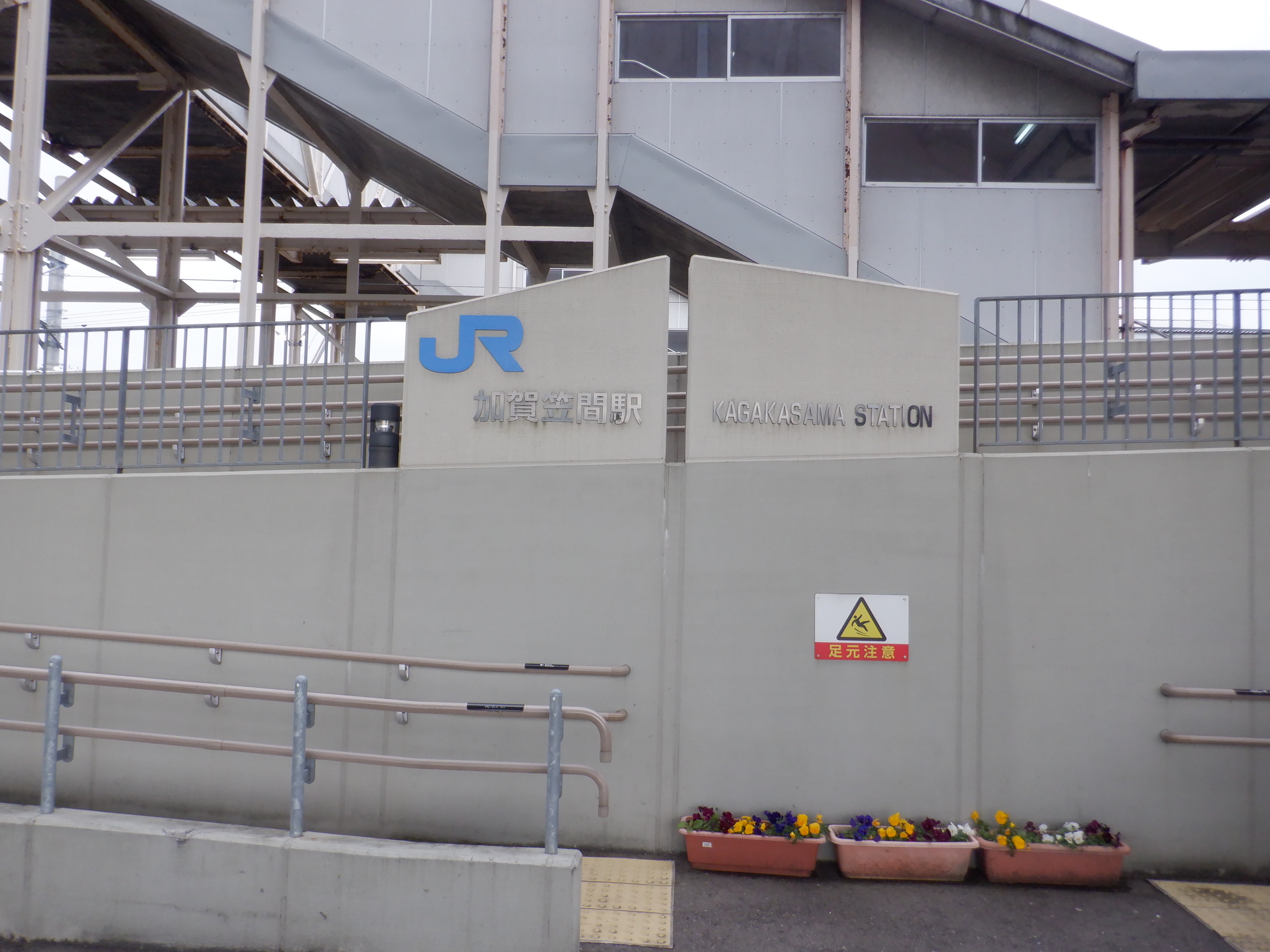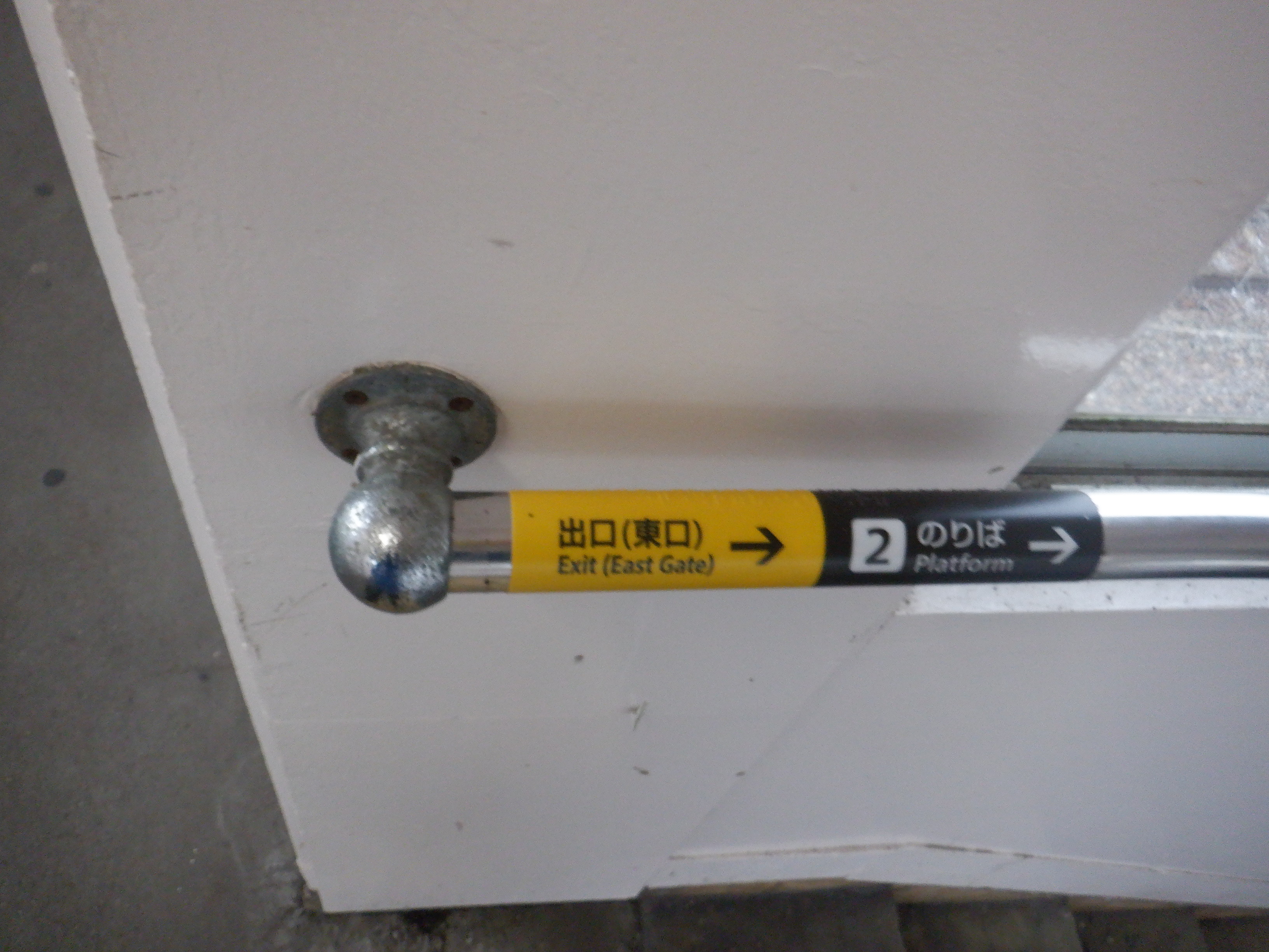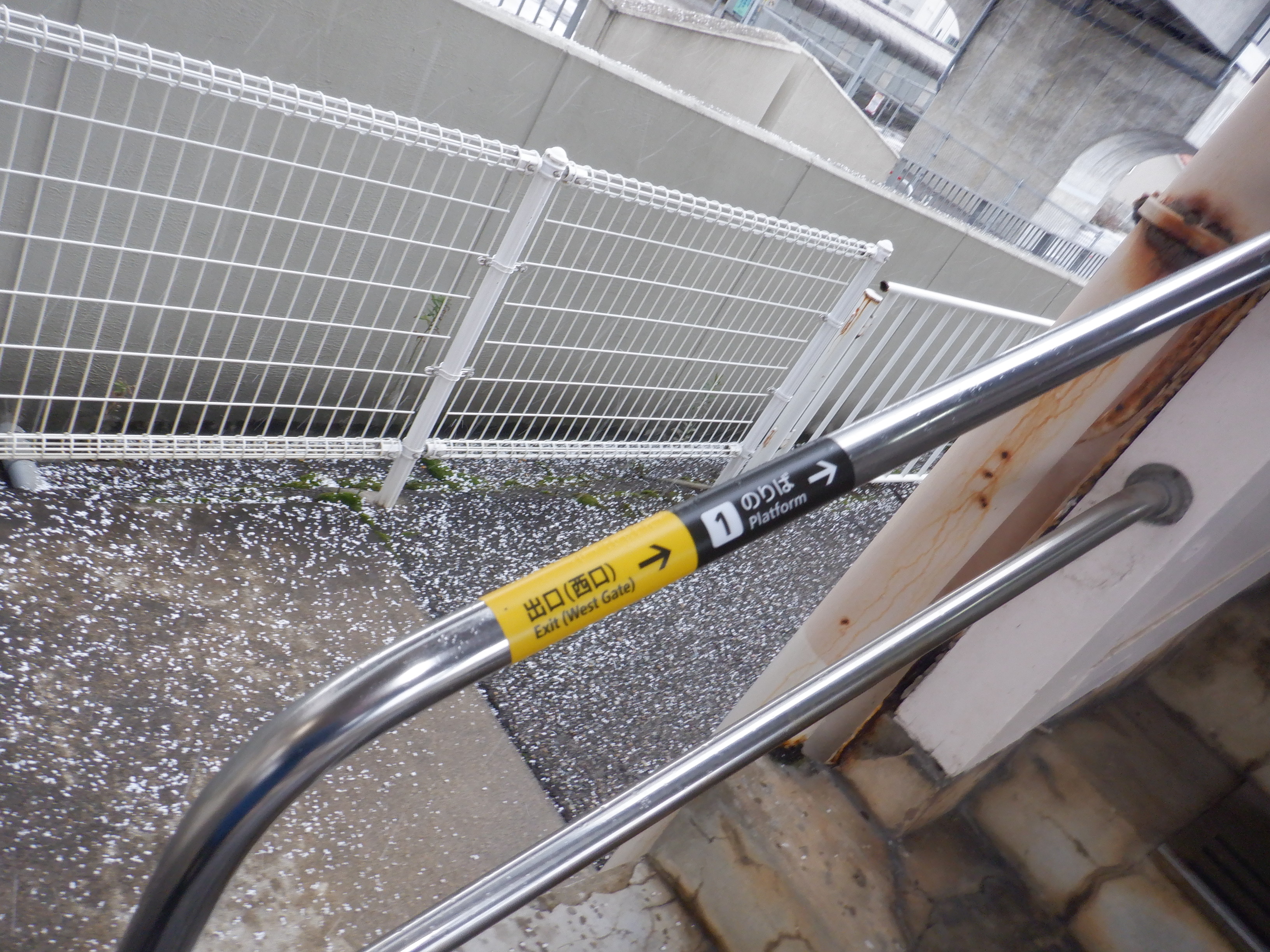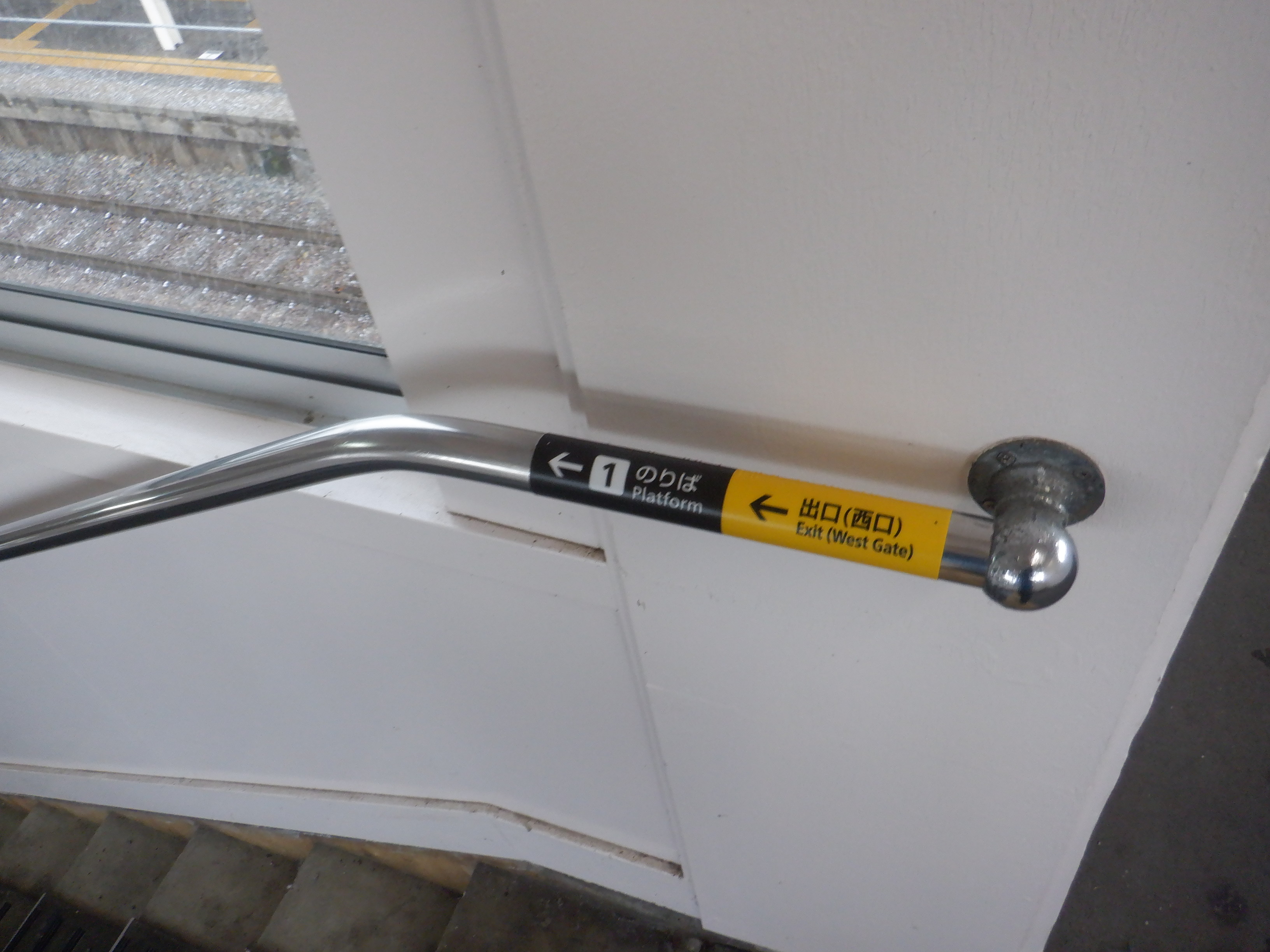 写真に撮ったのは1月以来なのですが、おそらくこの直近で跨線橋の手すりの案内が更新されました。