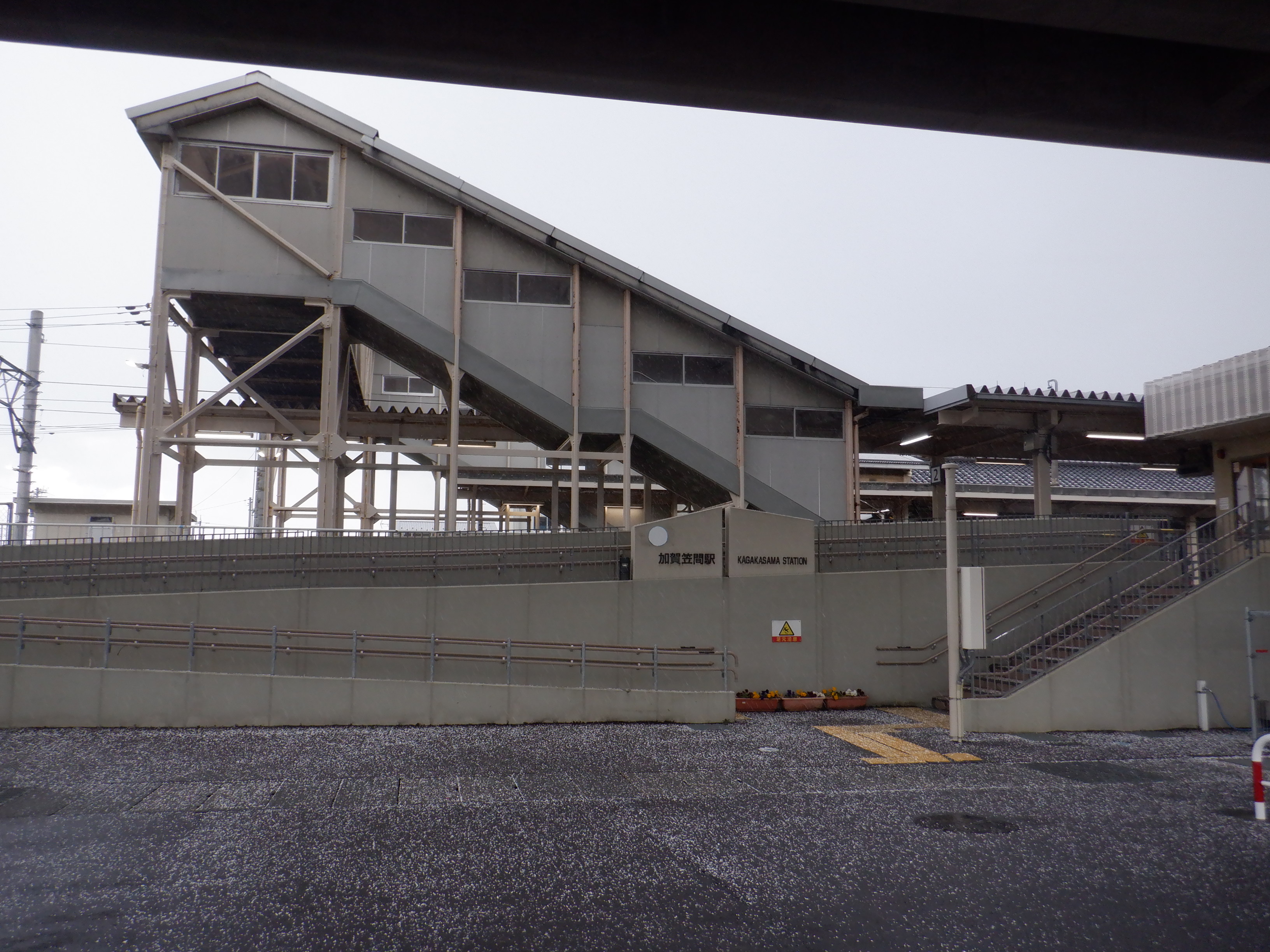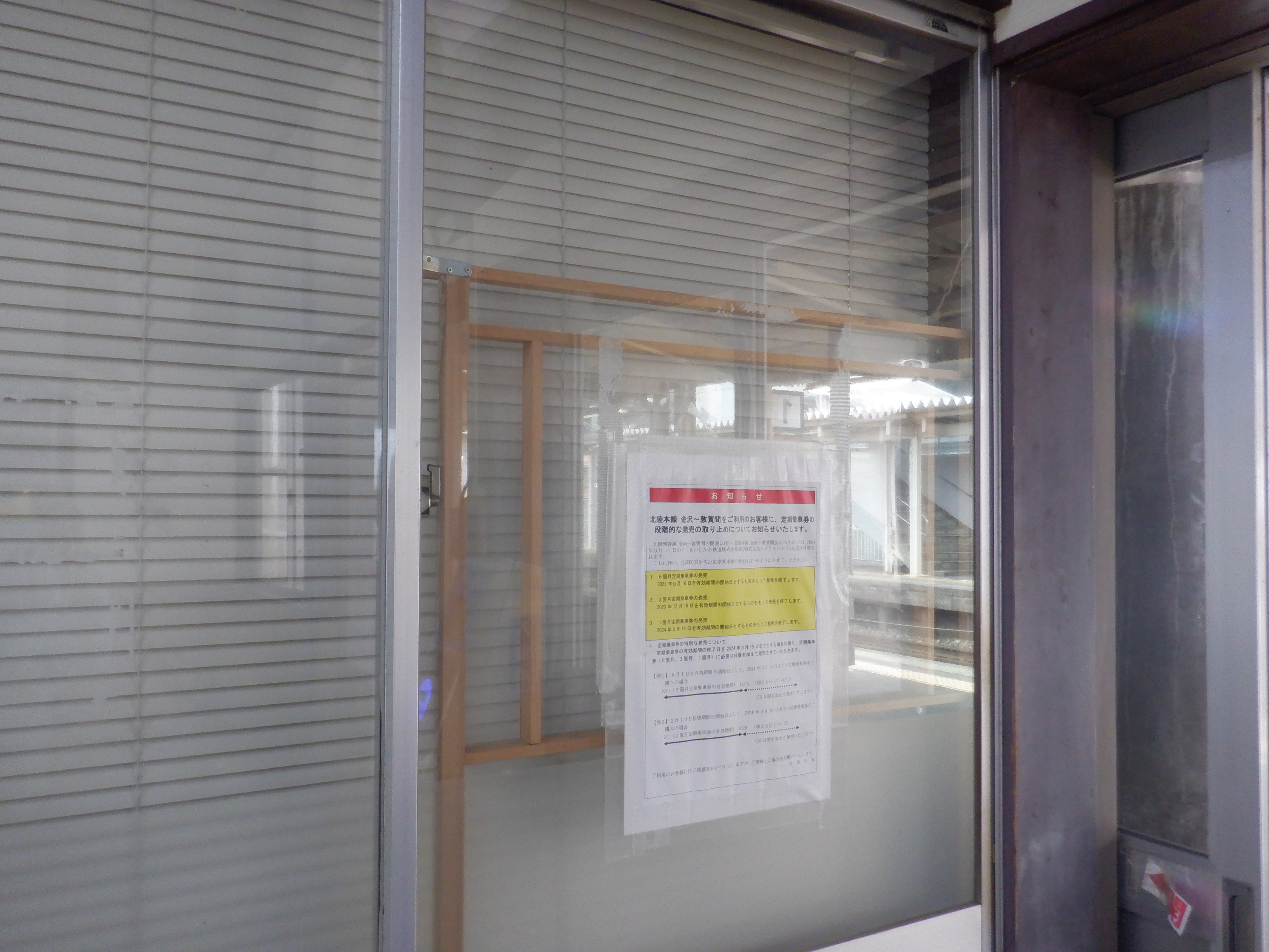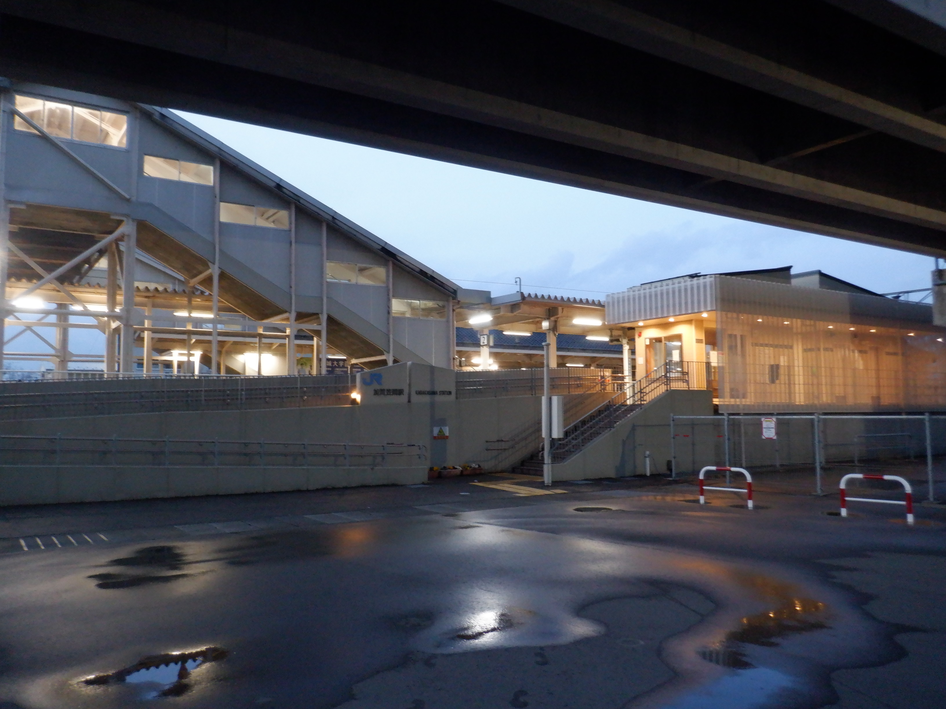 ここでは加賀笠間駅の2024年の移管前の様子をご紹介します。東口のJRロゴの撤去が他駅より遅かったので、その経過を見るために、暗くなってから立ち寄ることが多かったです。