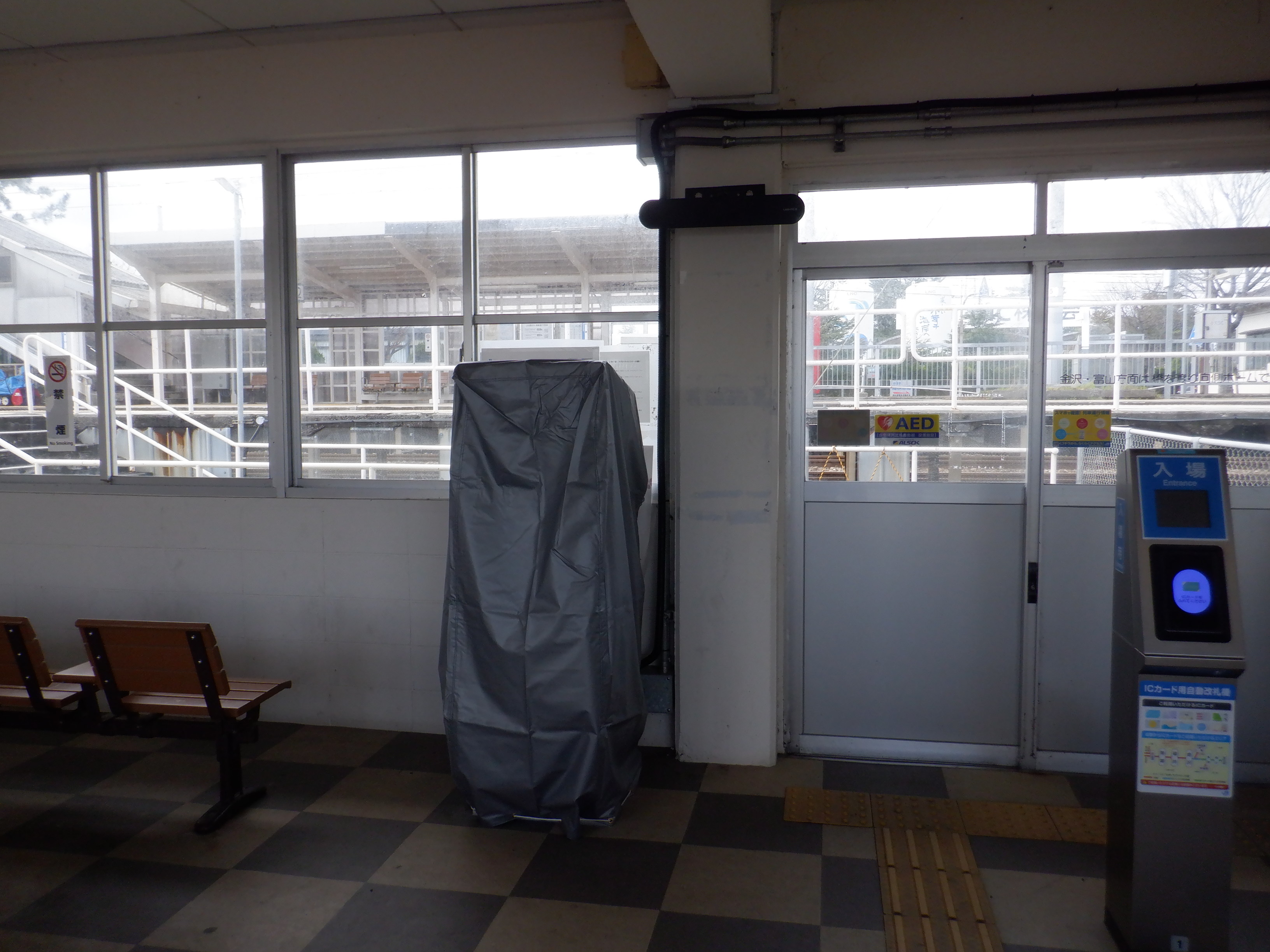 三セク化後の券売機がカバーが掛けられた状態で設置されました。