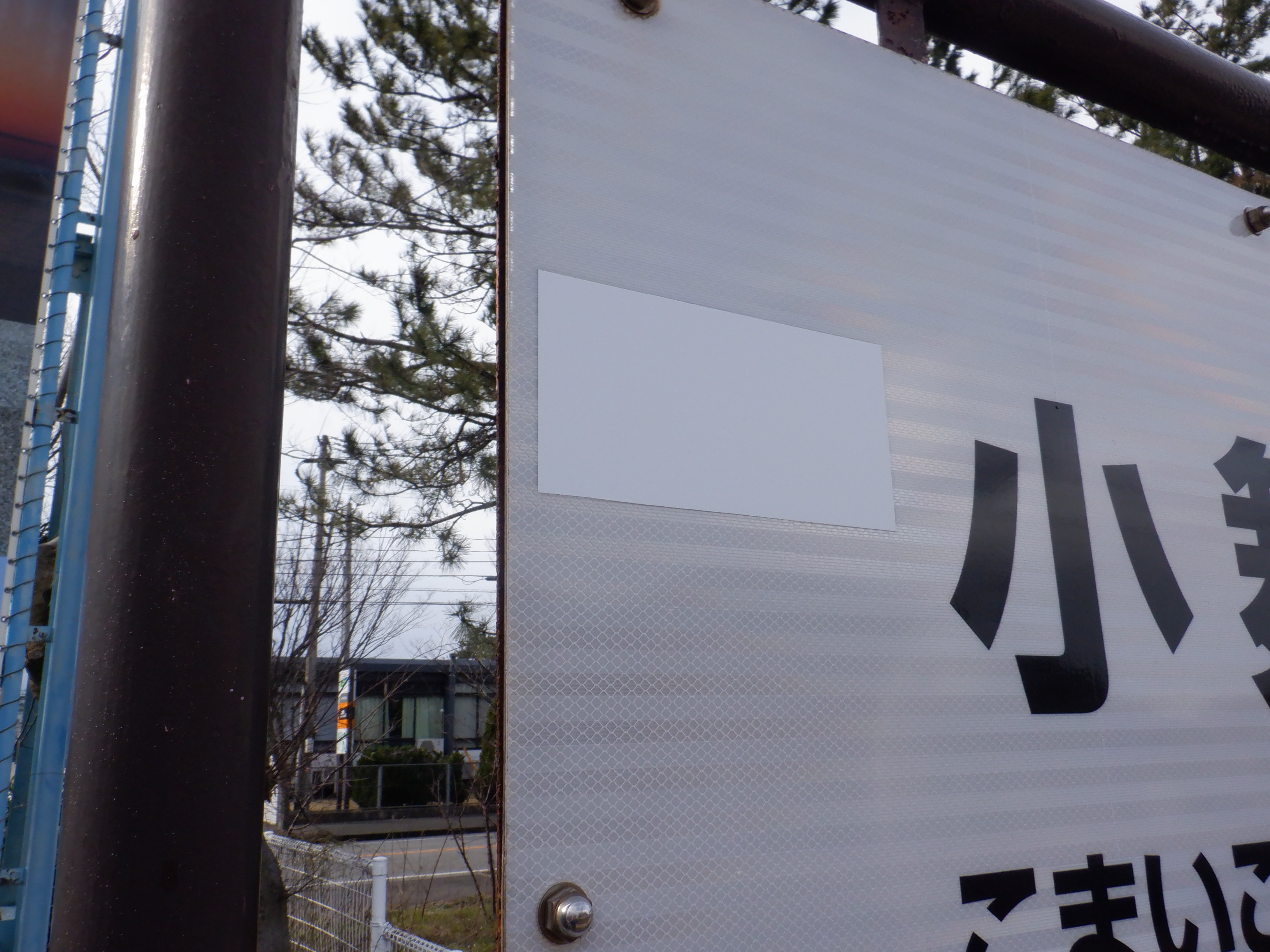 駅名標のJRロゴの上にはシールが貼られていました。また、跨線橋階段の手すりの案内が新しくなっているのですが、次回詳しく見ています。