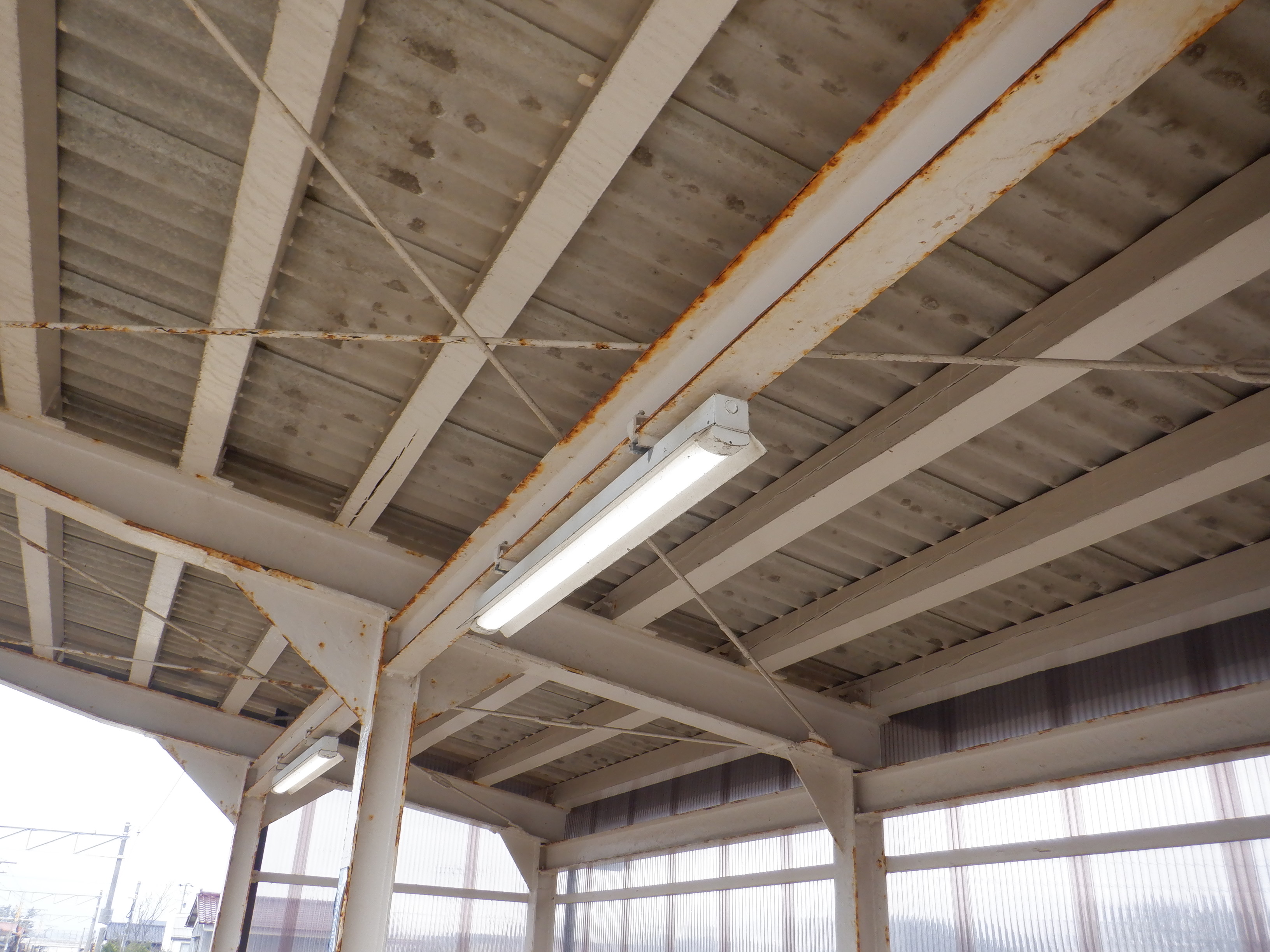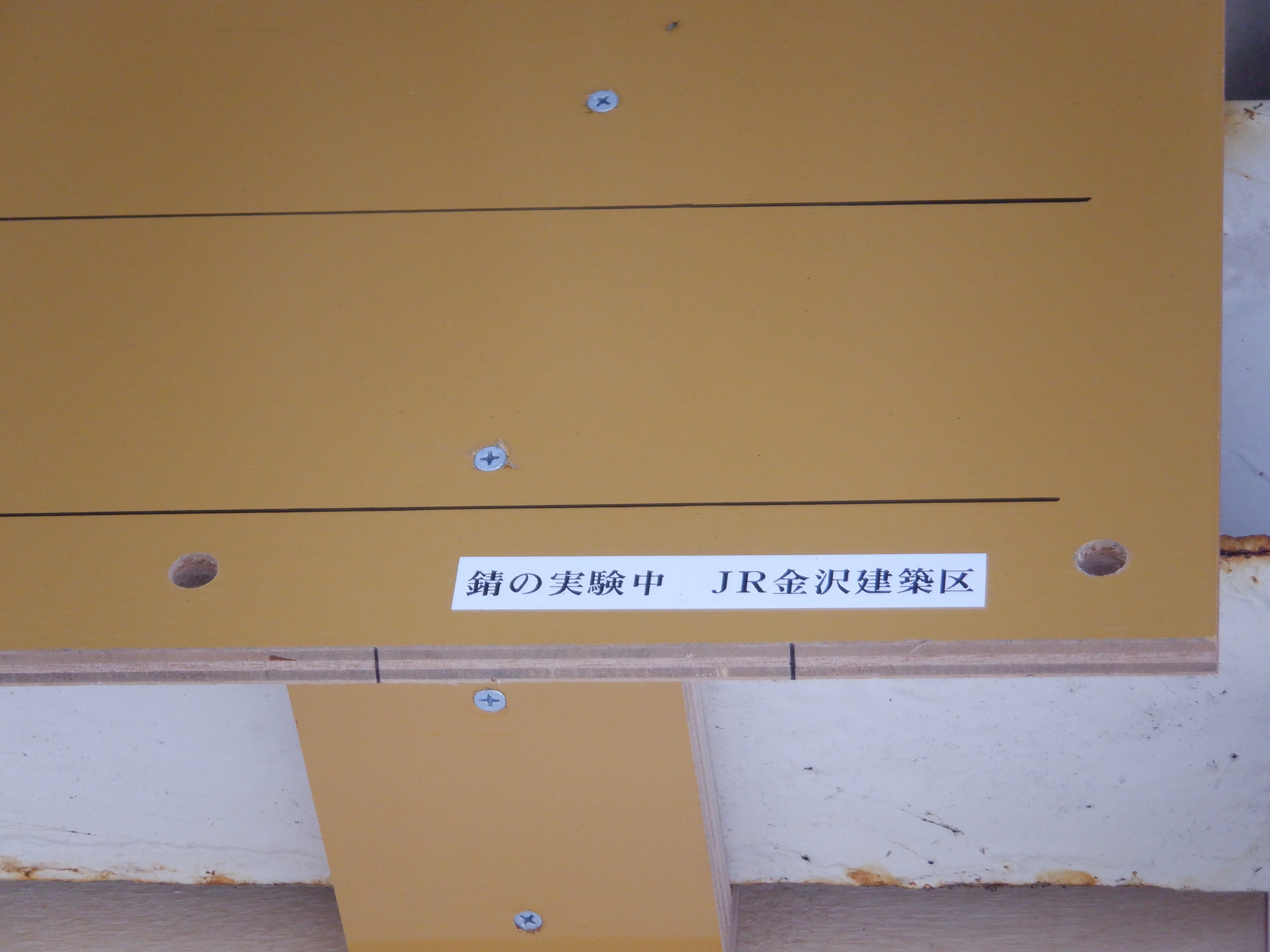 1番のりばの待合所の錆実験。