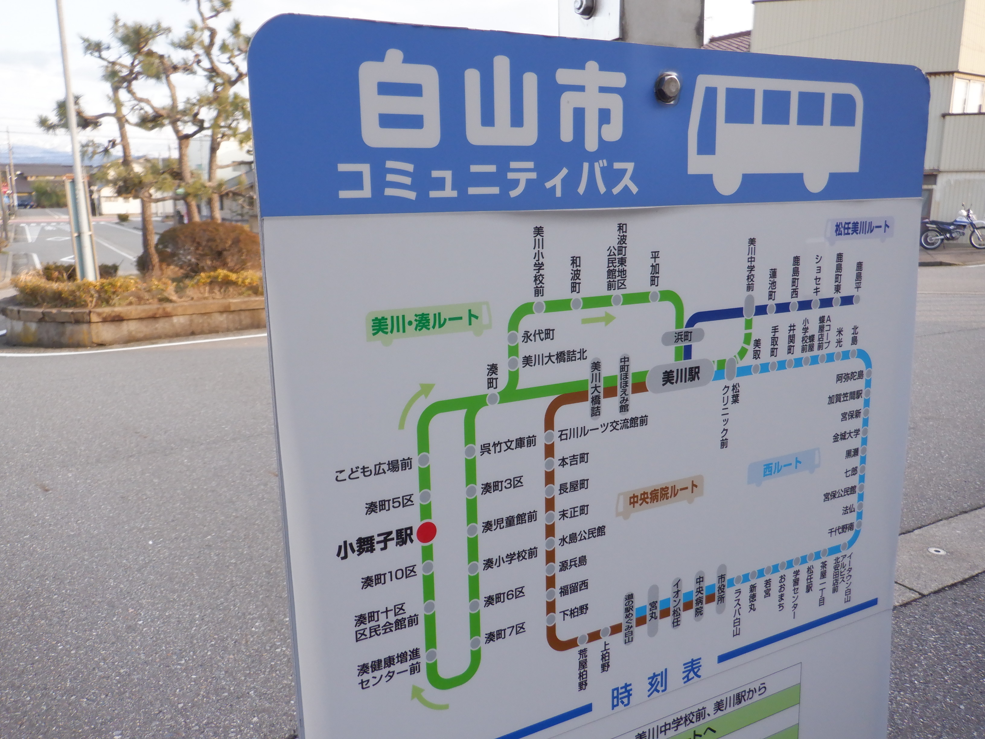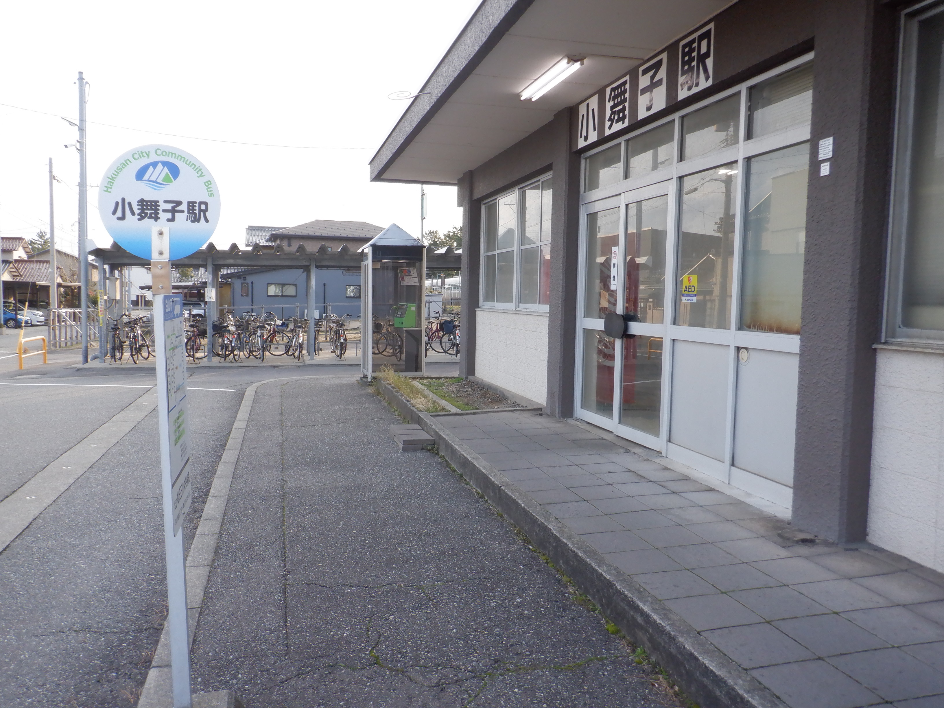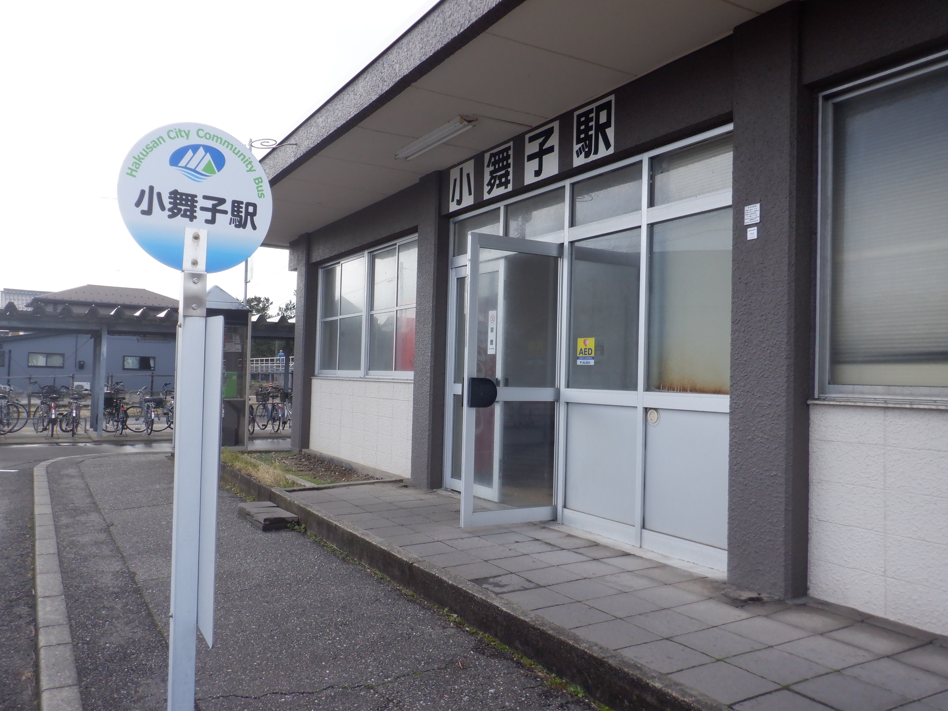 駅入口の白山市コミュニティバスのバス停。