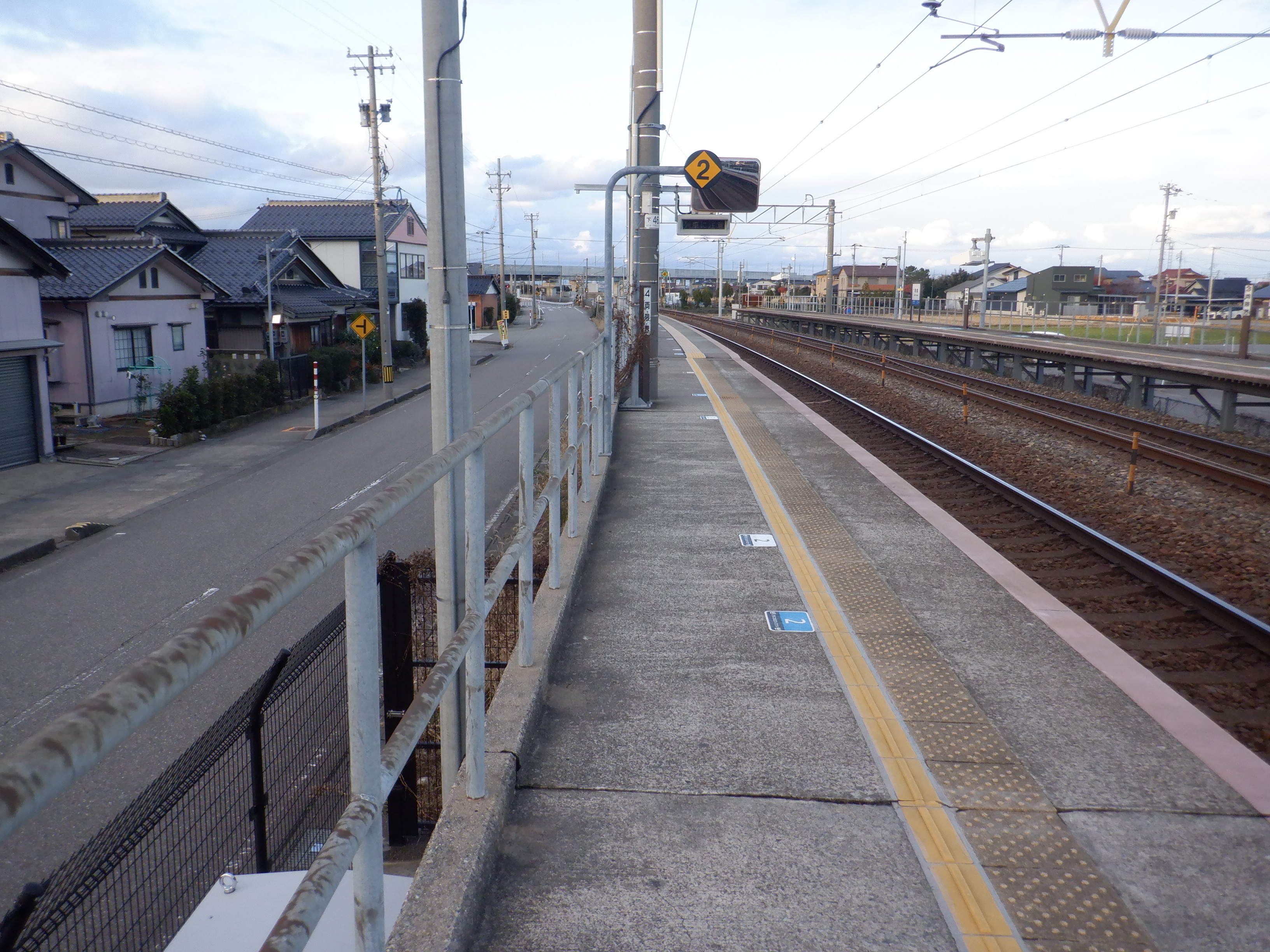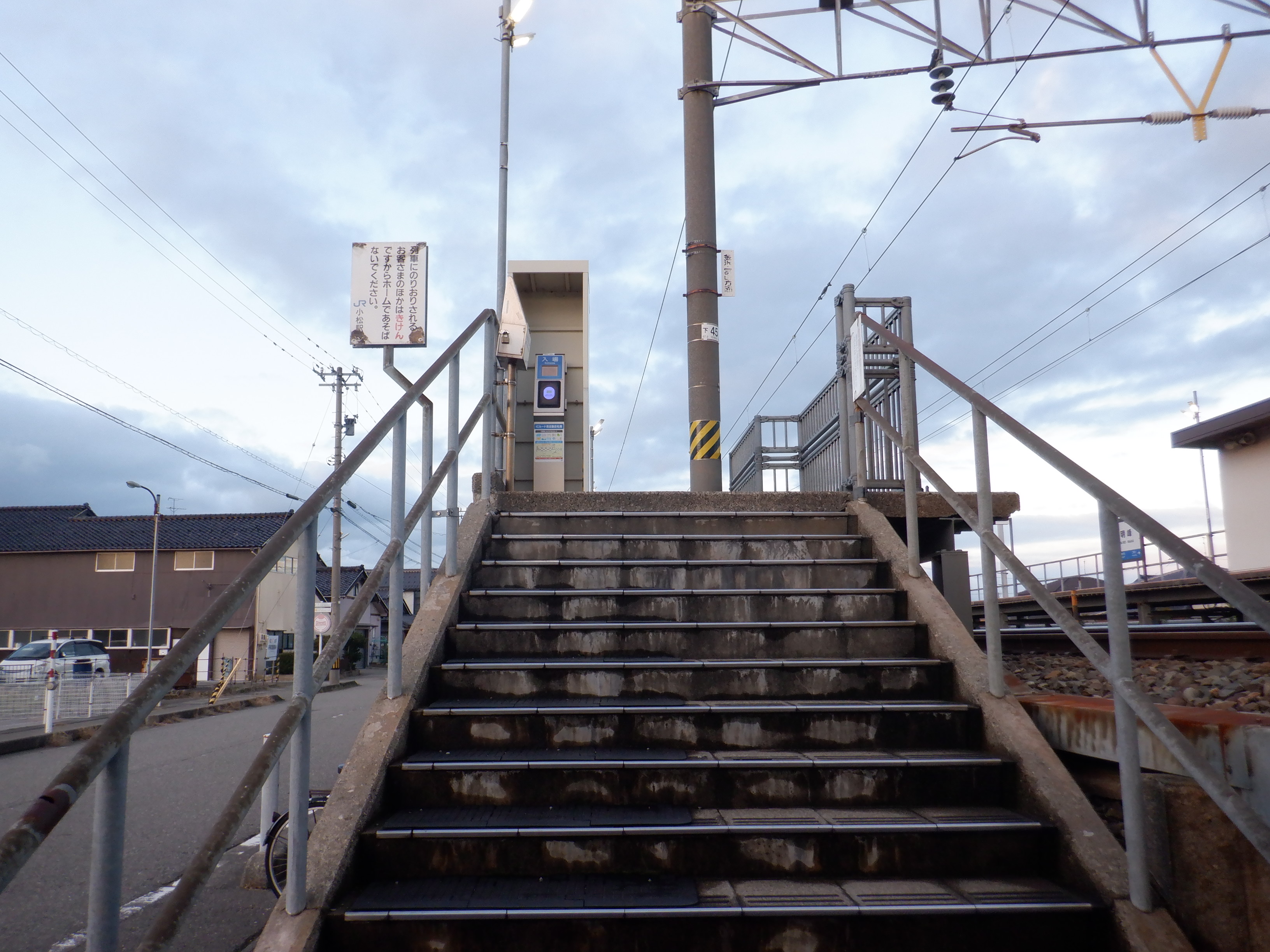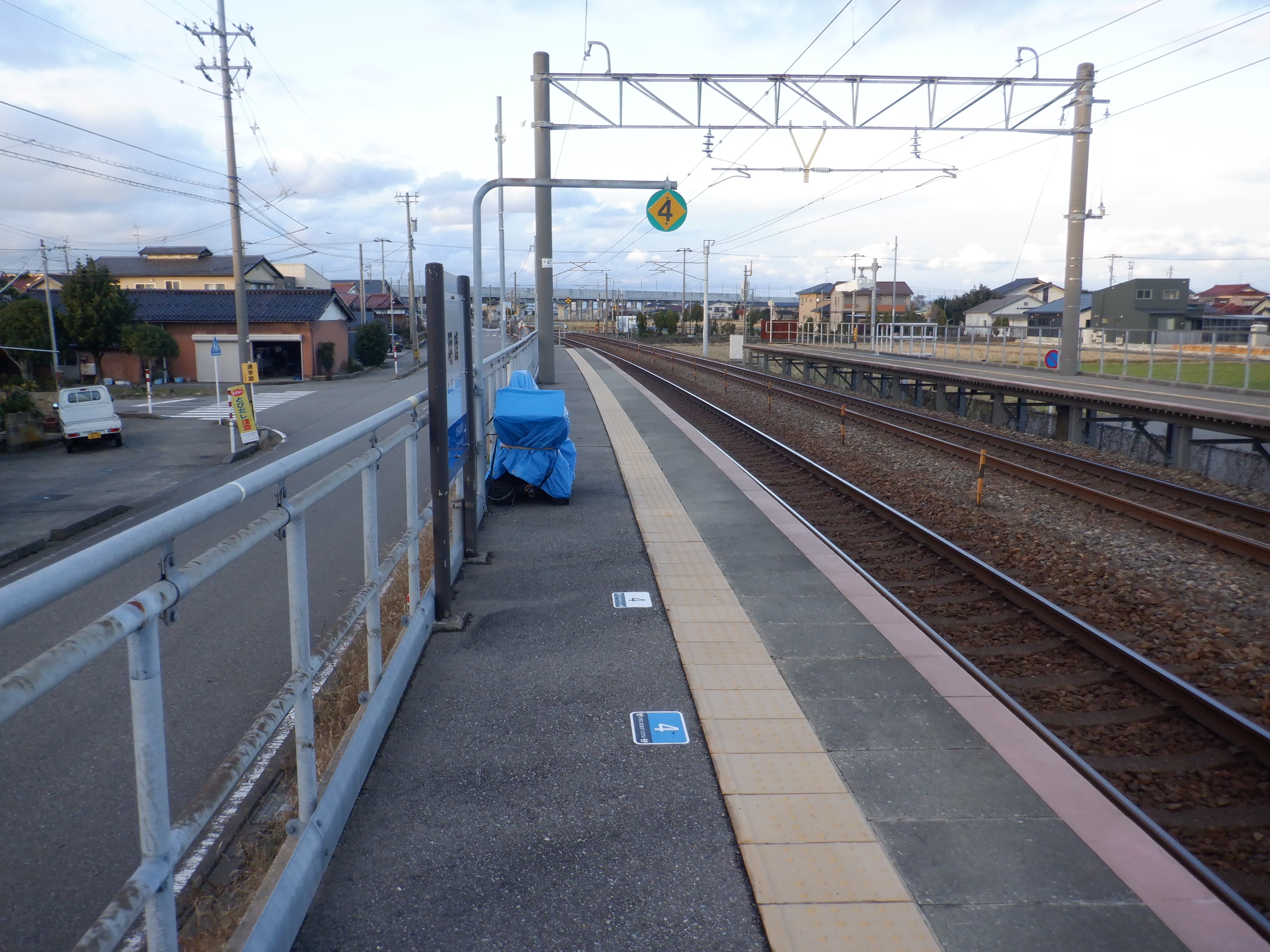 しかしながら、4両より前には白・青とも残っており、さらに2両の赤も付け加わり、おそらく西金沢駅以西で青色の乗車位置案内が残る唯一の駅となったようです。