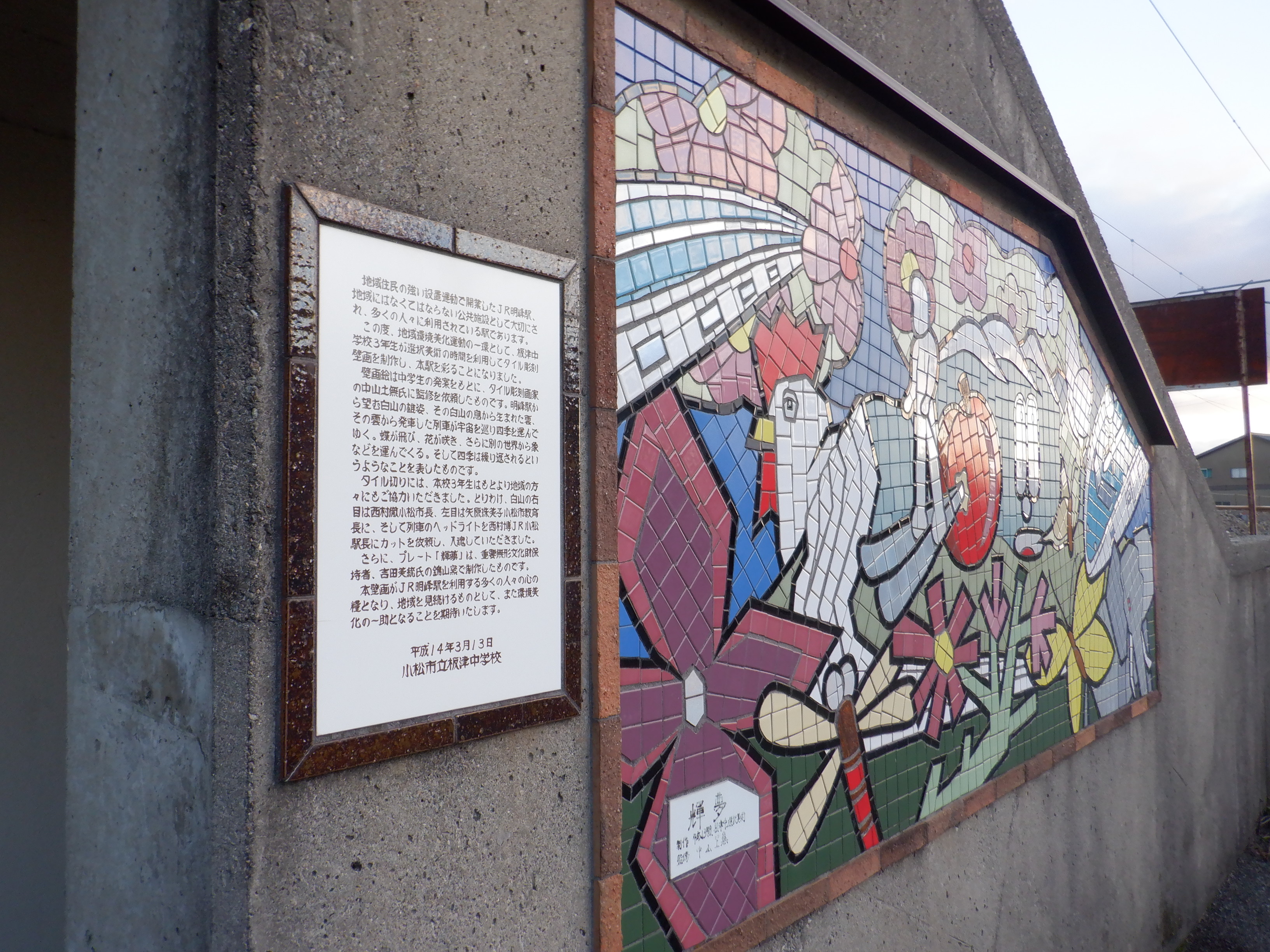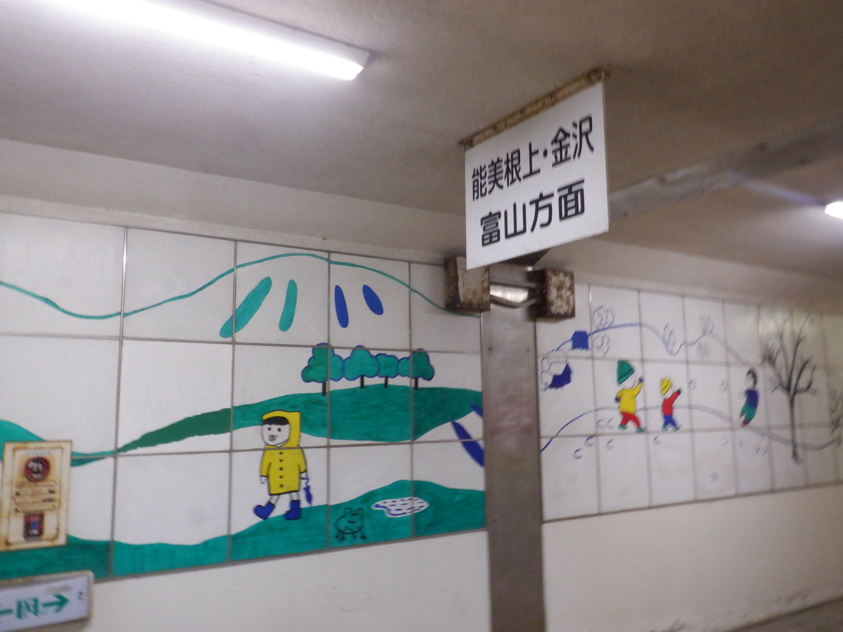 1番のりばの待合室。IRいしかわ鉄道のマスコットキャラクター投票のポスターが貼られていました。2番のりば側にも貼られていましたが人がいたため撮っていません。