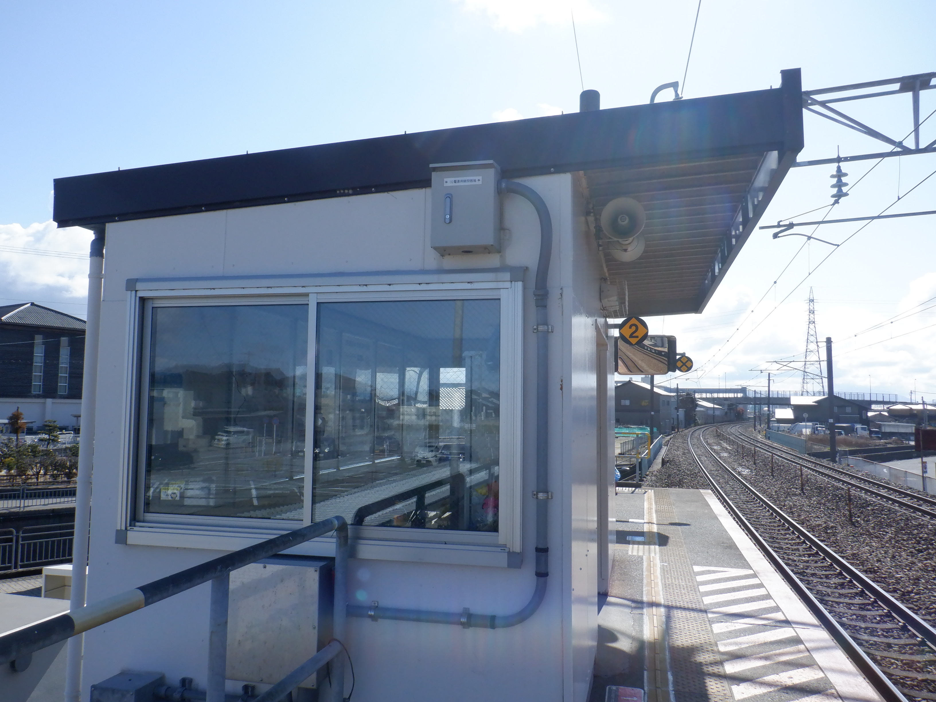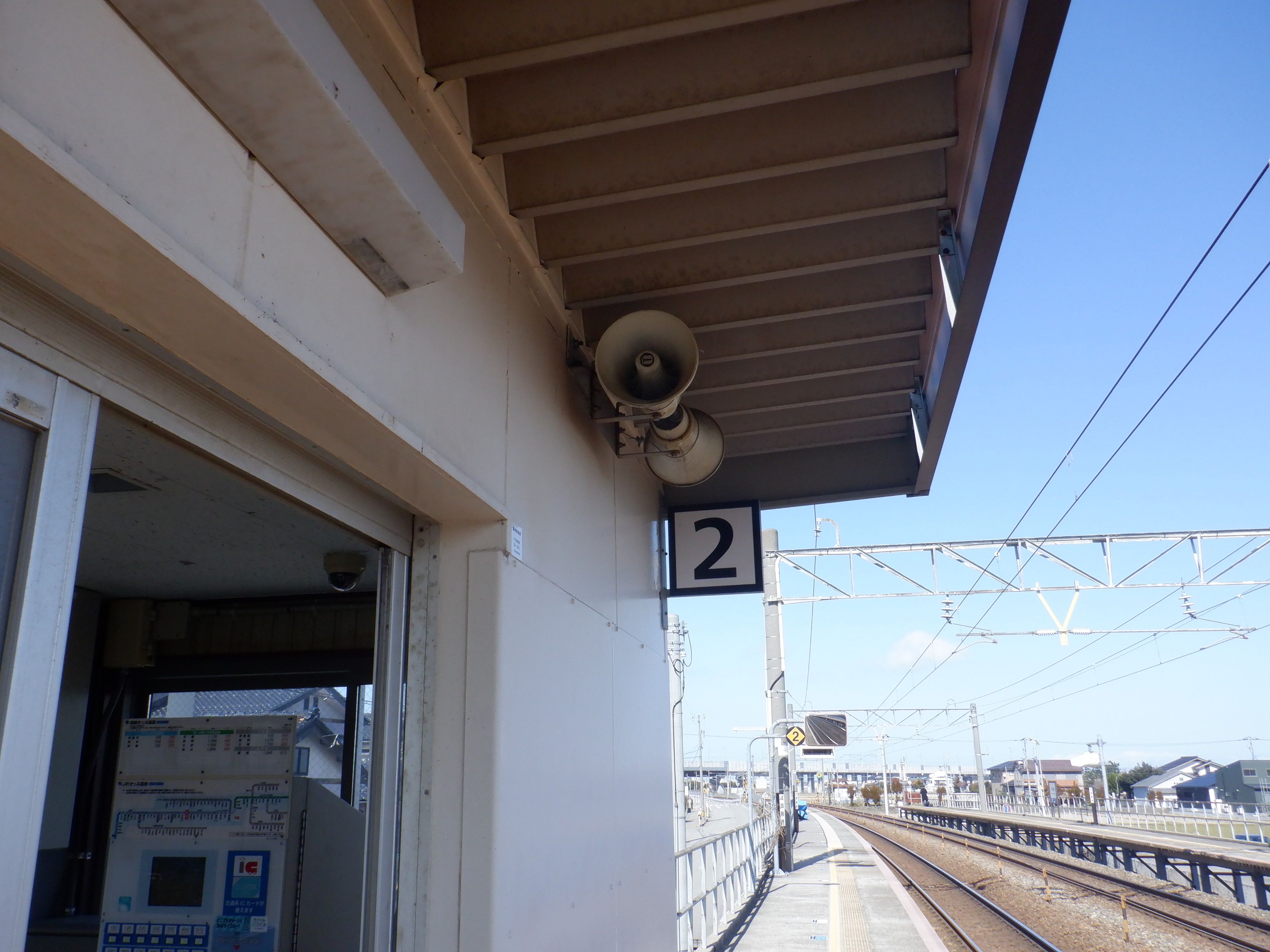 2番のりばも同様に待合室背後の第一種駅名標にIRのロゴが貼られました。