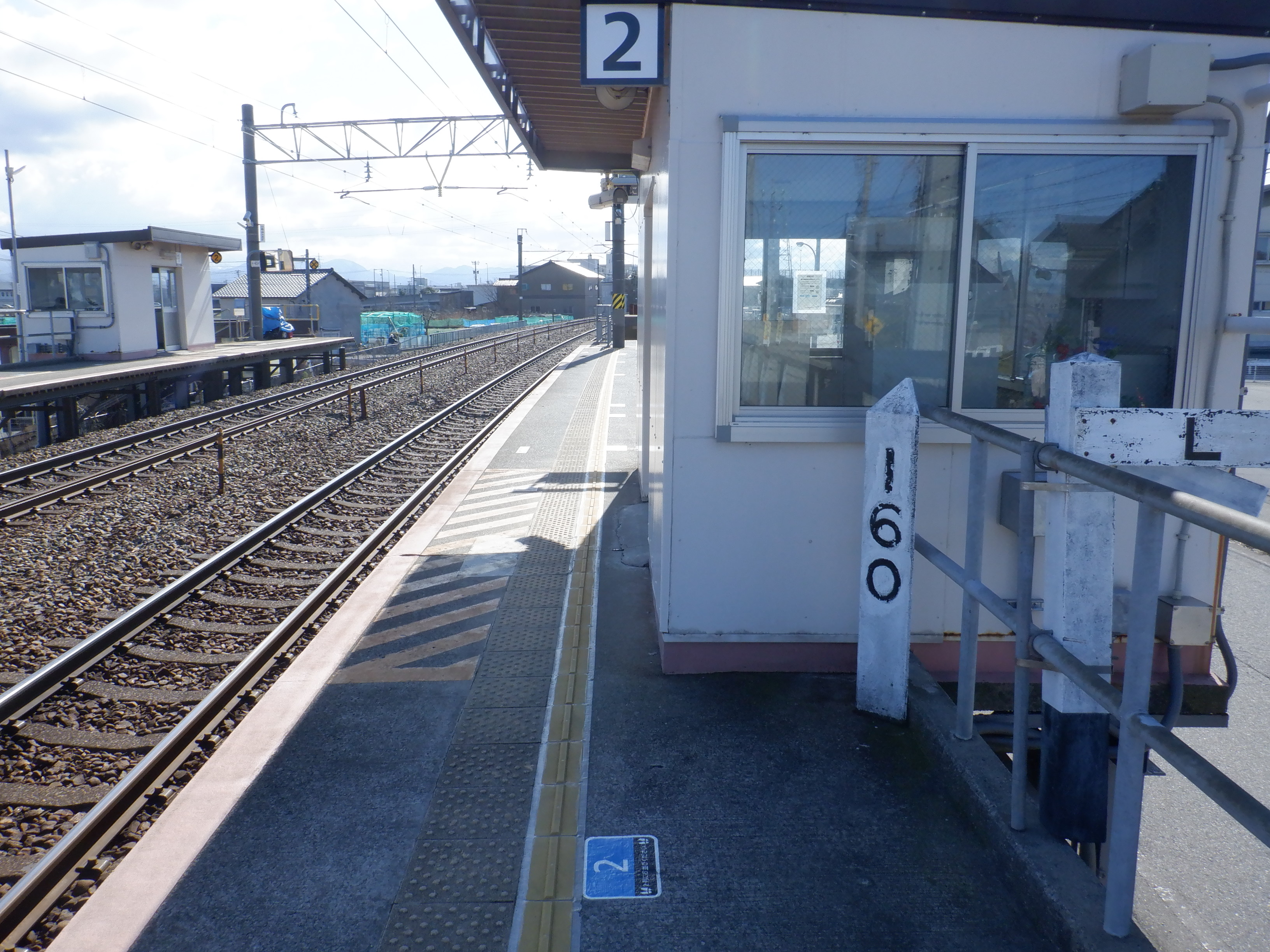 1番のりばから撮った2番のりばの駅名標2枚。